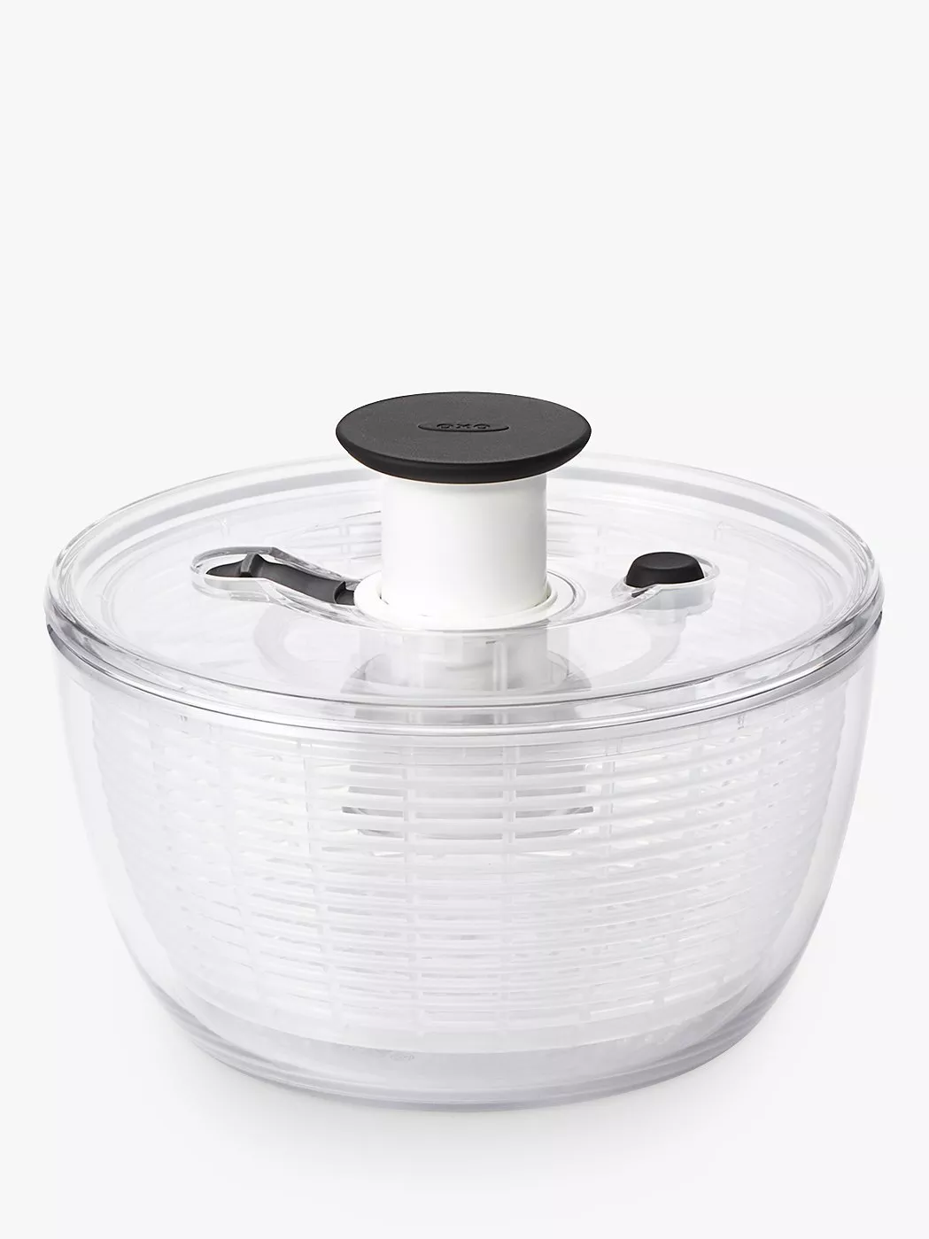 The OXO Good Grips Little Salad and Herb Spinner is a quick and easy way to dry a single serving of salad or a handful of herbs. For clean, dry ingredients, just press the soft, non-slip knob. The spinning basket doubles as a colander, so you can rinse lettuce and more with ease.