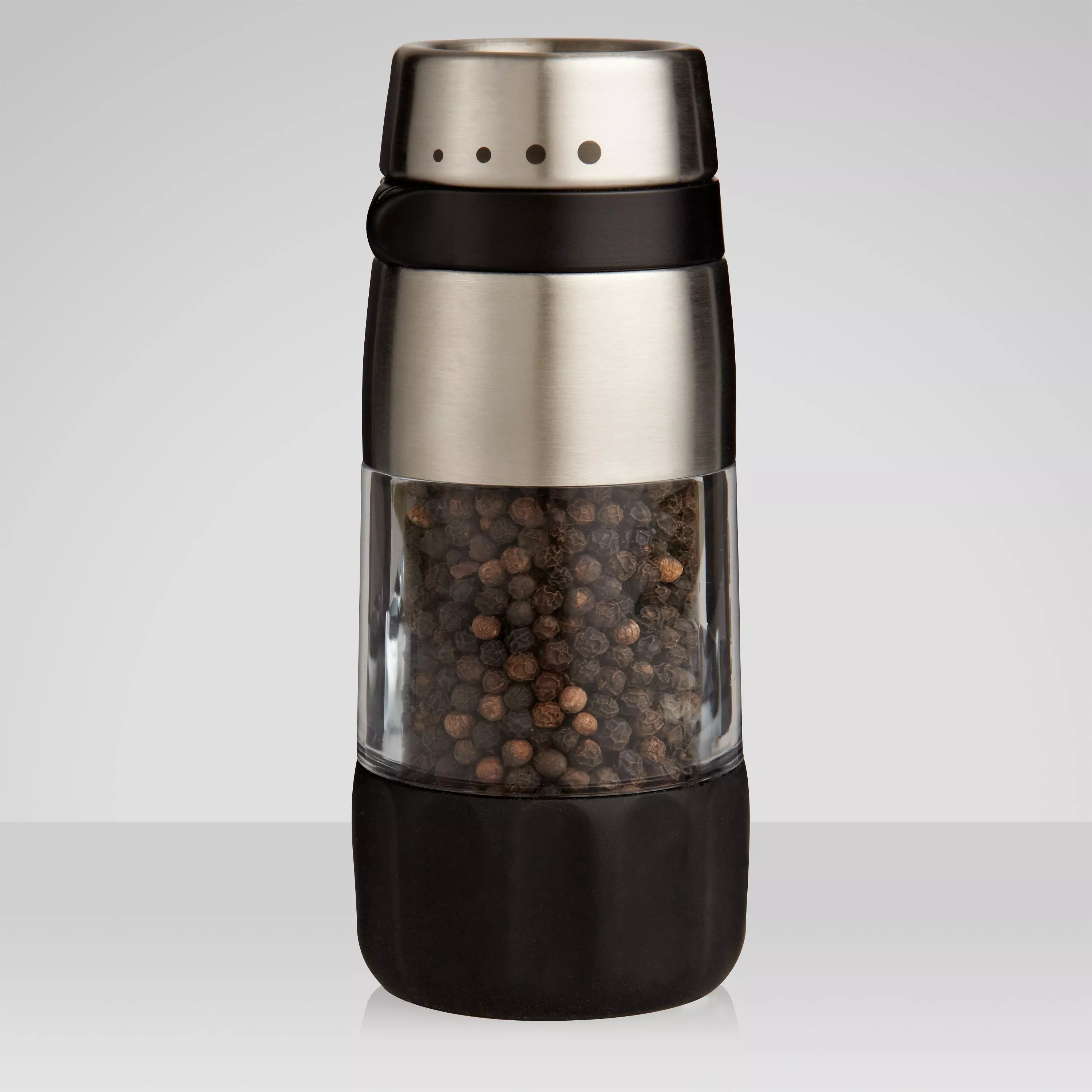 With its stainless steel accents and clear acrylic body, the OXO Good Grips pepper grinder is perfect for cooking in the kitchen and elegantly designed to bring to the table. Easily adjustable from fine to coarse grind, it rests flat when upside down for easy refilling. The non-corrosive ceramic grinder won’t absorb flavours or odours, and is positioned at the top of the grinder so as not to leave a mess on the counter or table. Features a soft, non-slip grip for comfortable grinding and comes filled with black peppercorns.