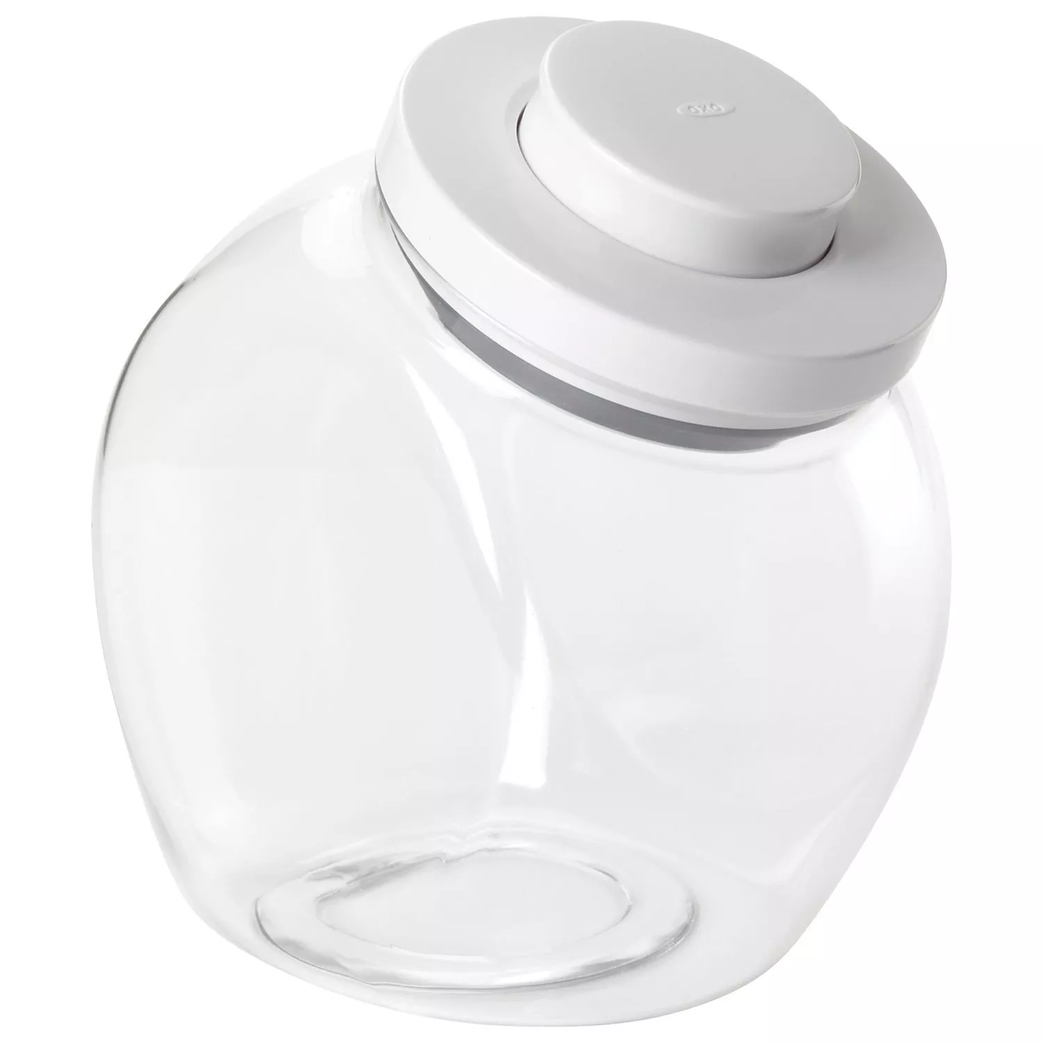 The OXO POP Medium Jar combines the airtight seal of POP containers with the body of a classic cookie jar. The unique pop-up button mechanism creates an airtight seal with one touch, and the button doubles as a convenient handle.