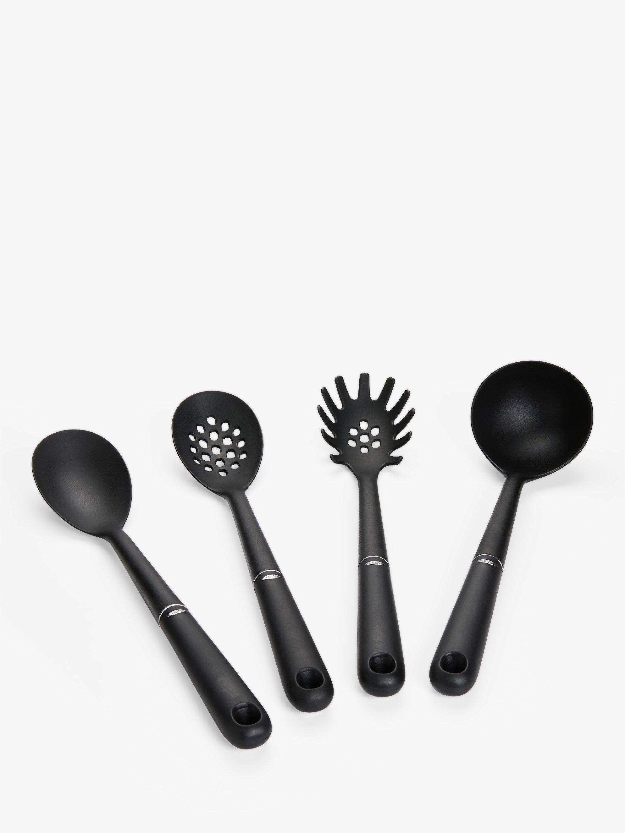 OXO Good Grips nylon kitchen tools are constructed from heat-resistant nylon, which works well on any kitchen surface. The slim, nonslip handles are comfortable for big and small hands, accommodating many different cooking styles. With their pretty stainless steel accent, they offer a modern and pretty way to serve up.