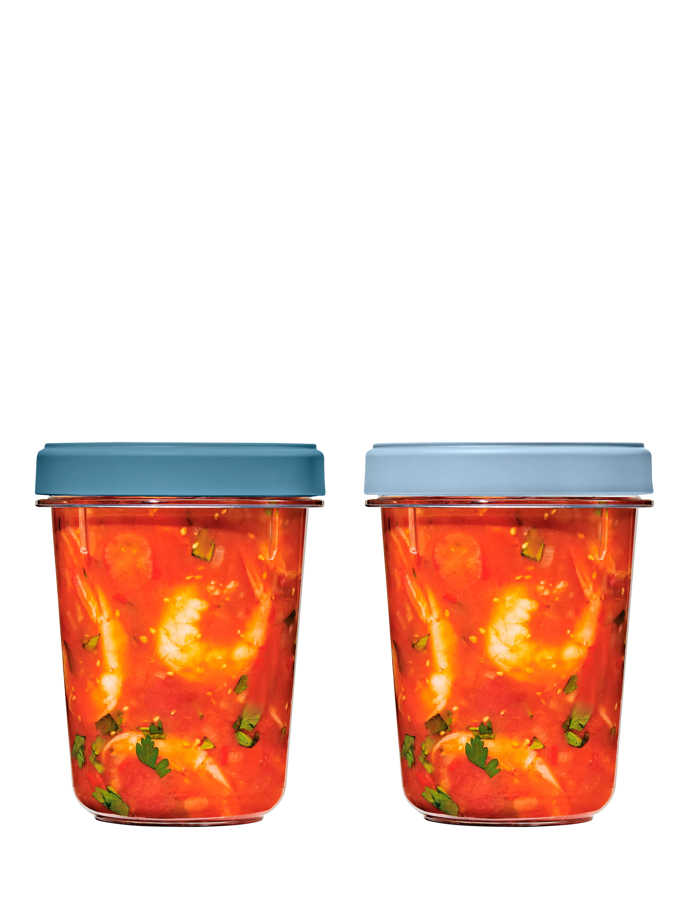 These containers feature twistable lids with a soft-touch grip, so the containers open easily and keep food intact. The gasket inside the lid ensures a leak-proof seal.
