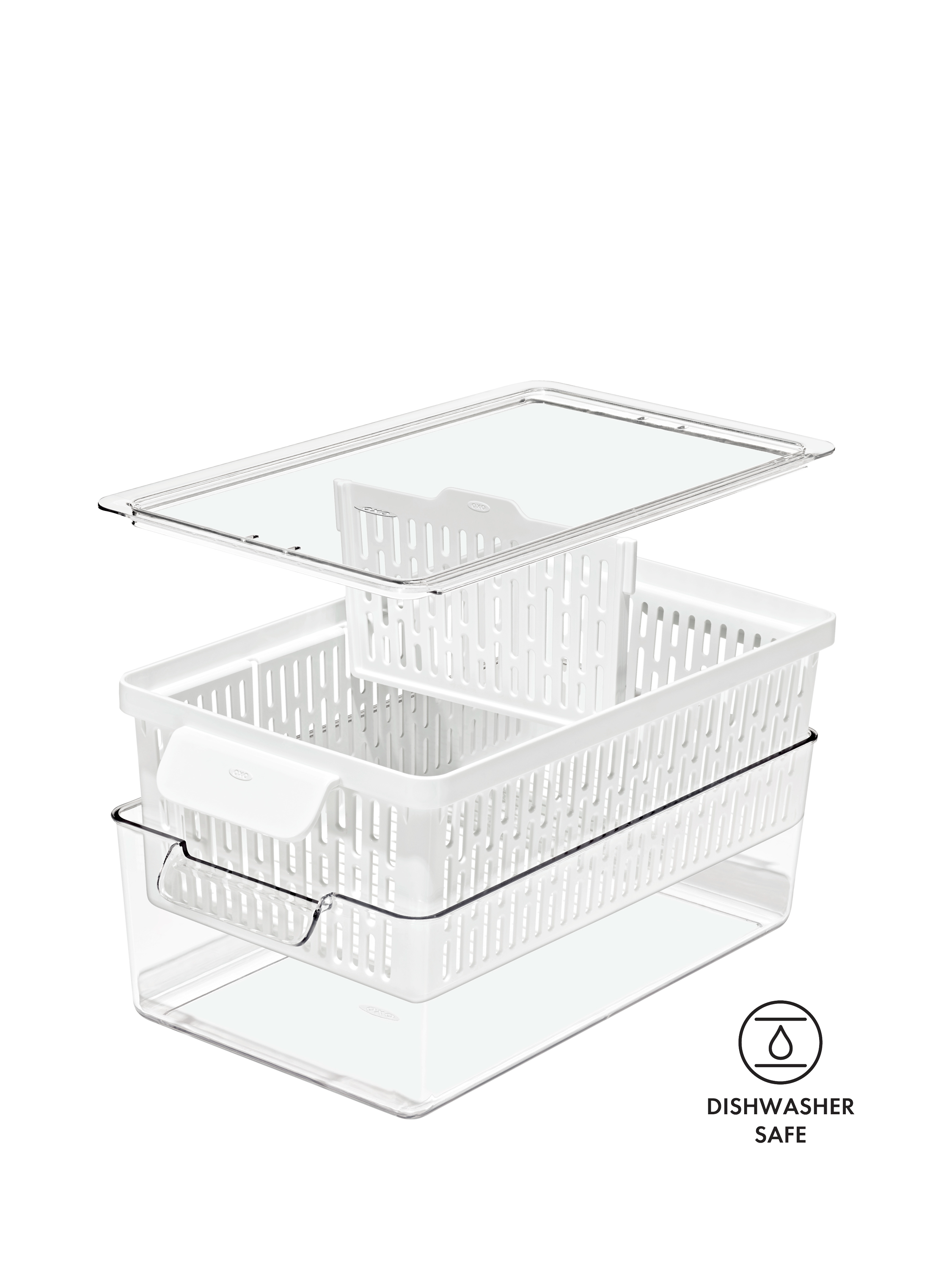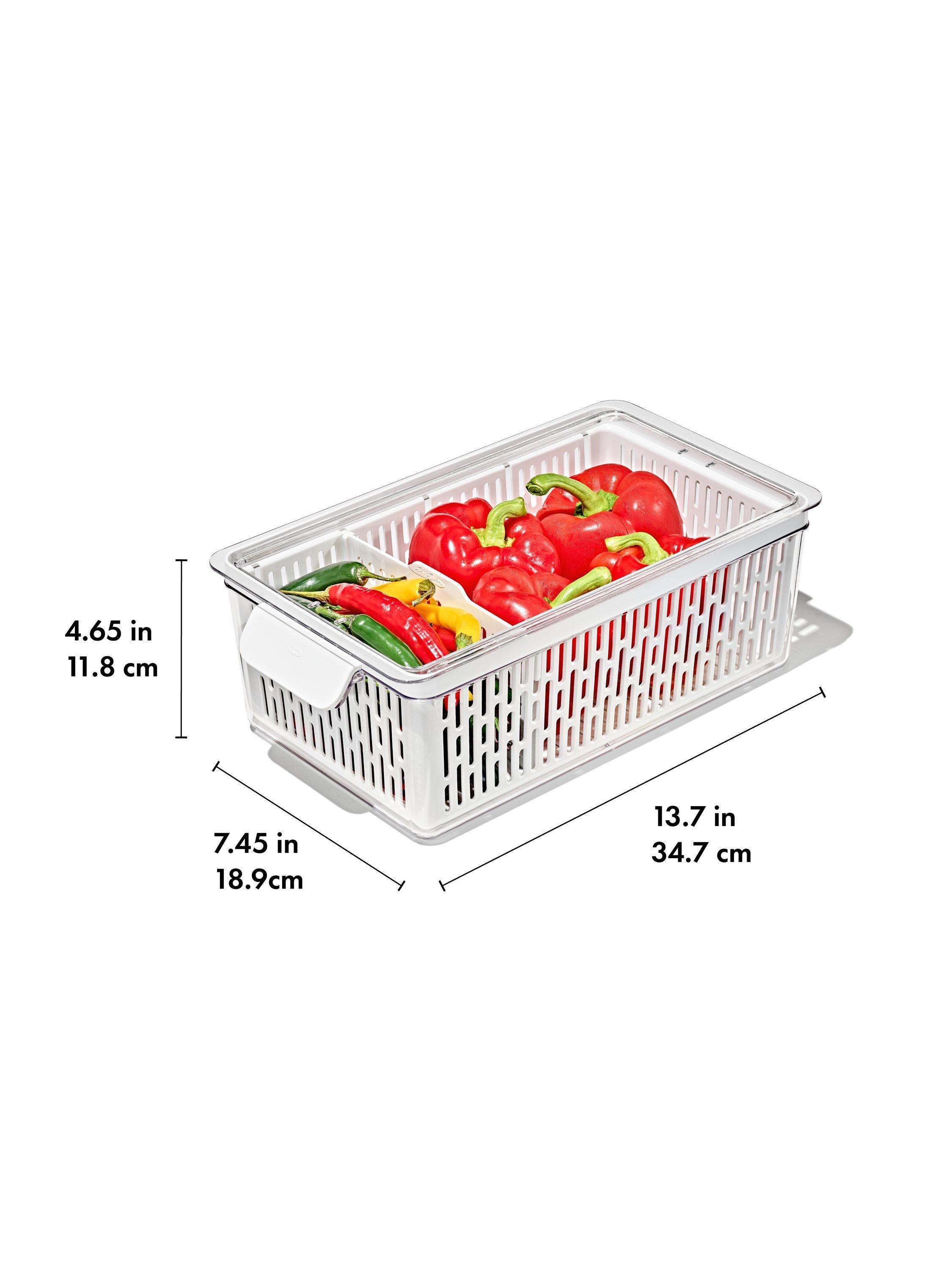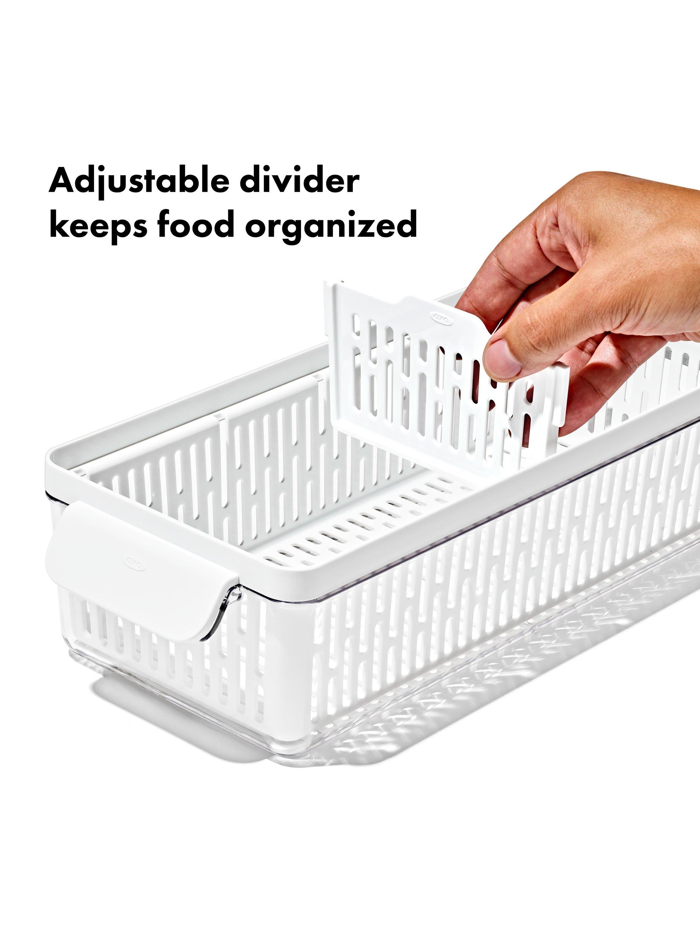BPA-free, dishwasher-safe, and stacks with other OXO Produce Savers for modular, customisable organisation in any fridge.