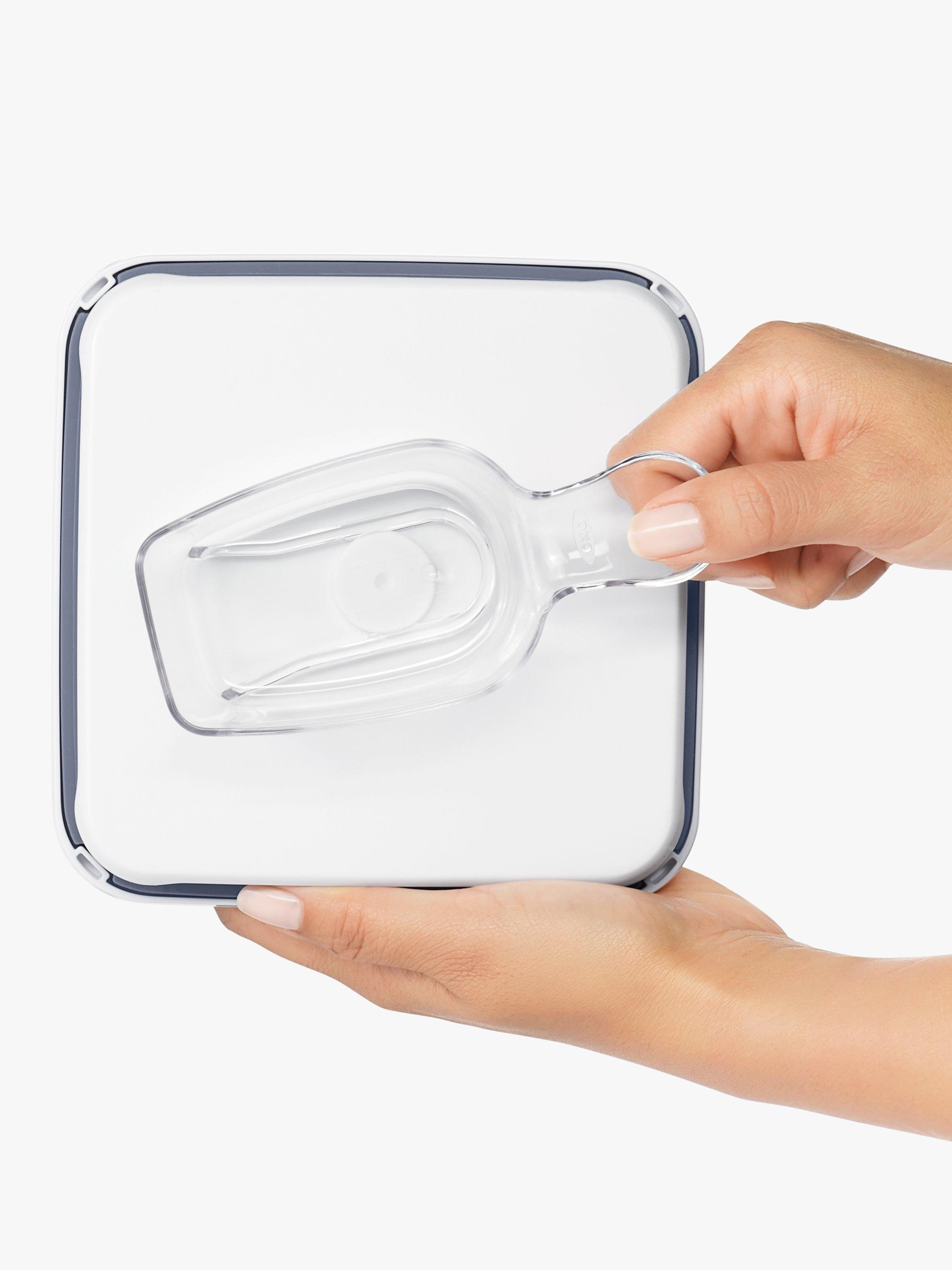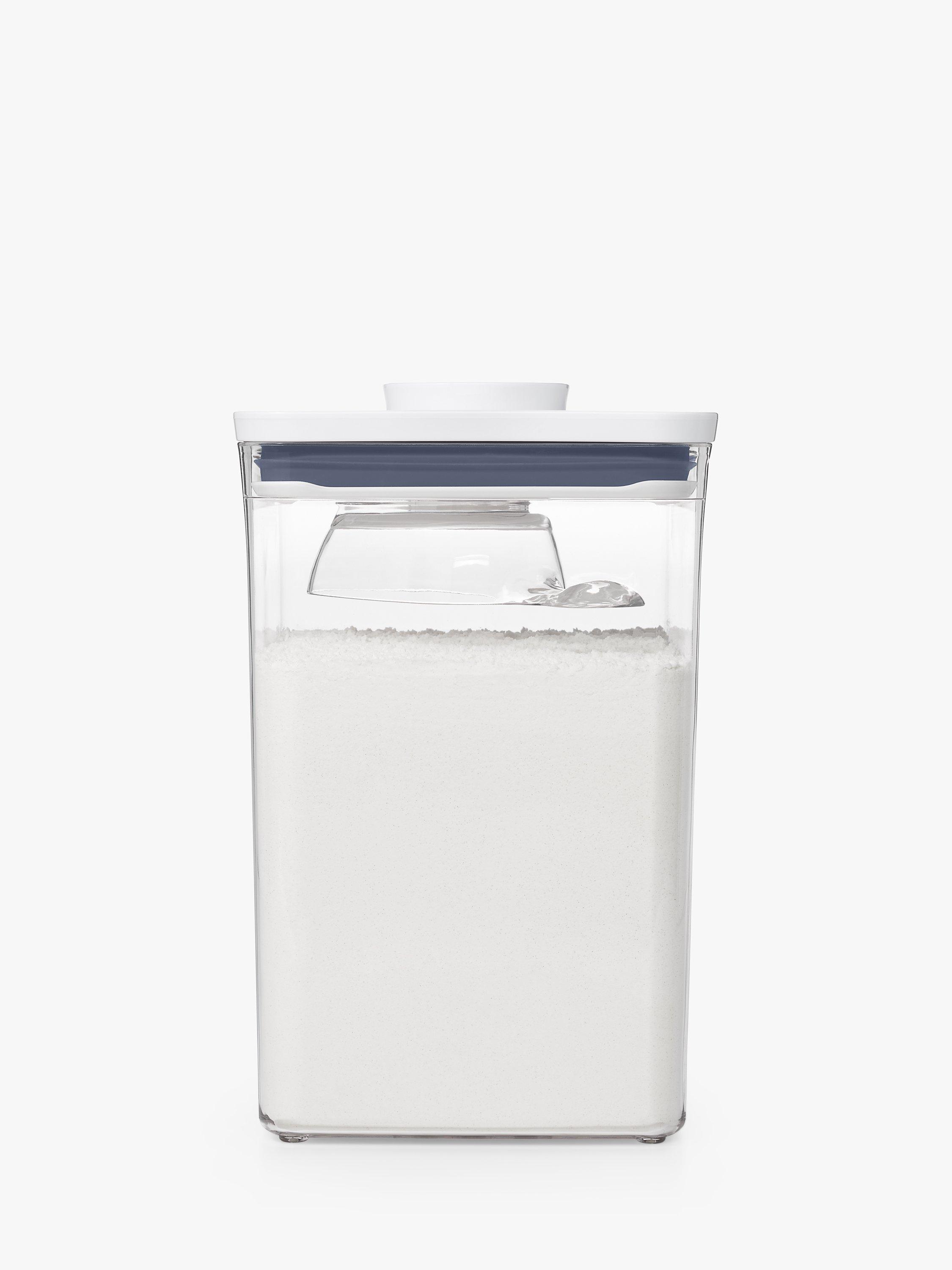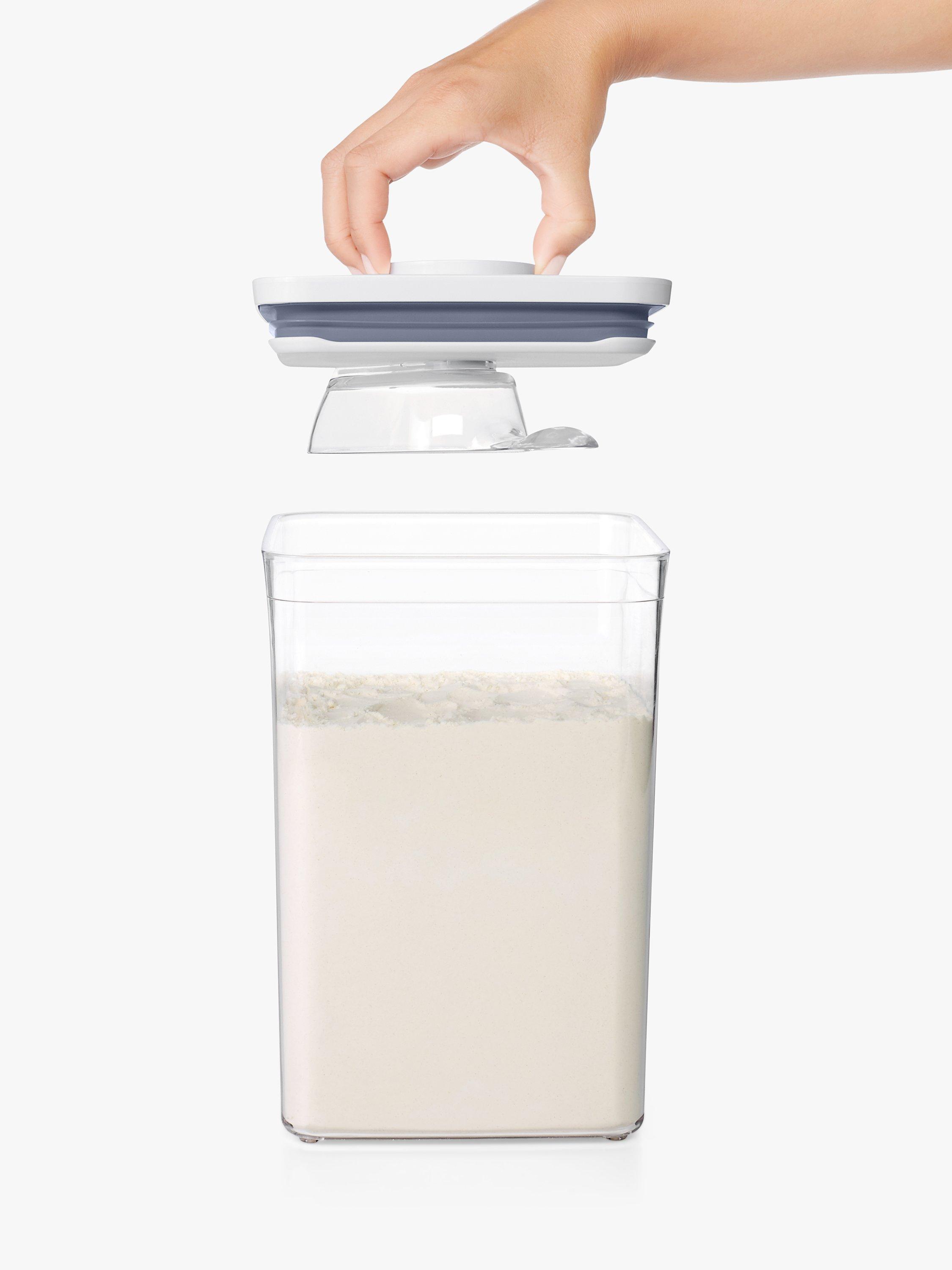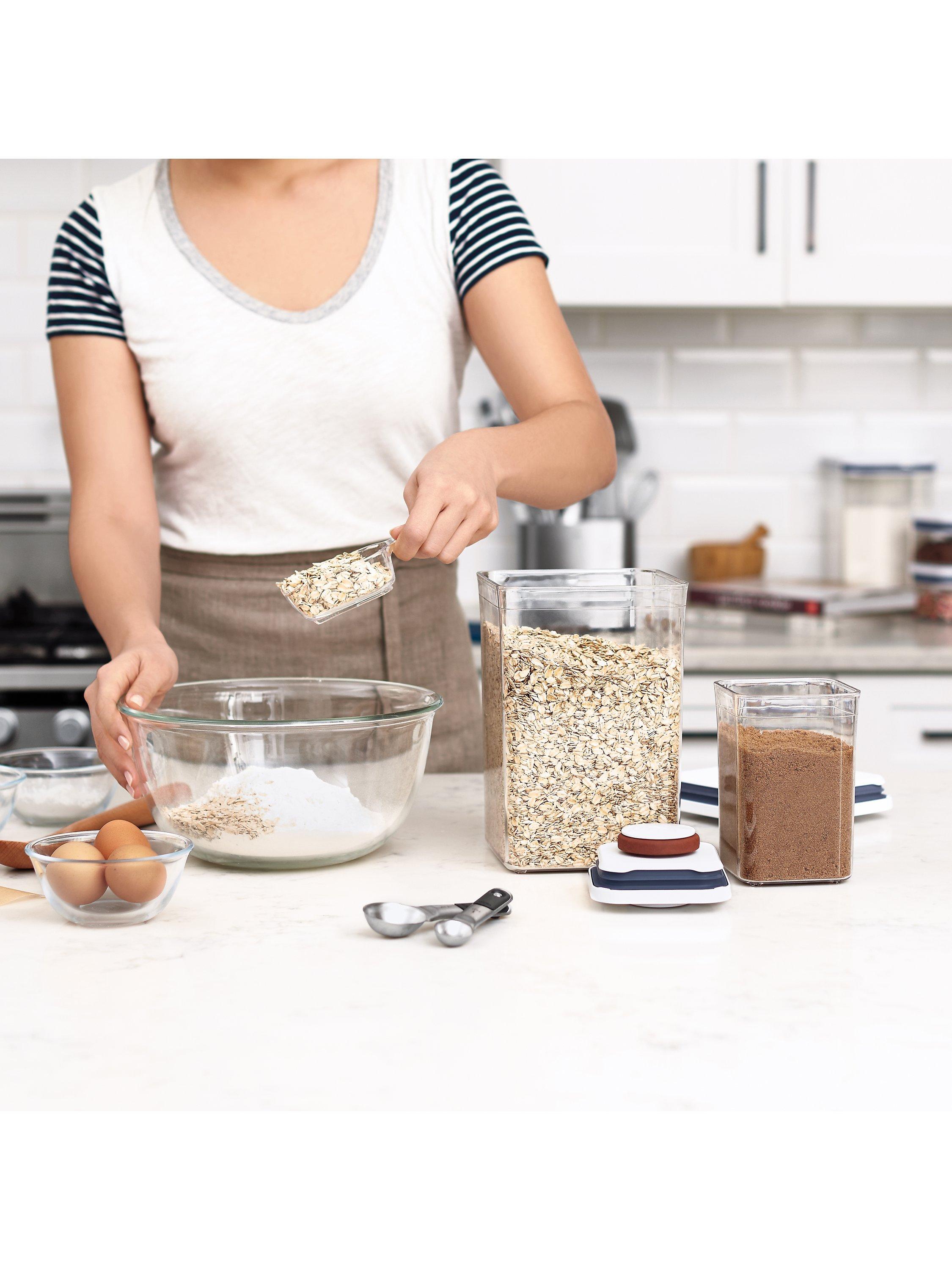 Designed to scoop coffee and dried food, this spoon snaps into place on the bottom of OXO POP container lids, to keep it handy.