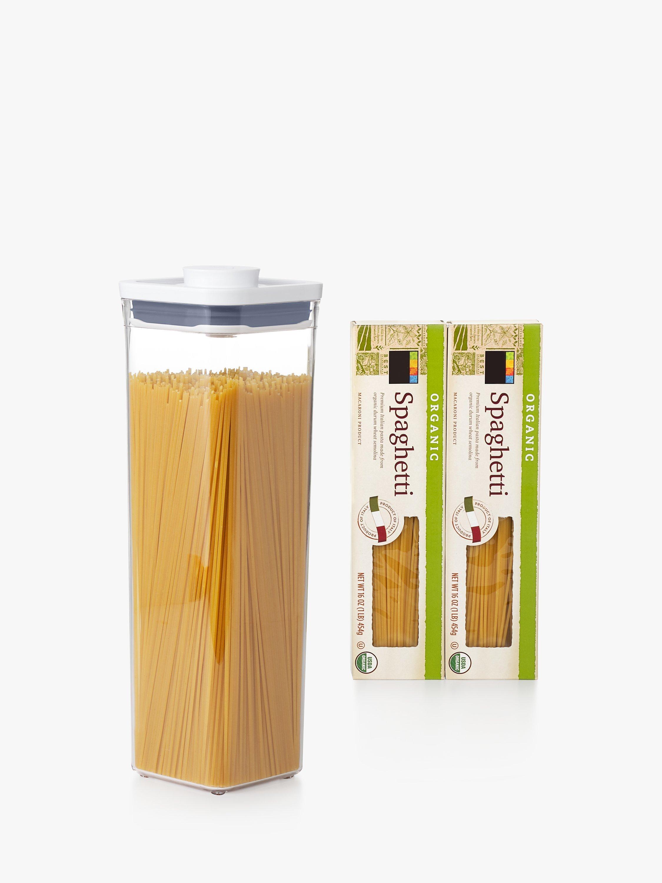An airtight storage container that suits contemporary interiors and is ideal for keeping dried foods. Easy to open with just one hand when you're busy in the kitchen, it's part of OXO's POP range of containers.