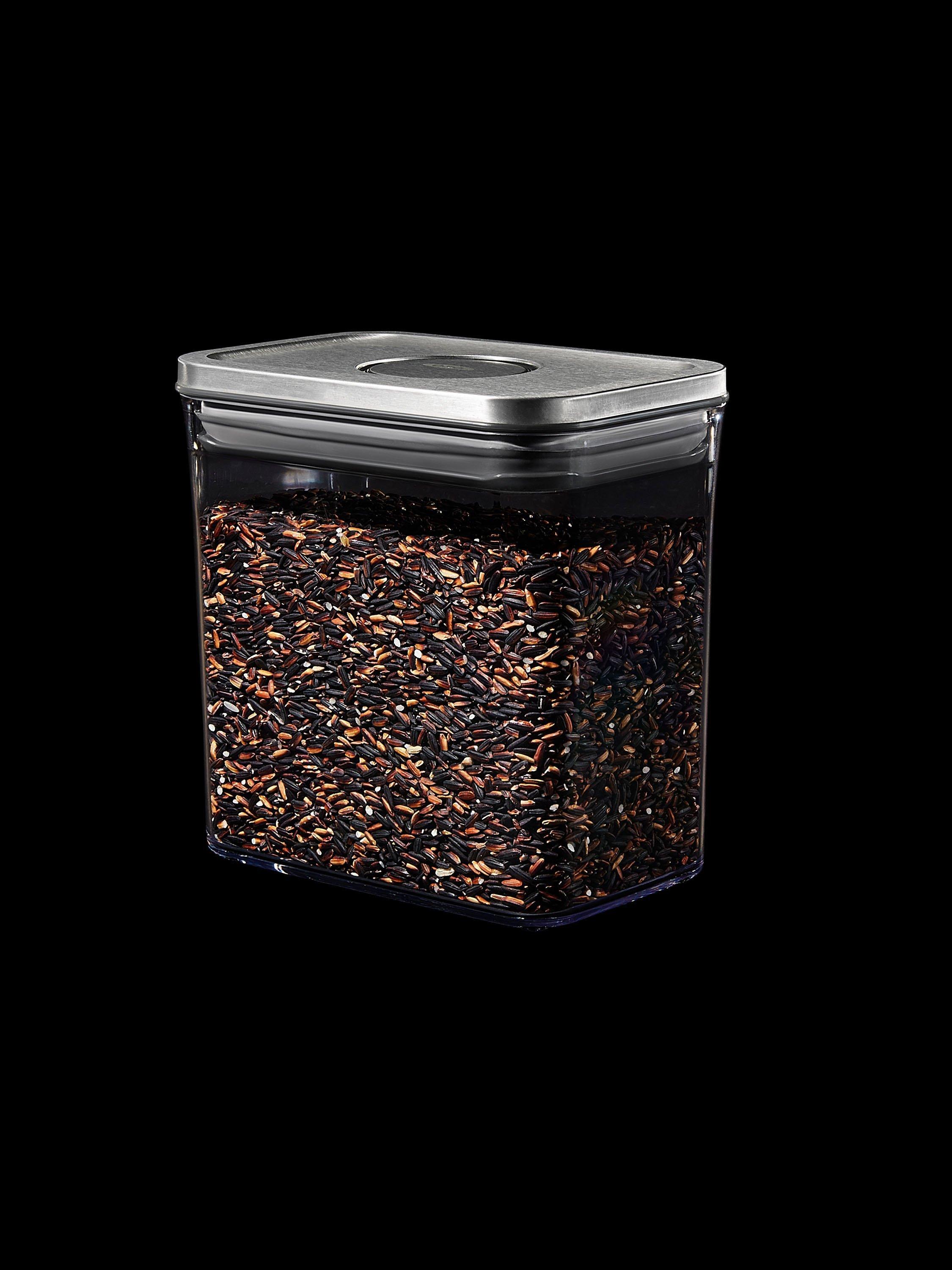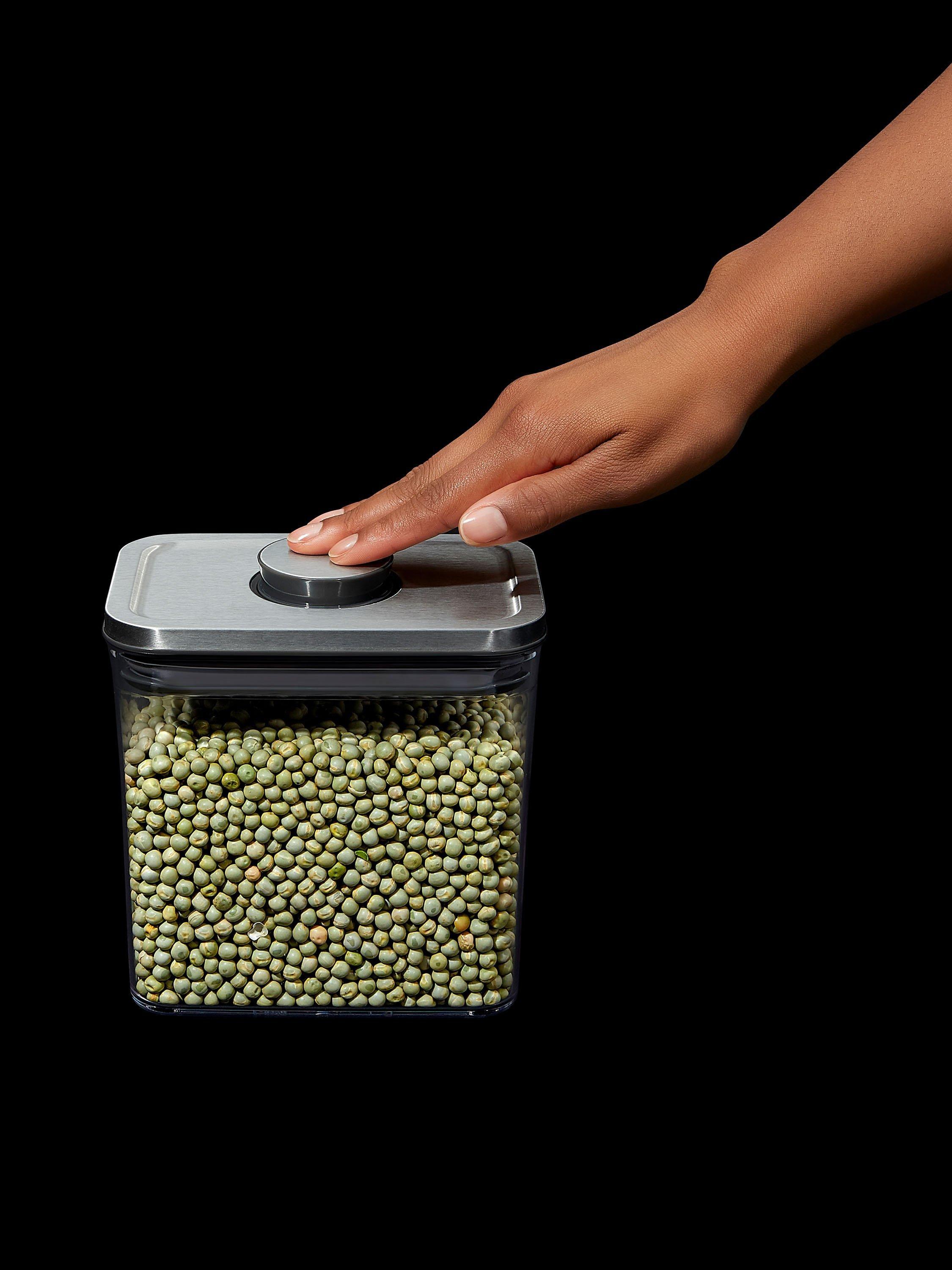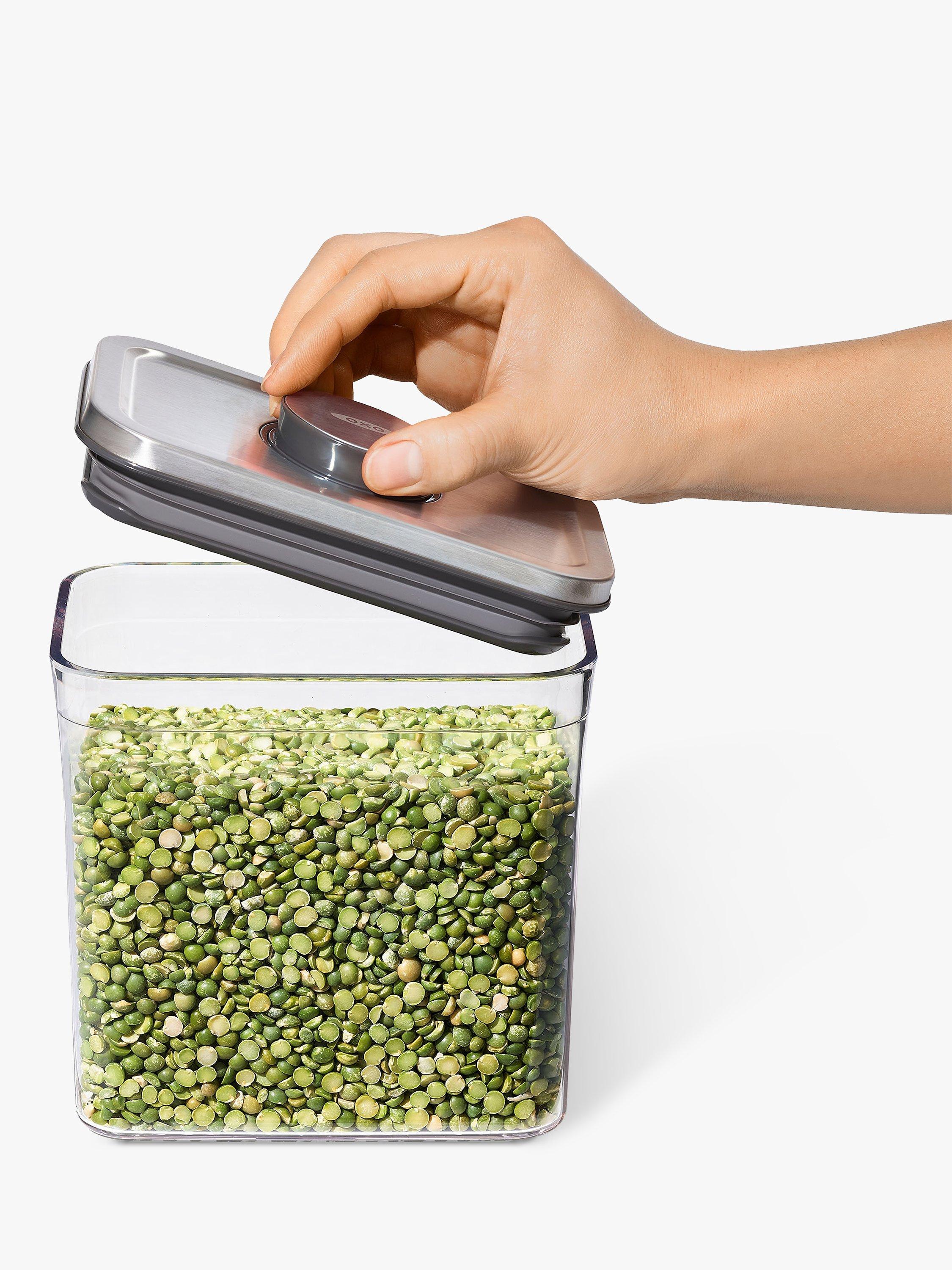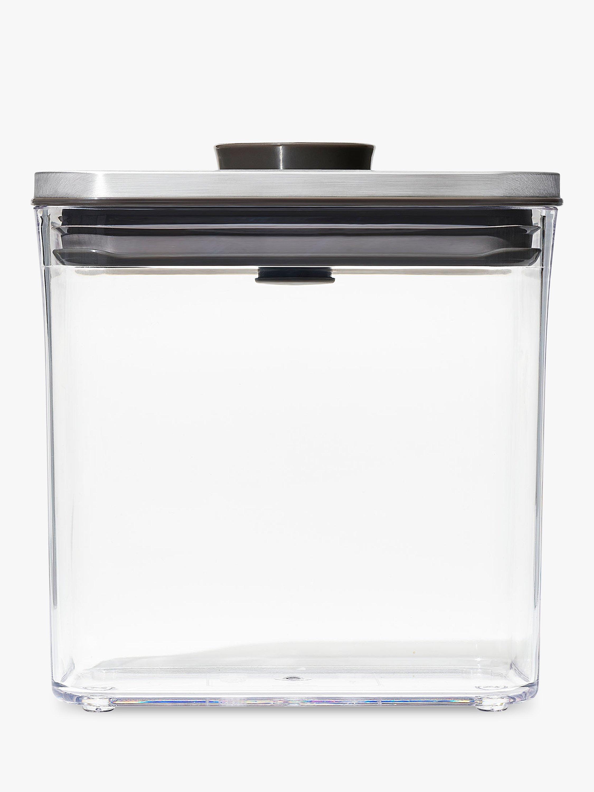 An airtight storage container that suits contemporary interiors and is ideal for keeping dried foods. Push the button on the stainless steel lid to create an airtight seal. Press it again to pop it up for easy opening with just one hand when you're busy in the kitchen. It's part of OXO's POP range of containers in different shapes and sizes to suit your cupboard space.