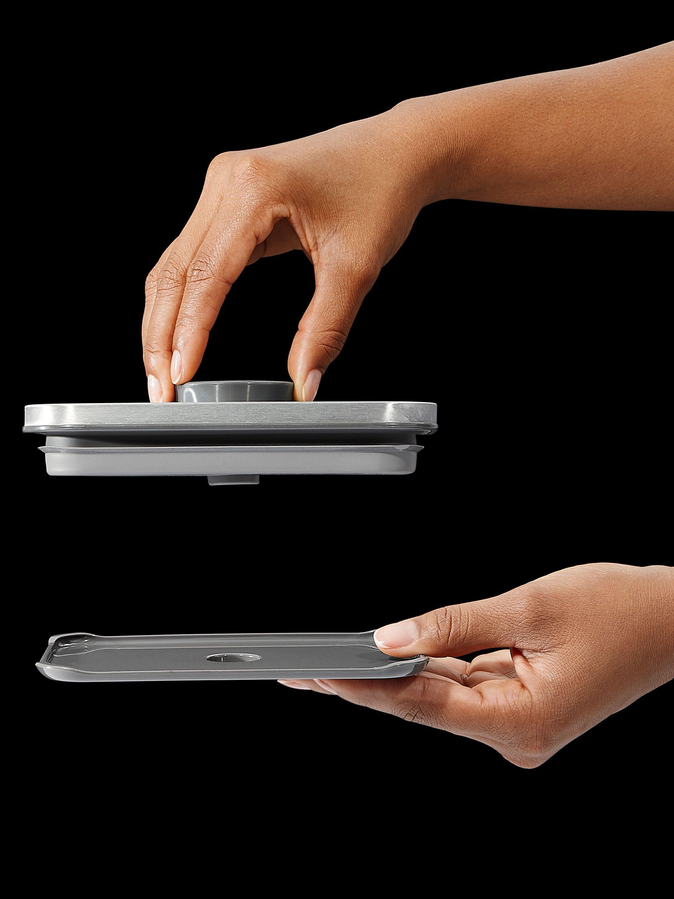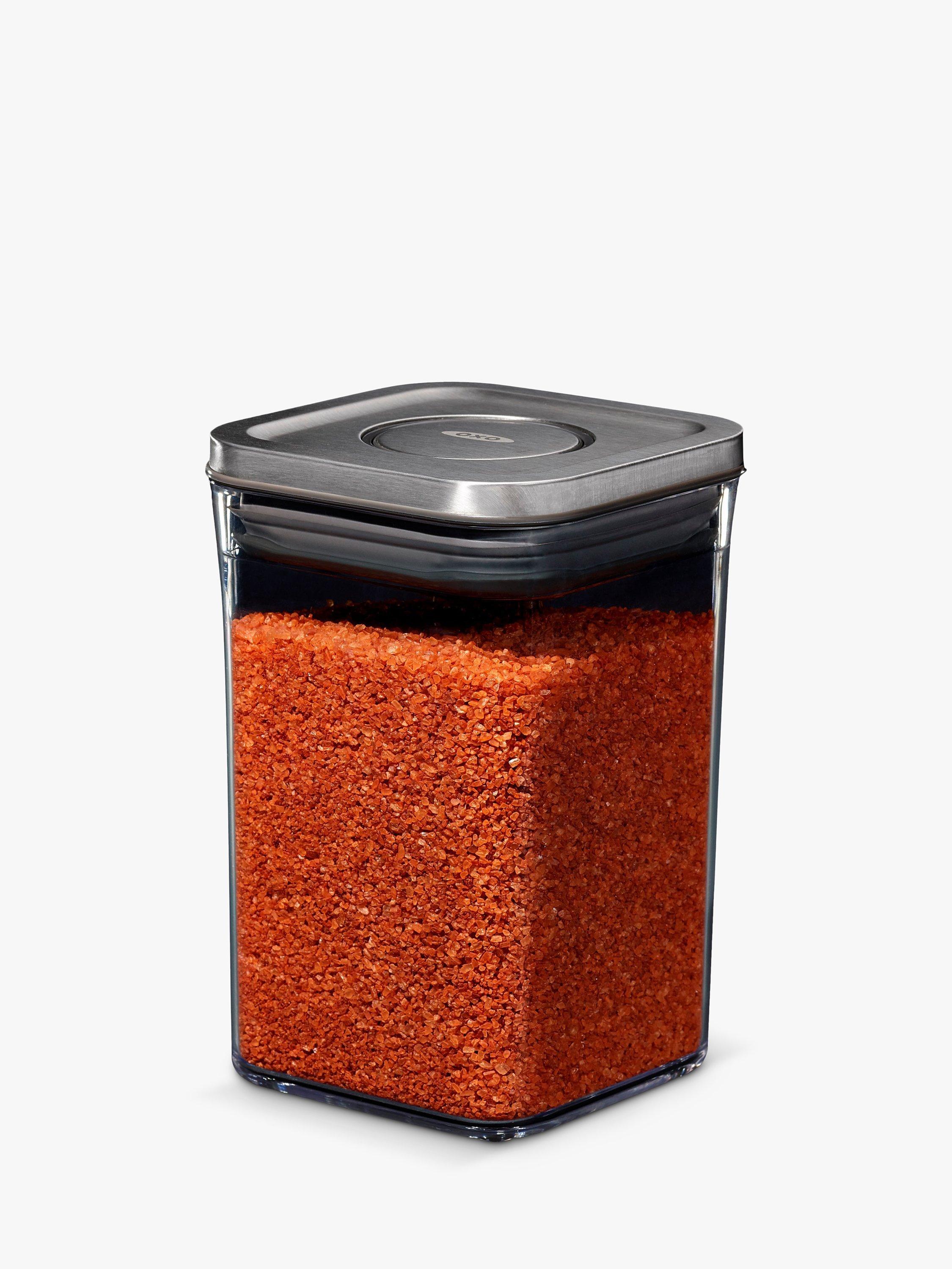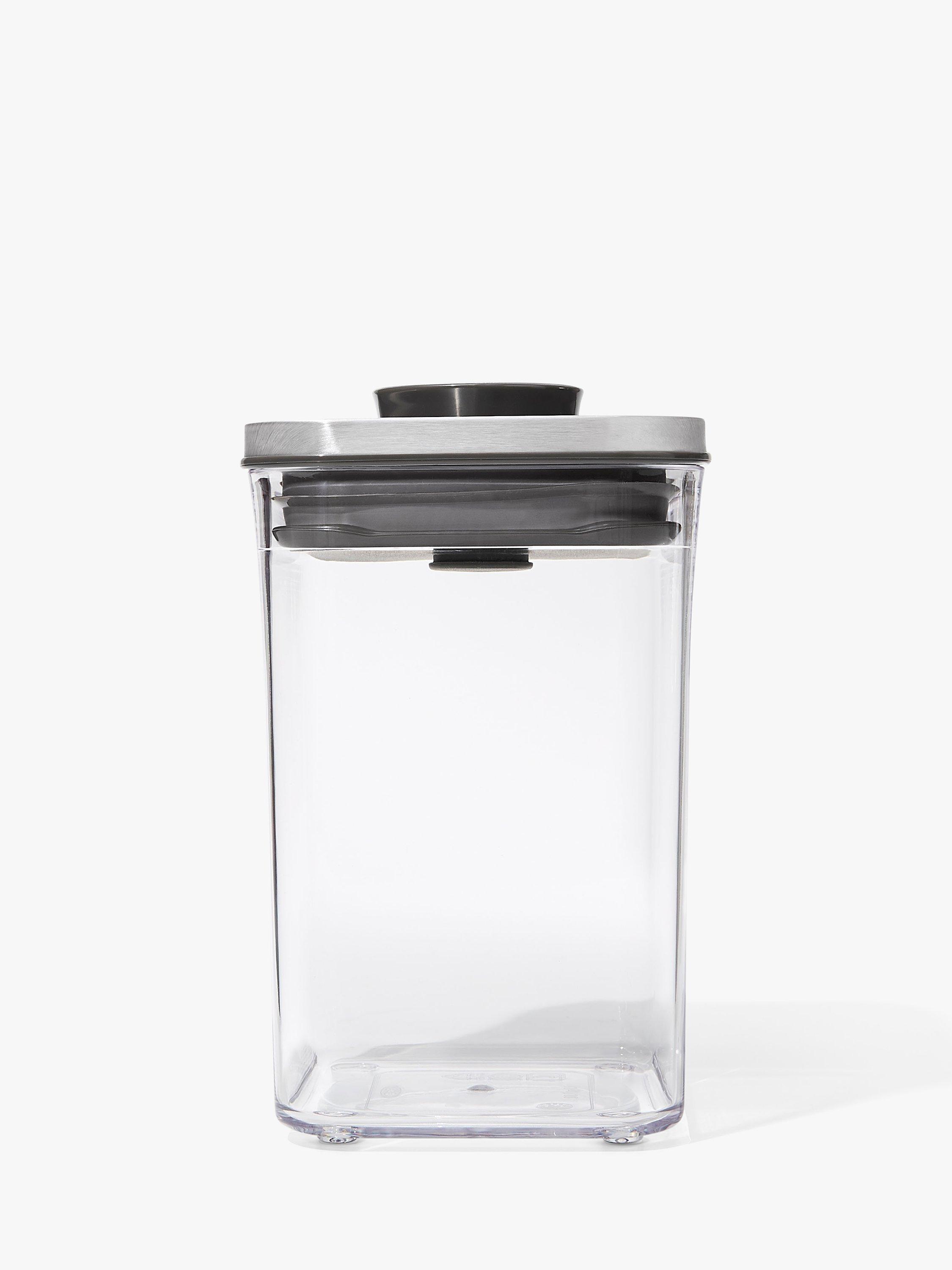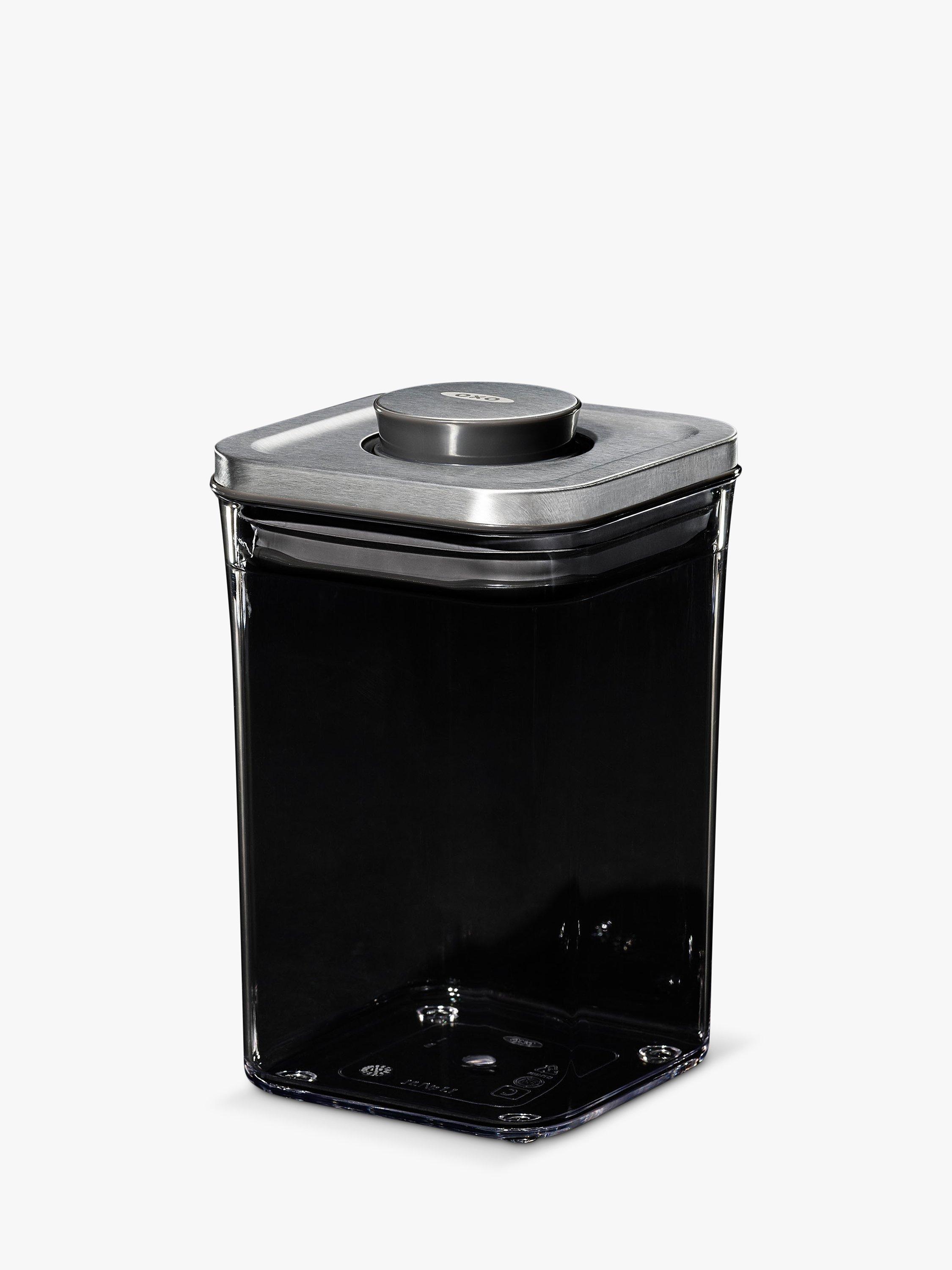 An airtight storage container that suits contemporary interiors and is ideal for keeping dried foods. Push the button on the stainless steel lid to create an airtight seal. Press it again to pop it up for easy opening with just one hand when you're busy in the kitchen. It's part of OXO's POP range of containers in different shapes and sizes to suit your cupboard space.