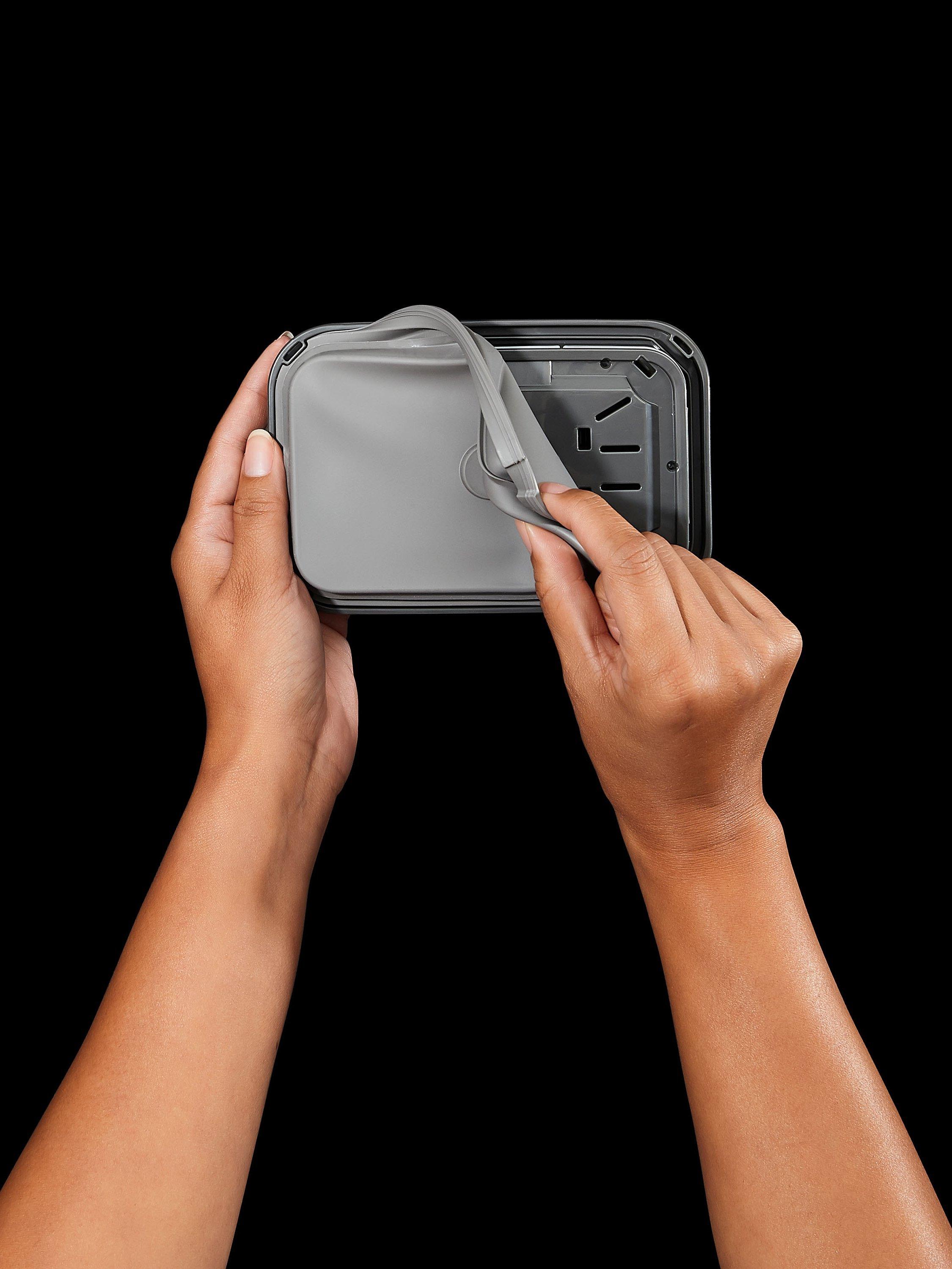 POP containers are made of clear, BPA-free plastic with rounded corners for easy pouring and a push-button opening. A handy fill line helps prevent over-filling and the containers are dishwasher safe for easy cleaning, on the top rack.