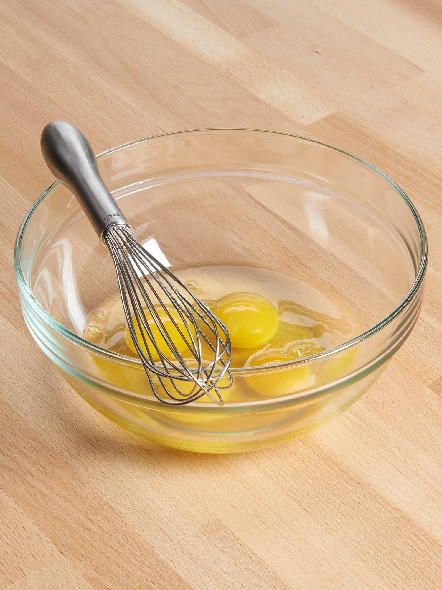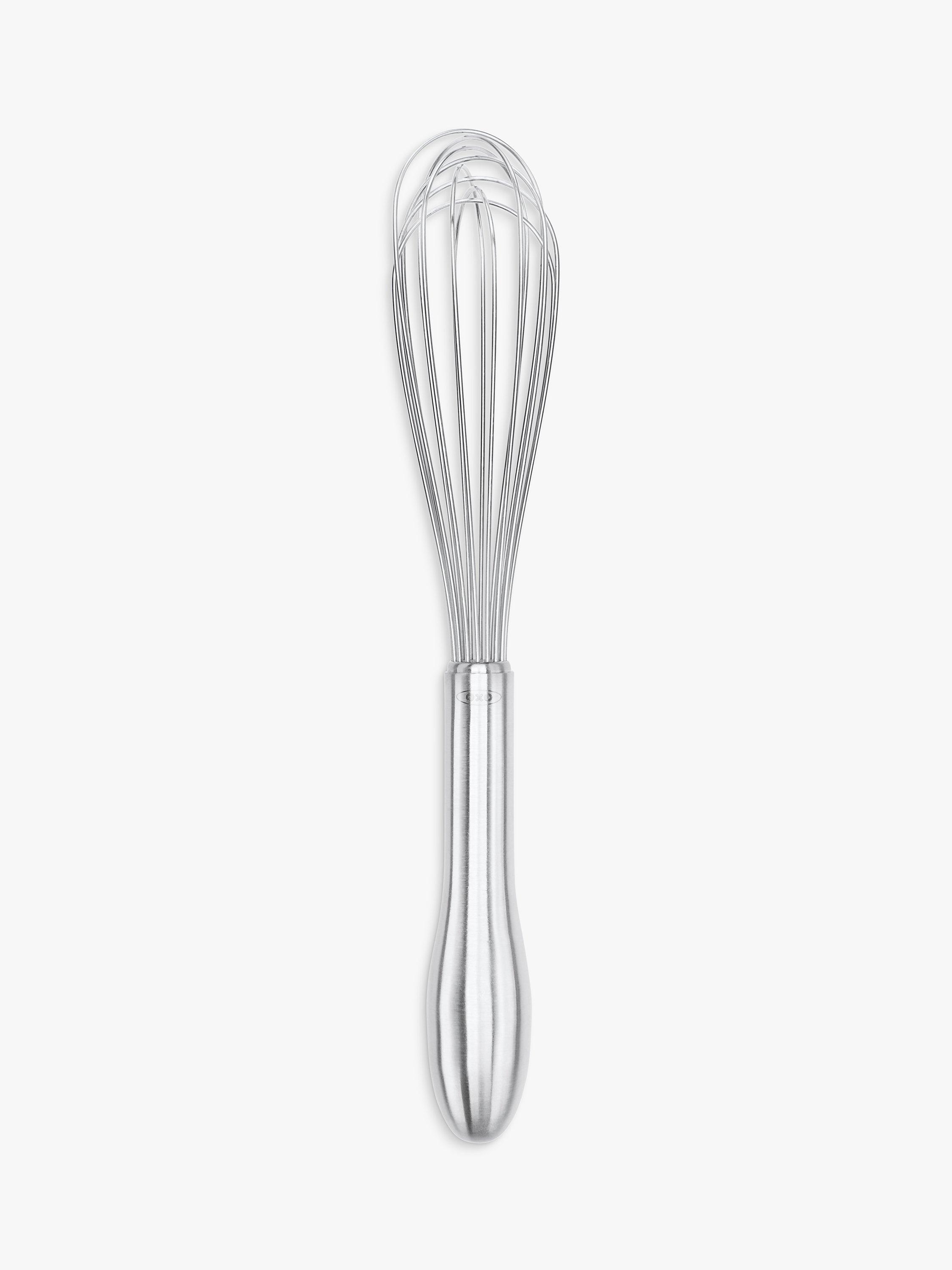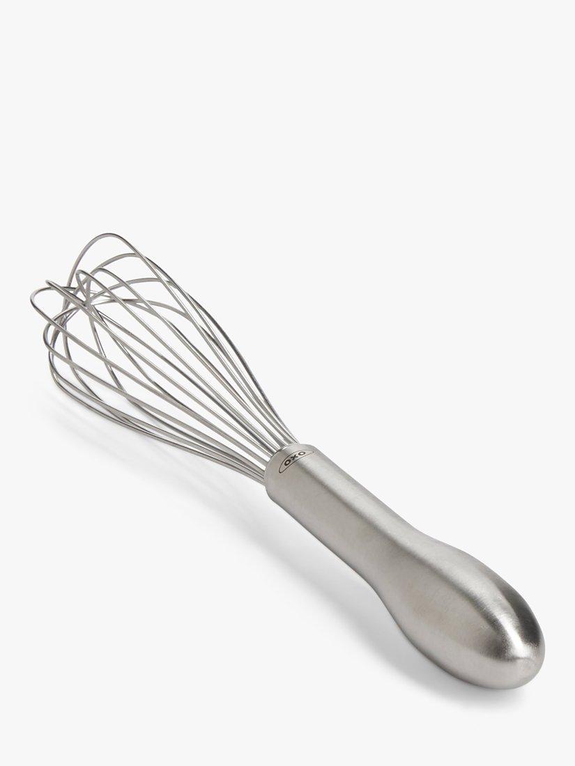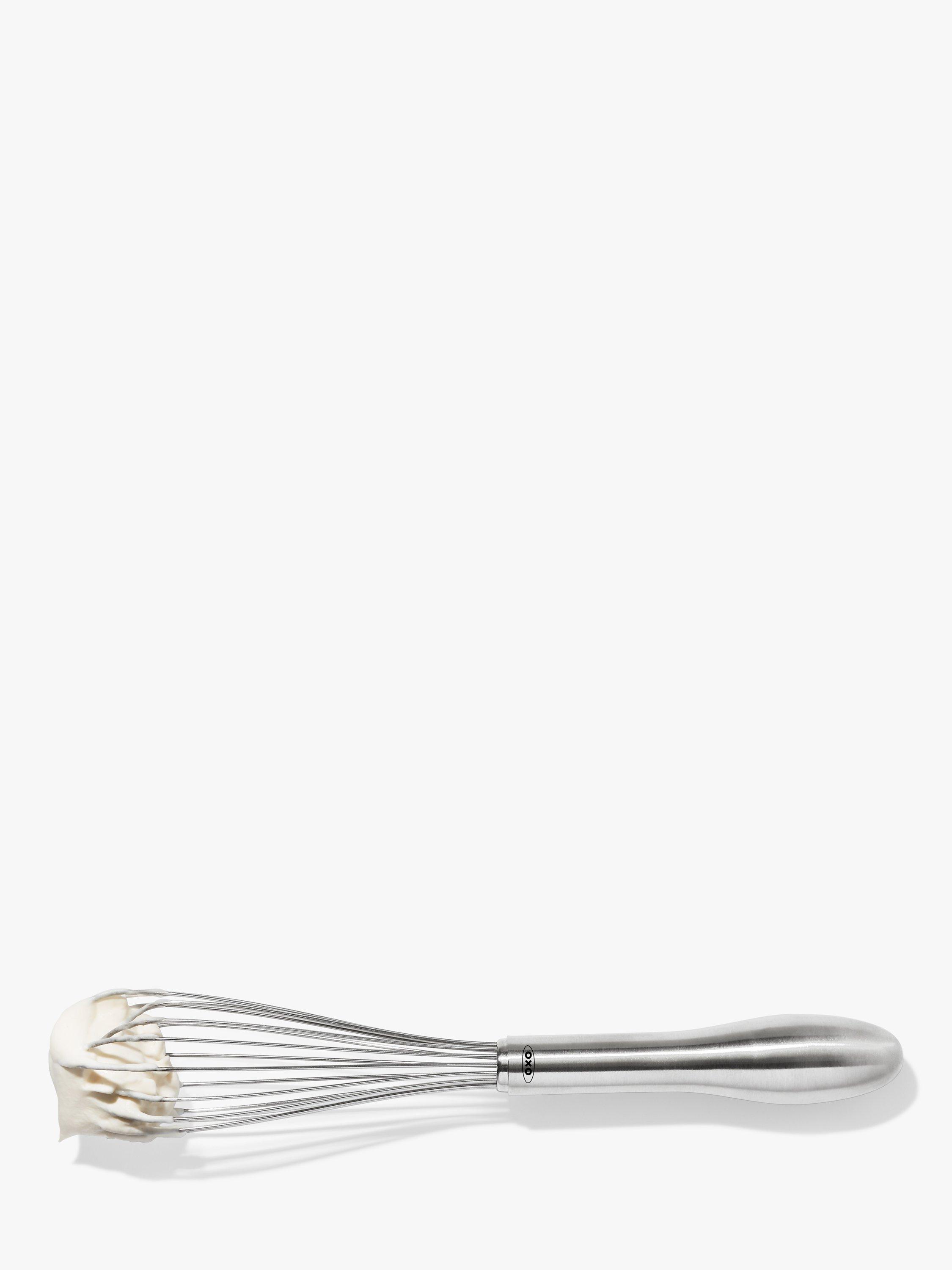 Whether you’re scrambling a few eggs or mixing a waffle batter, the OXO Steel 9-inch Whisk is a sleek tool that lets you whip with less fatigue. The elegant, brushed stainless steel handle has an innovative design that fits in the palm of your hand for comfort during repetitive motion. The wires are engineered to blend ingredients efficiently. Dishwasher safe.