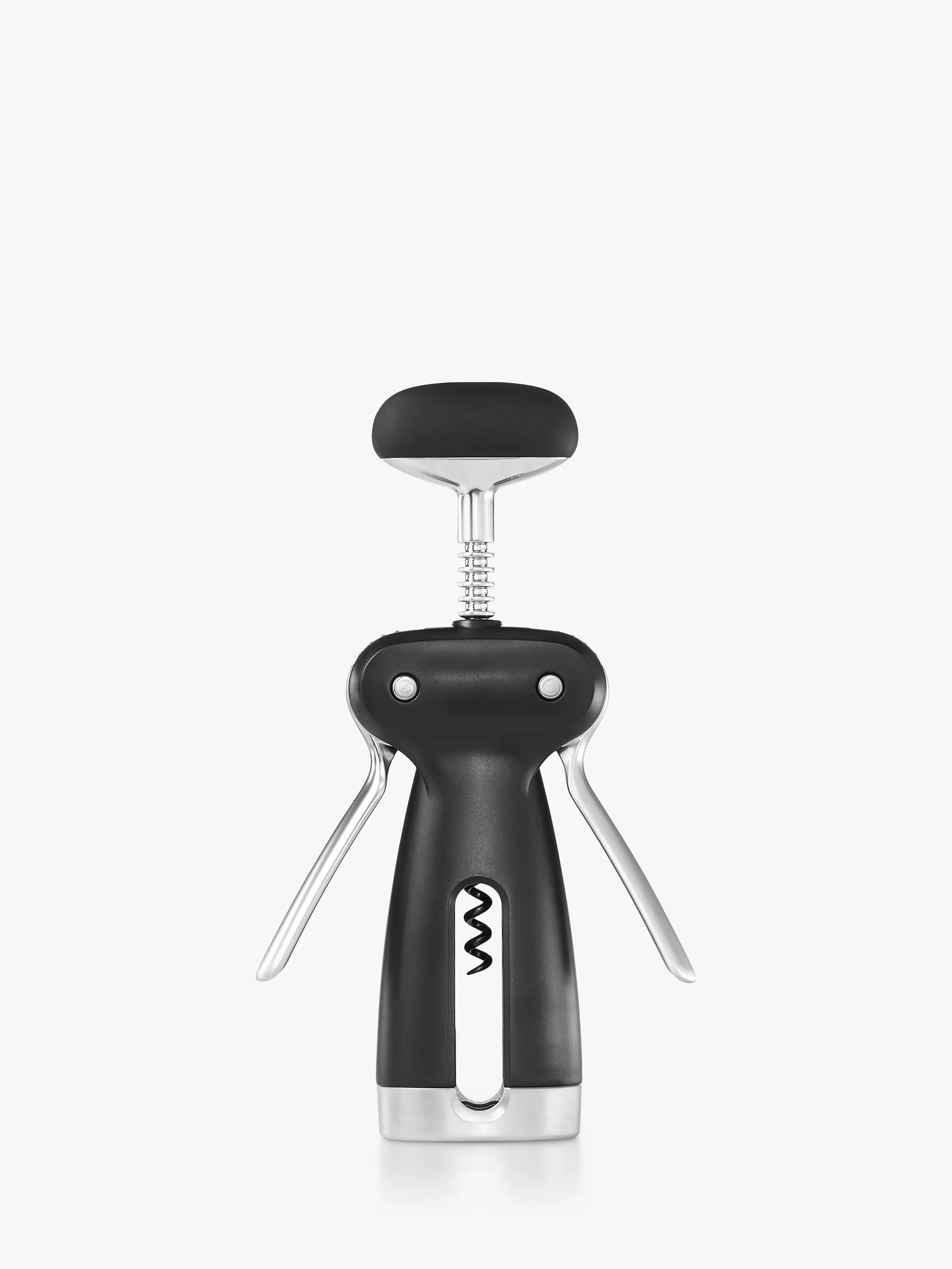 This winged corkscrew from OXO has a removable foil cutter for preparing bottle tops for opening. The corkscrew has a non-stick, self-centring coil that easily glides into any type of cork.