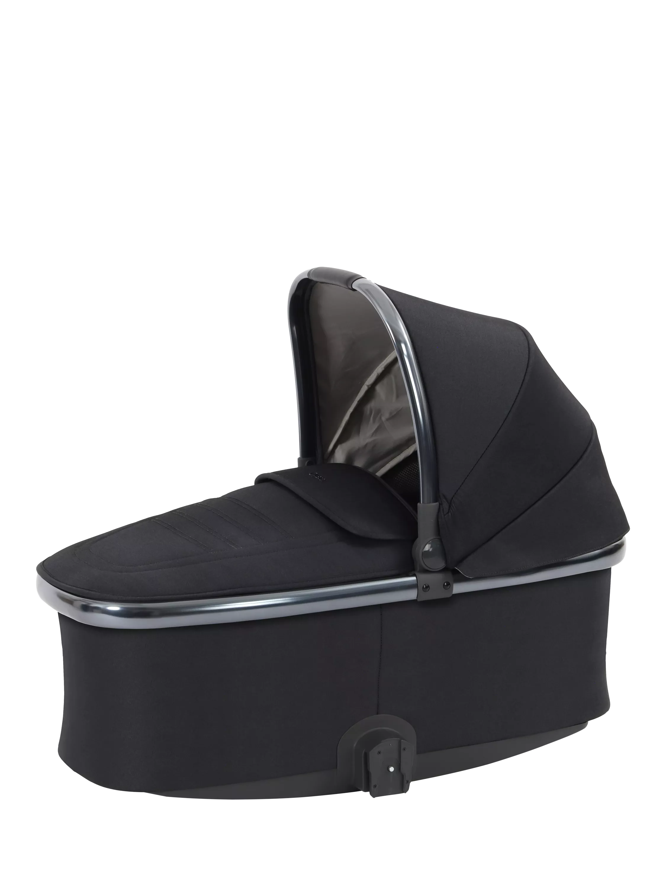 A protective nest, the carrycot can be attached and easily detached from the chassis. It also has a rocking base with stabiliser feet, a retractable canopy for easy access and a ventilation window to ensure positive airflow.