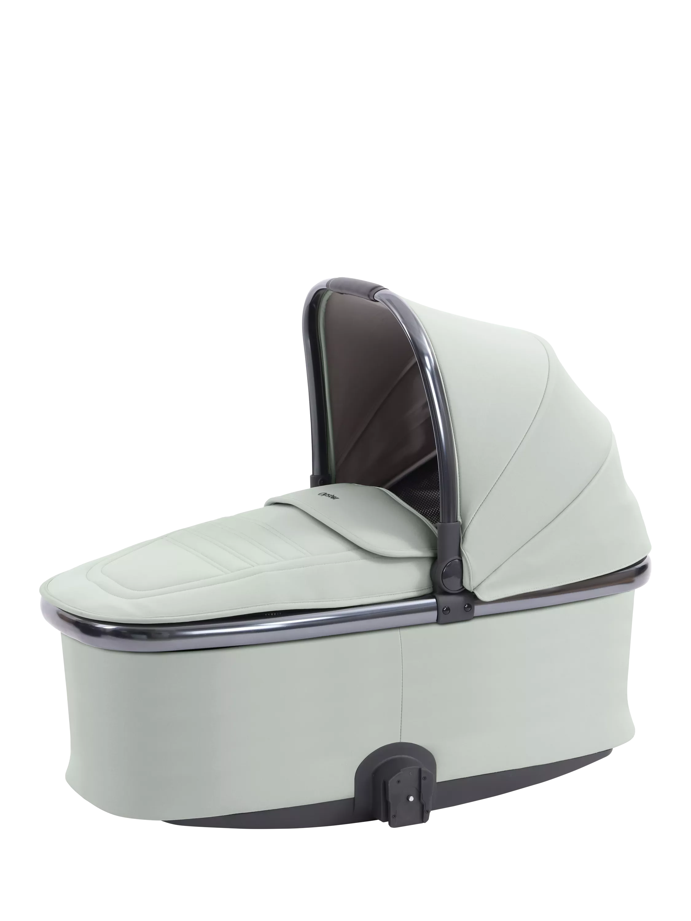 A protective nest, the carrycot can be attached and easily detached from the chassis. It also has a rocking base with stabiliser feet, a retractable canopy for easy access and a ventilation window to ensure positive airflow.