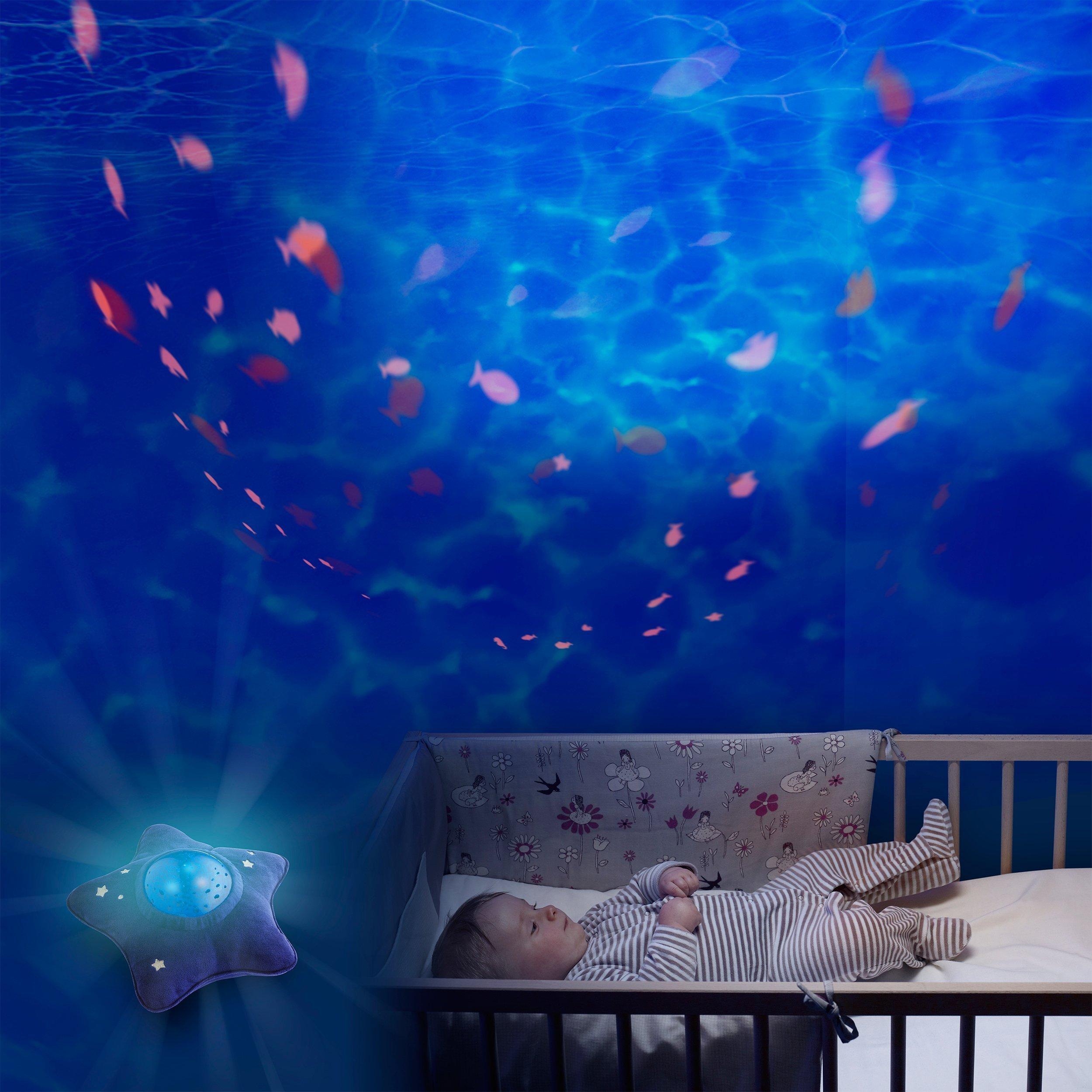 - "Babycrysensor" which allows the projector to turn-on automatically if the baby cries during the night. With a relaxing womb sound, this program calms down the child and you don’t have to wake up!