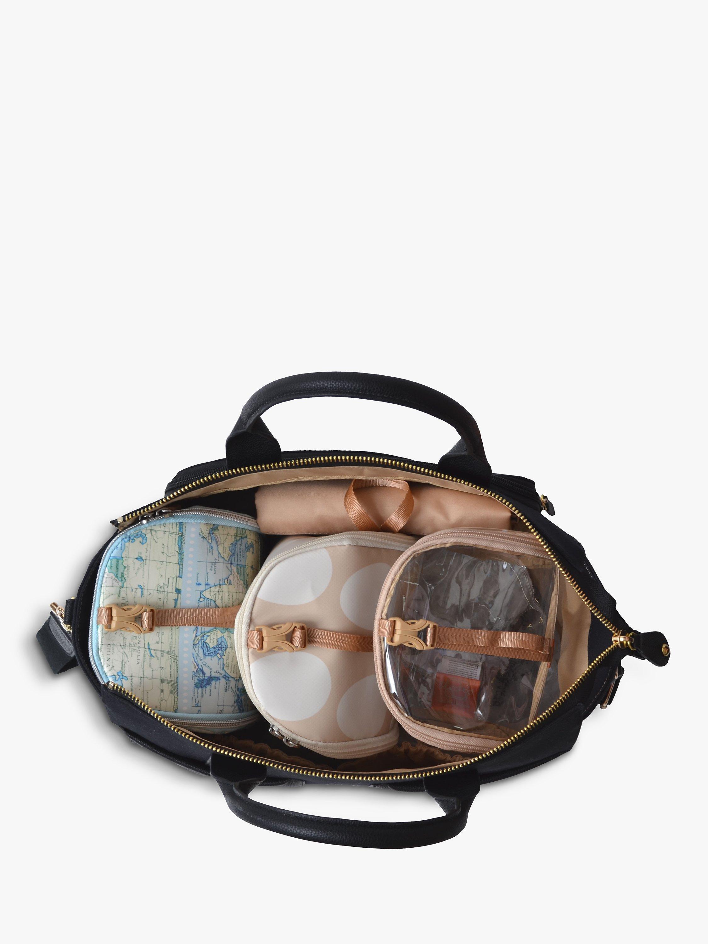 Offering versatility of style, this bag can be worn with the integrated shoulder strap or held by its handle. Living inside is Pacapod's well known cargo pocket that hosts the ingenious 4 in 1 organisation system, including separate feeding, changing and travel pods for keeping items organised and clean, plus a range of other features: