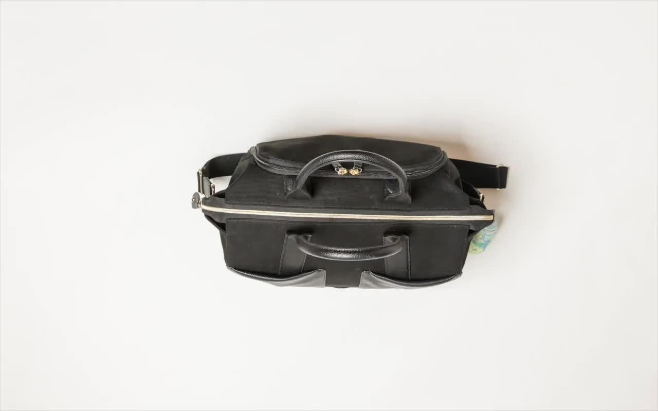 - Top carrying tote style handles as well as adjustable across body strap and pram clips