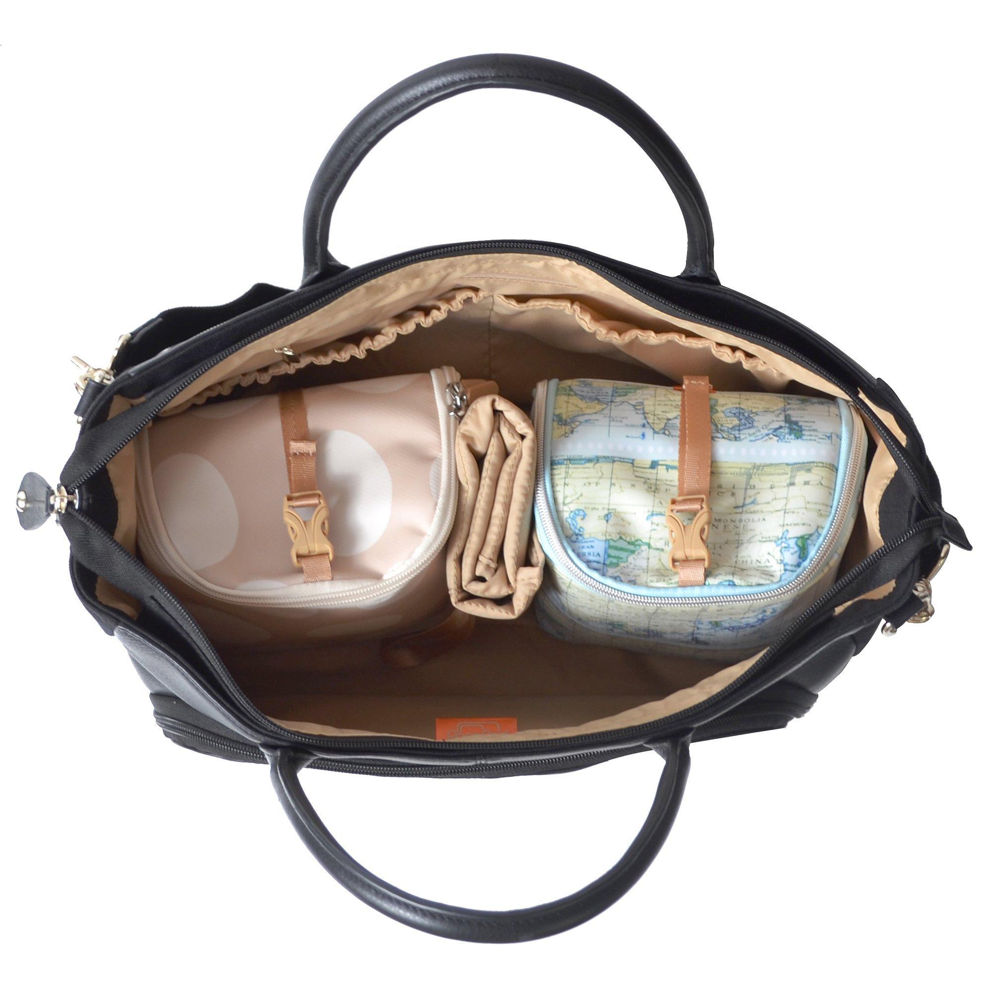 Sitting inside the Fortuna is a 3-in-1 organisation system, located at the top zip opening, where your essentials can be easily accessed on the go. This ingenious and light-weight system ensures quick retrieval of nappies, wipes, food and other necessities, preventing unwanted stresses when out for the day. This is a baby changing bag, cool bag and handbag all rolled into one.
