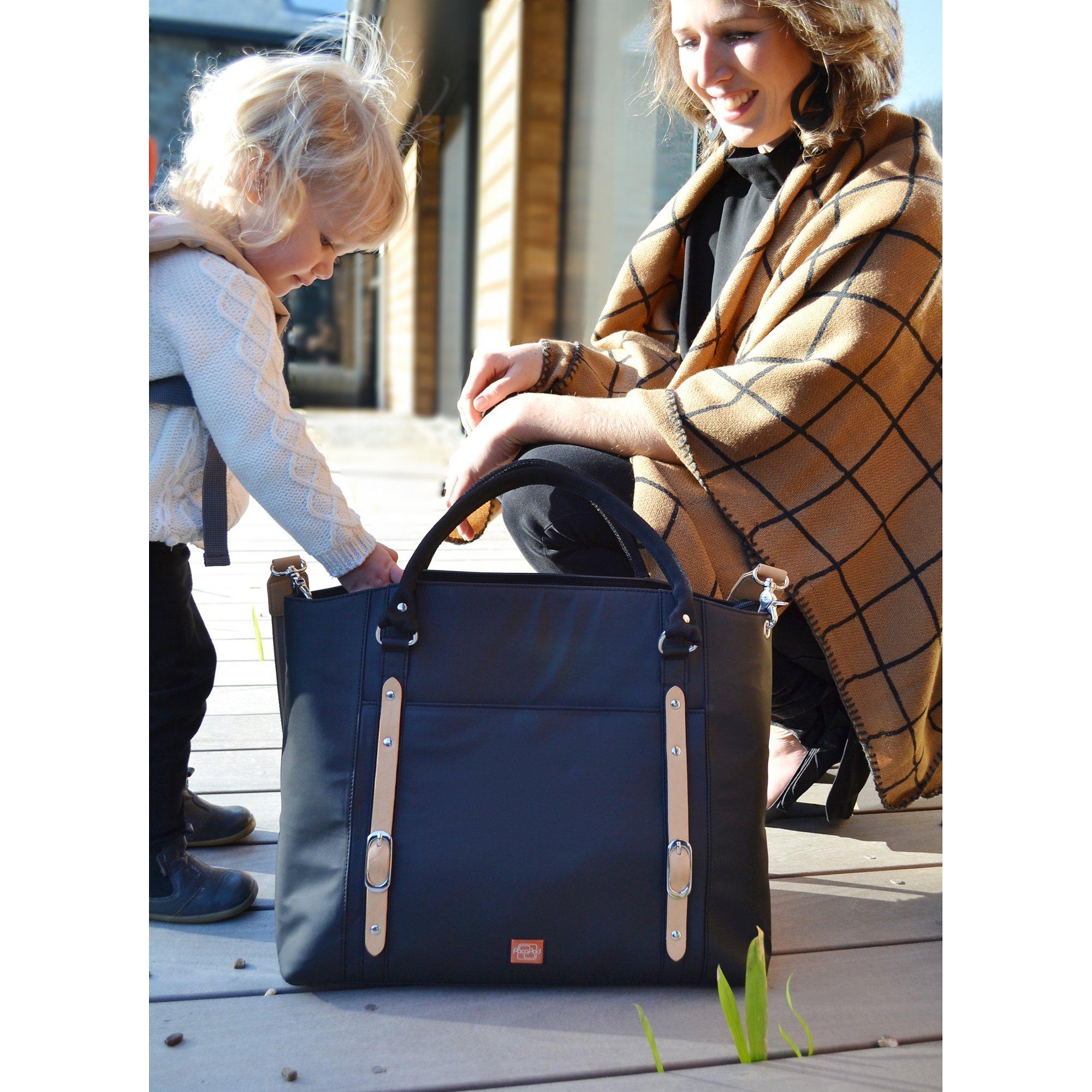 Buckle details give a touch of style to this 32-litre capacity tote bag that manages to pack in a padded changing mat and detachable PacaPods, ideal for storing baby and toddler feeding and changing items. The pods can be removed from the main bag and attached to any buggy, leaving plenty of space for a laptop, shopping or gym gear.