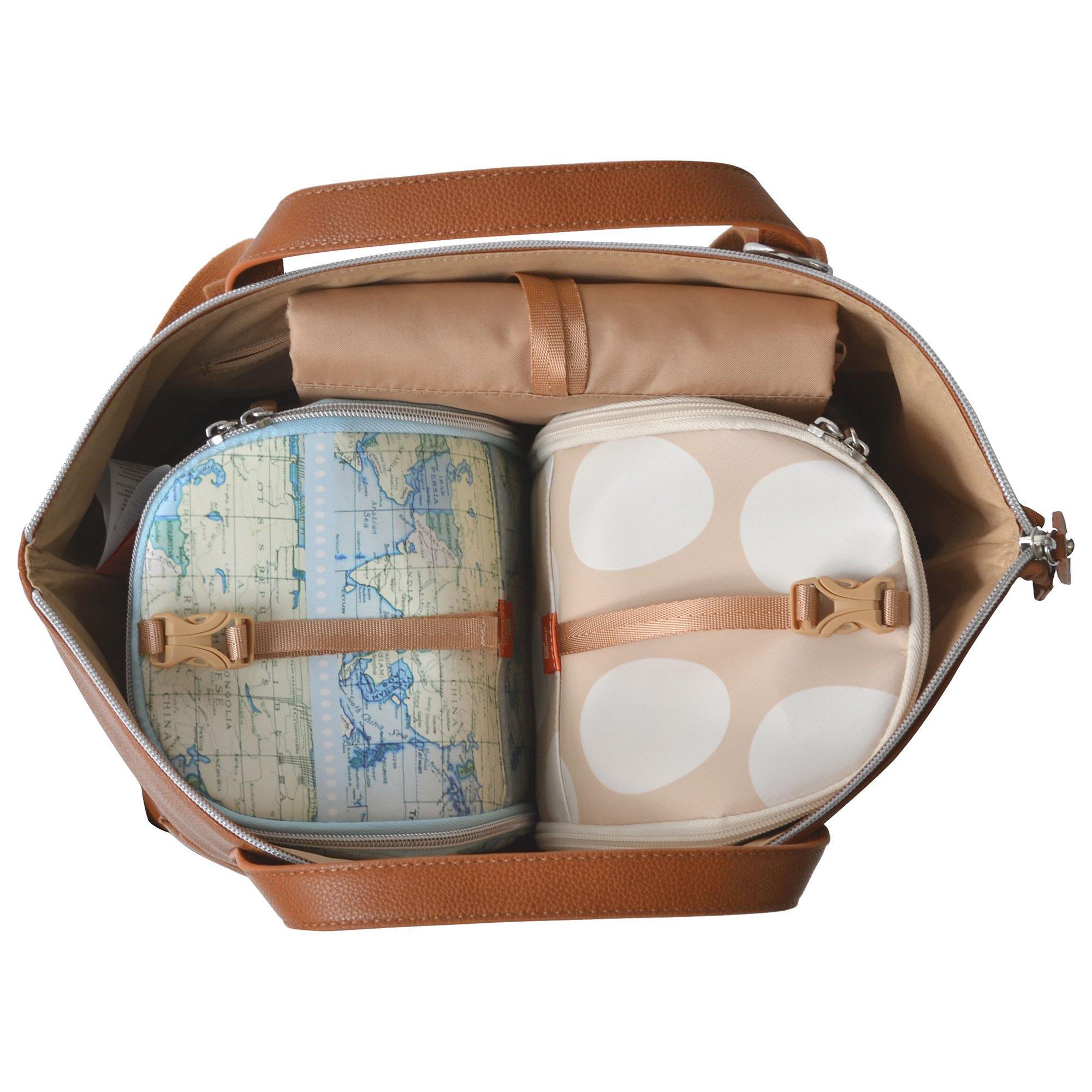 For sophisticated styling, the Saunton can be worn messenger style, or with a quick adjustment of the strap, wear it as a backpack - allowing for hands-free travel. Wide top opening access reveals the ingenious 3 in 1 system, featuring a changer pod and feeder pod.