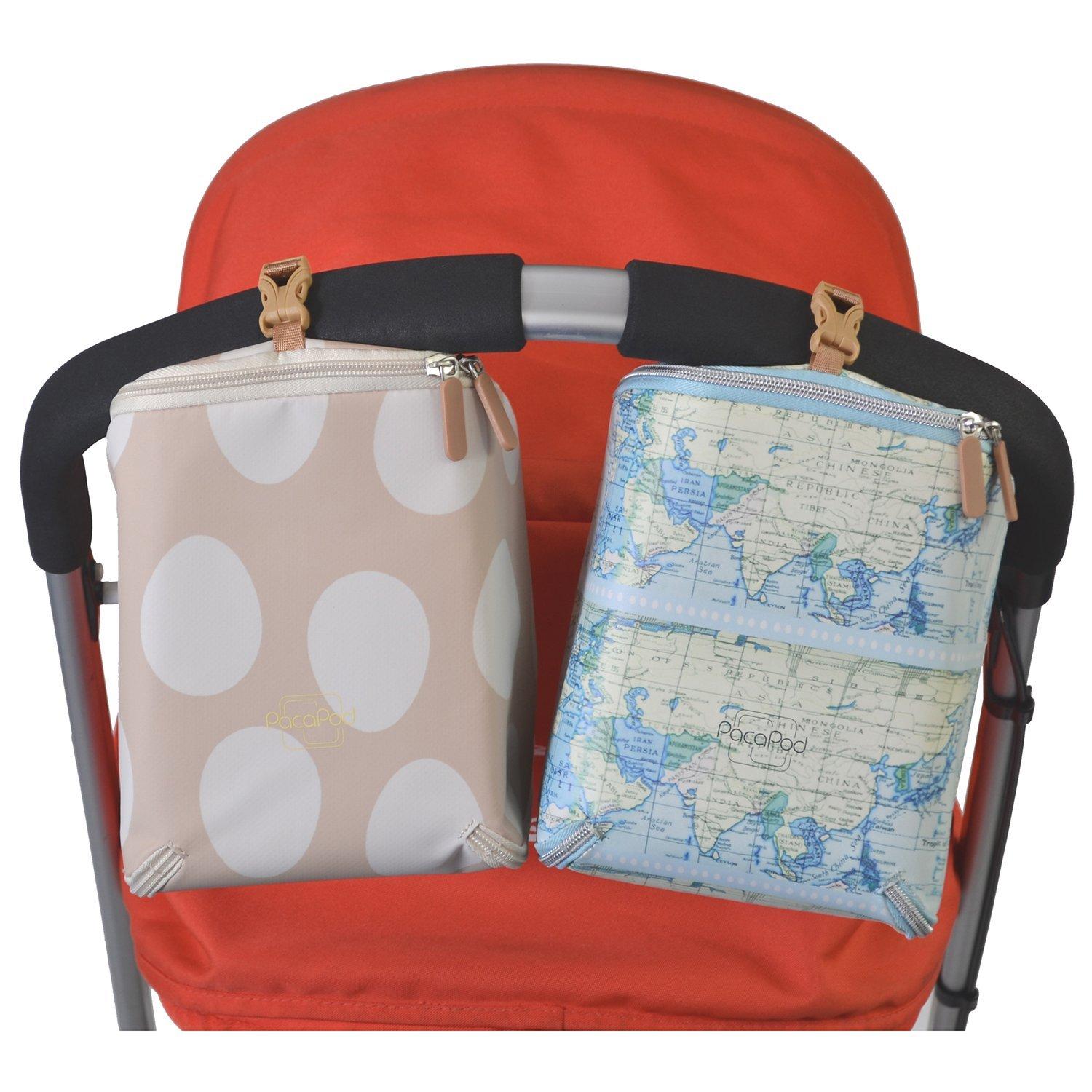 Stand out from the crowd with the newly designed map print feeder pod and have necessities on hand with the additional mini map print pacifier pod that comes attached to the outer.