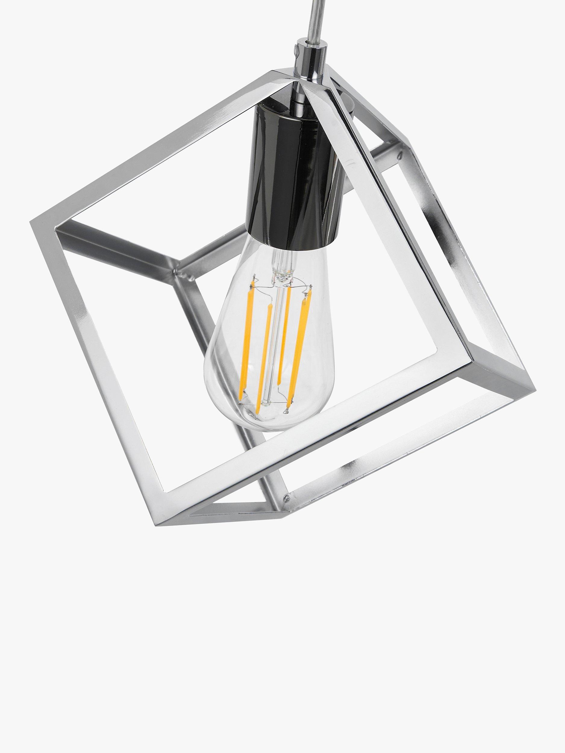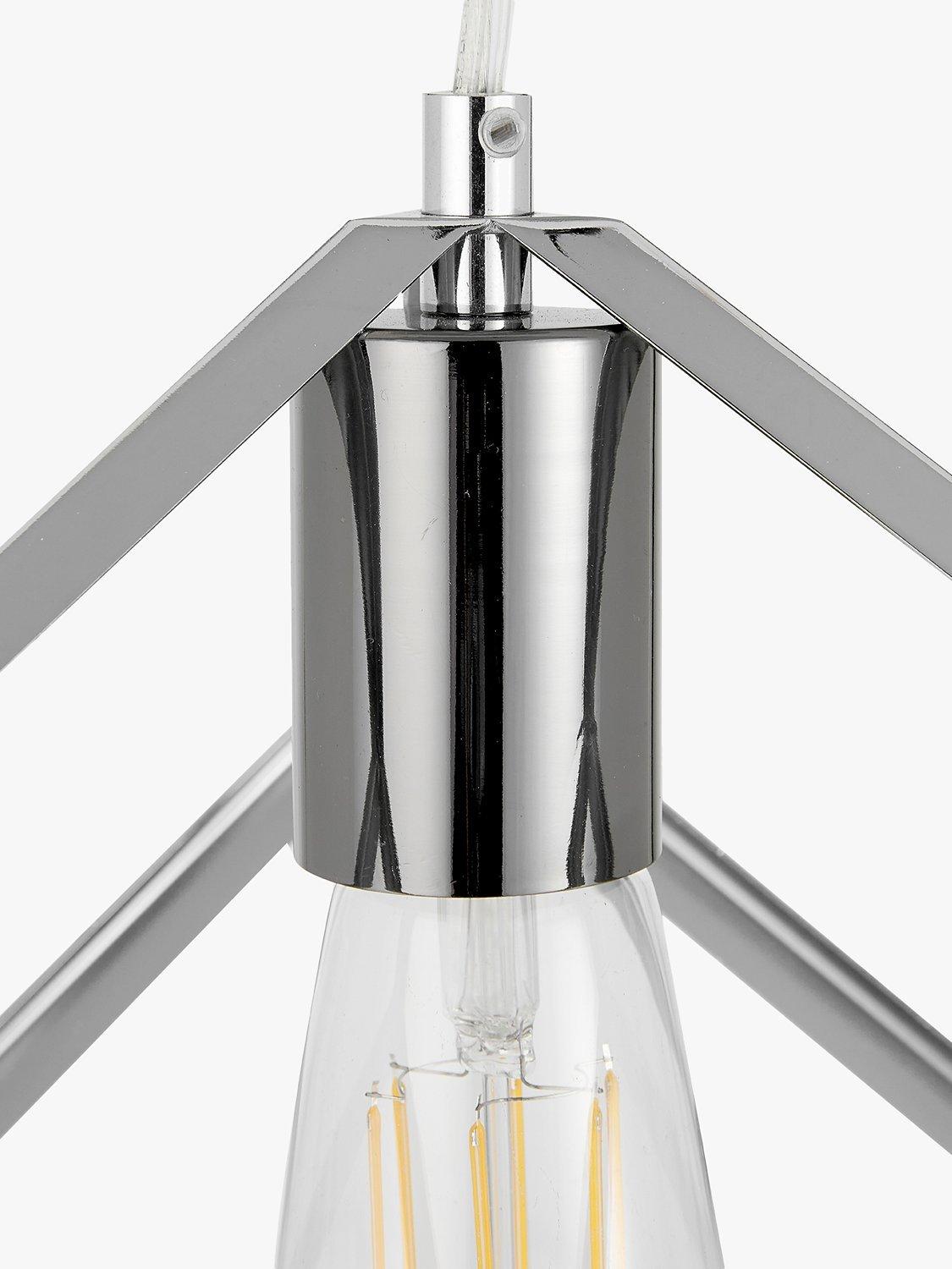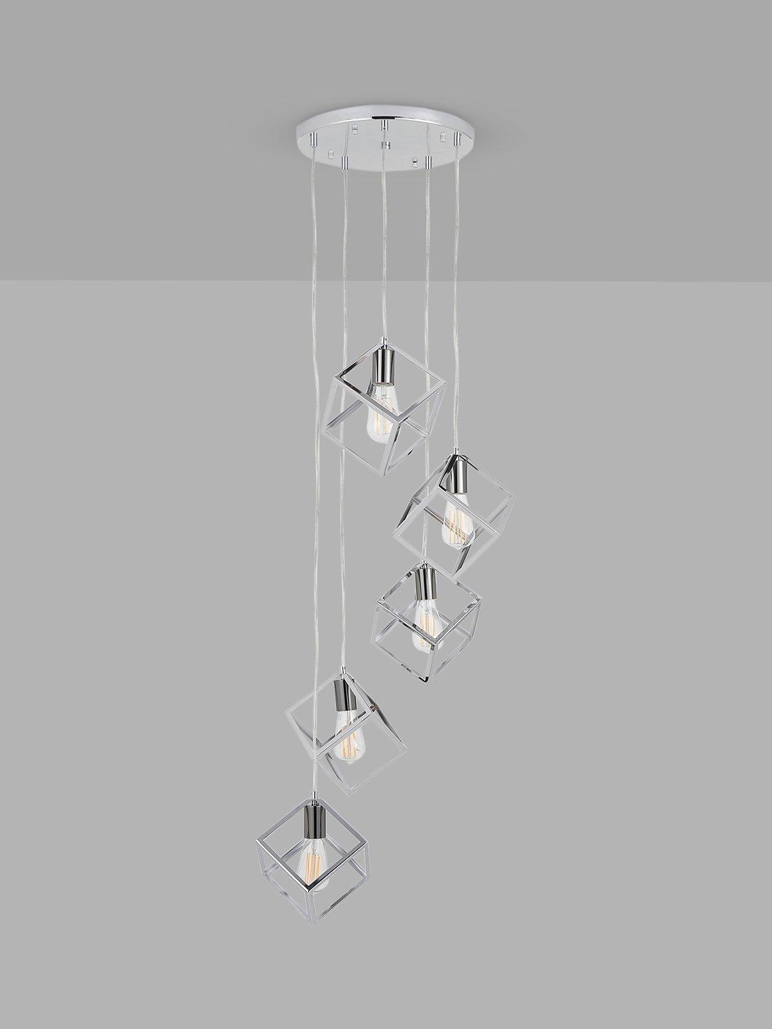 Crafted in metal and finished in a sleek shiny nickel with contrasting black nickel bulb holders, this Alessio five drop pendant brings a touch of modern styling into your home. This pendant appears to be suspended in mid-air when hung, creating a piece of art for your ceiling.