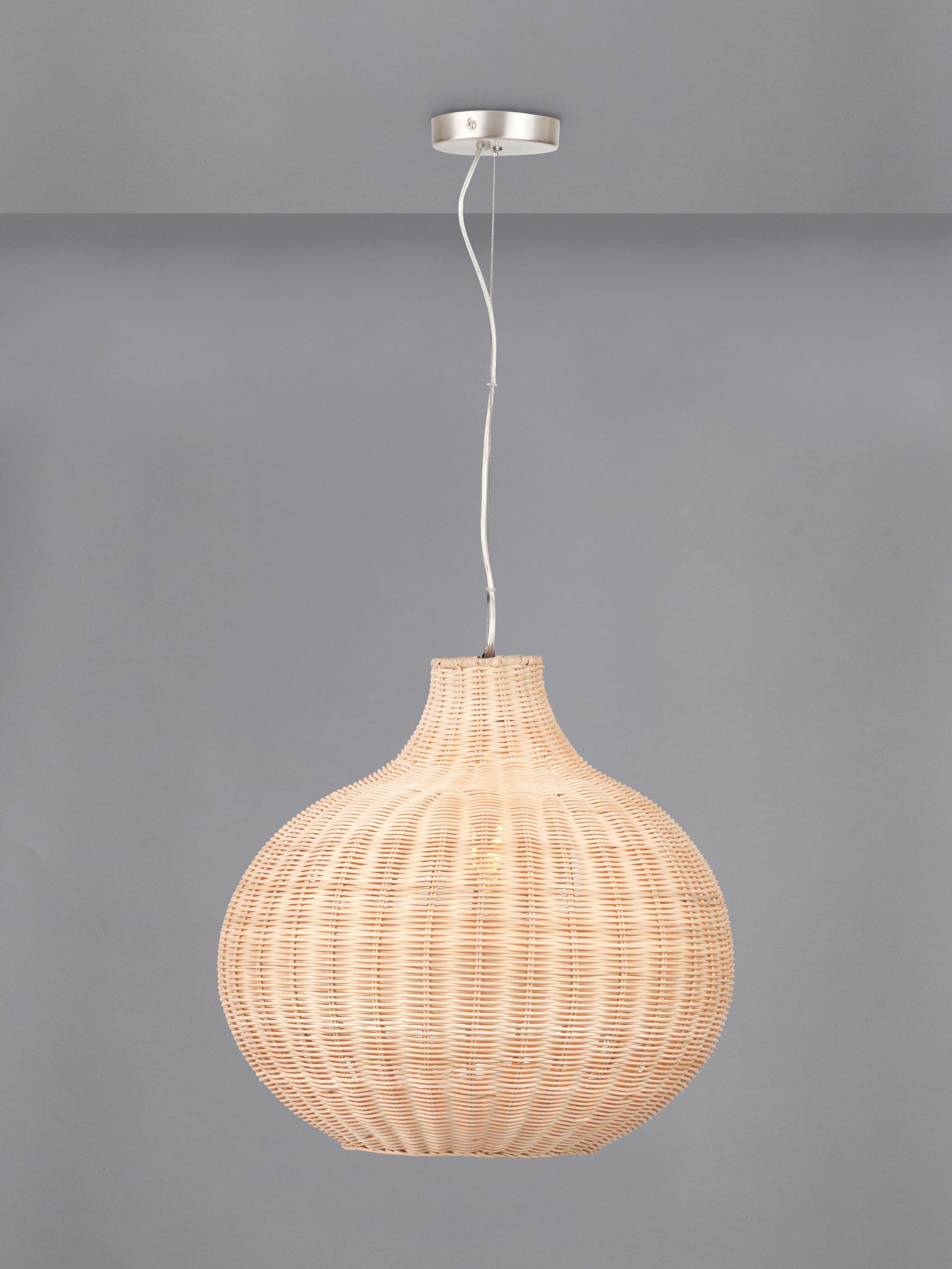 Woven rattan ceiling pendant with elegant proportions and delicate curves to make a statement in your interior. Elevate your home with this tasteful and tactile ceiling light.