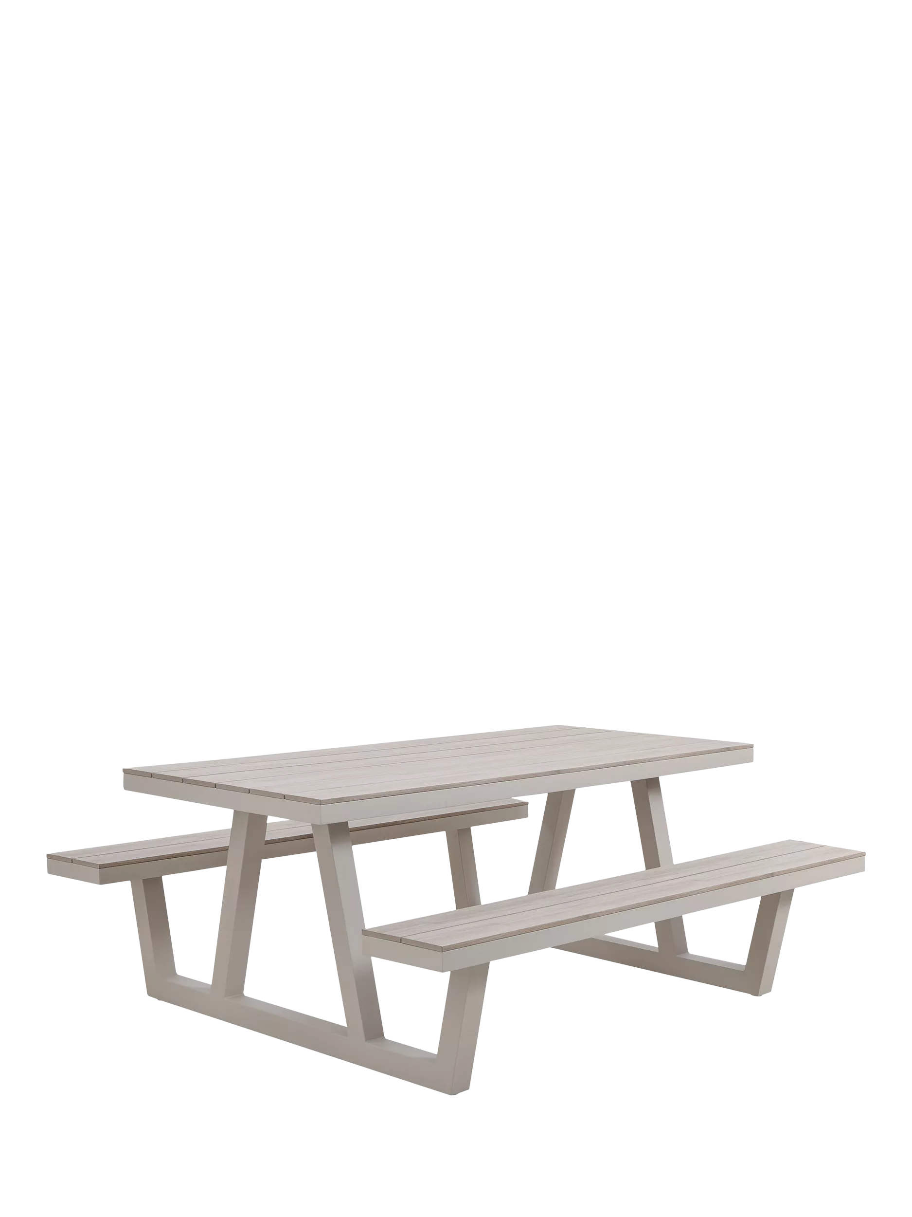The rectangular dining table and twin benches have polywood tops in an Ash colour.
