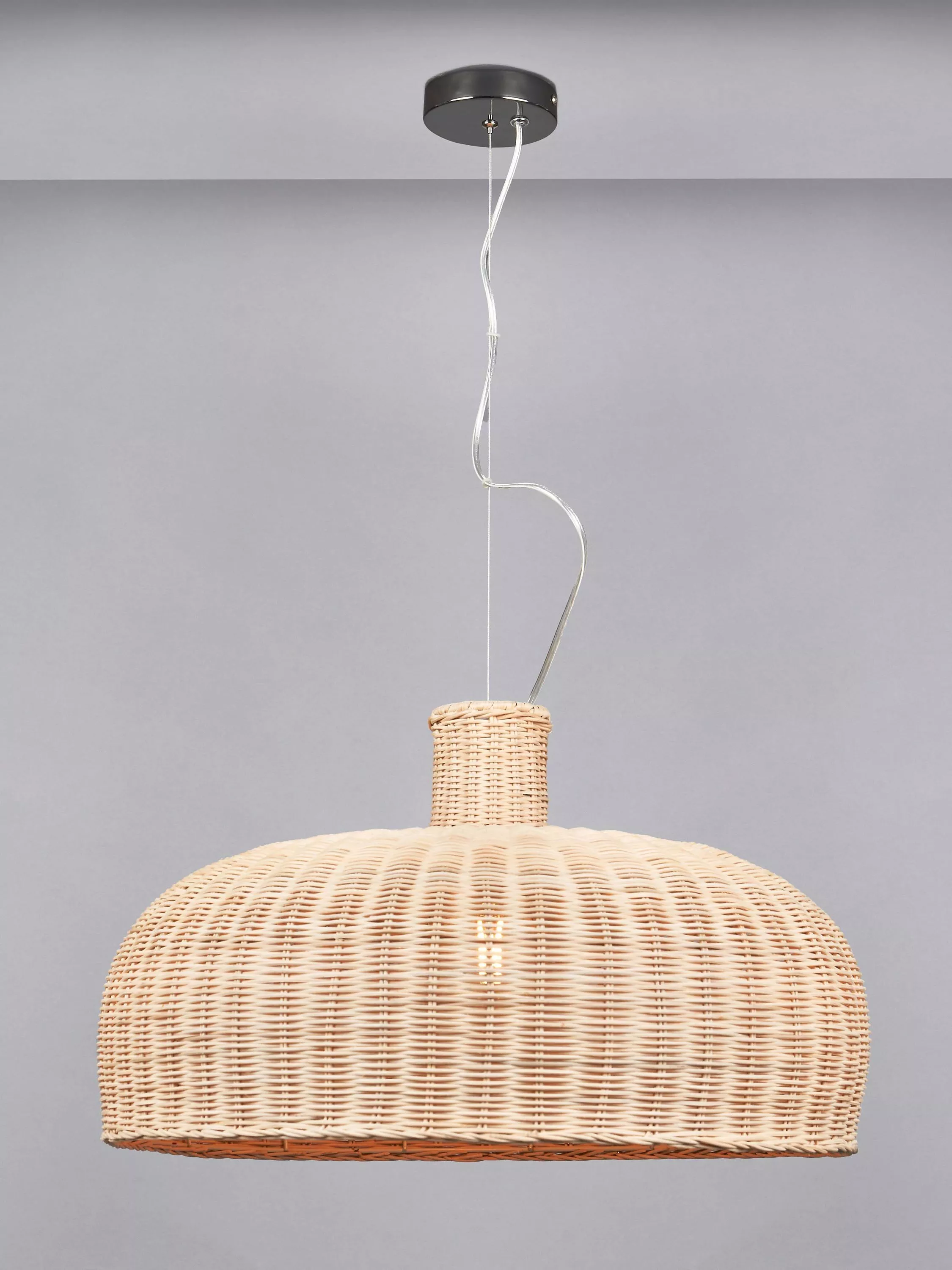 The Caswell is a dome-shaped ceiling light that is handwoven from natural rattan. The weave design allows the light to shine through and create striking patterns on the ceiling. The ideal addition a scandi interior. This non-electric pendant will fit any existing light fitting.
