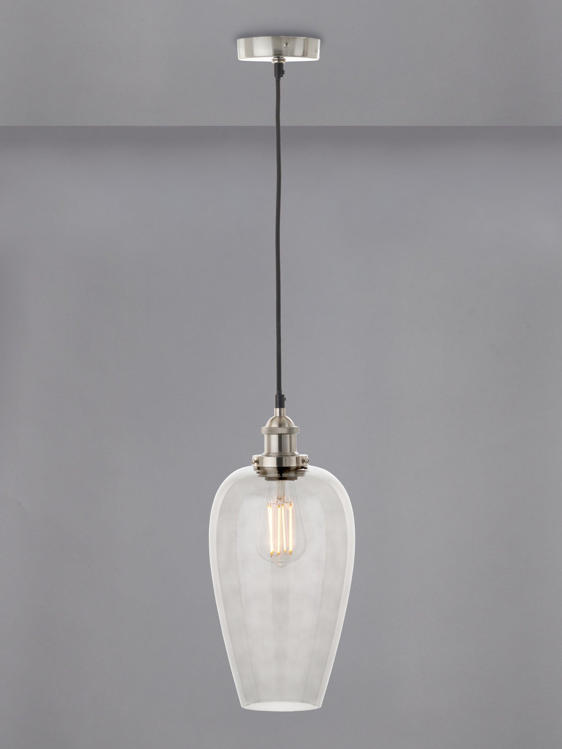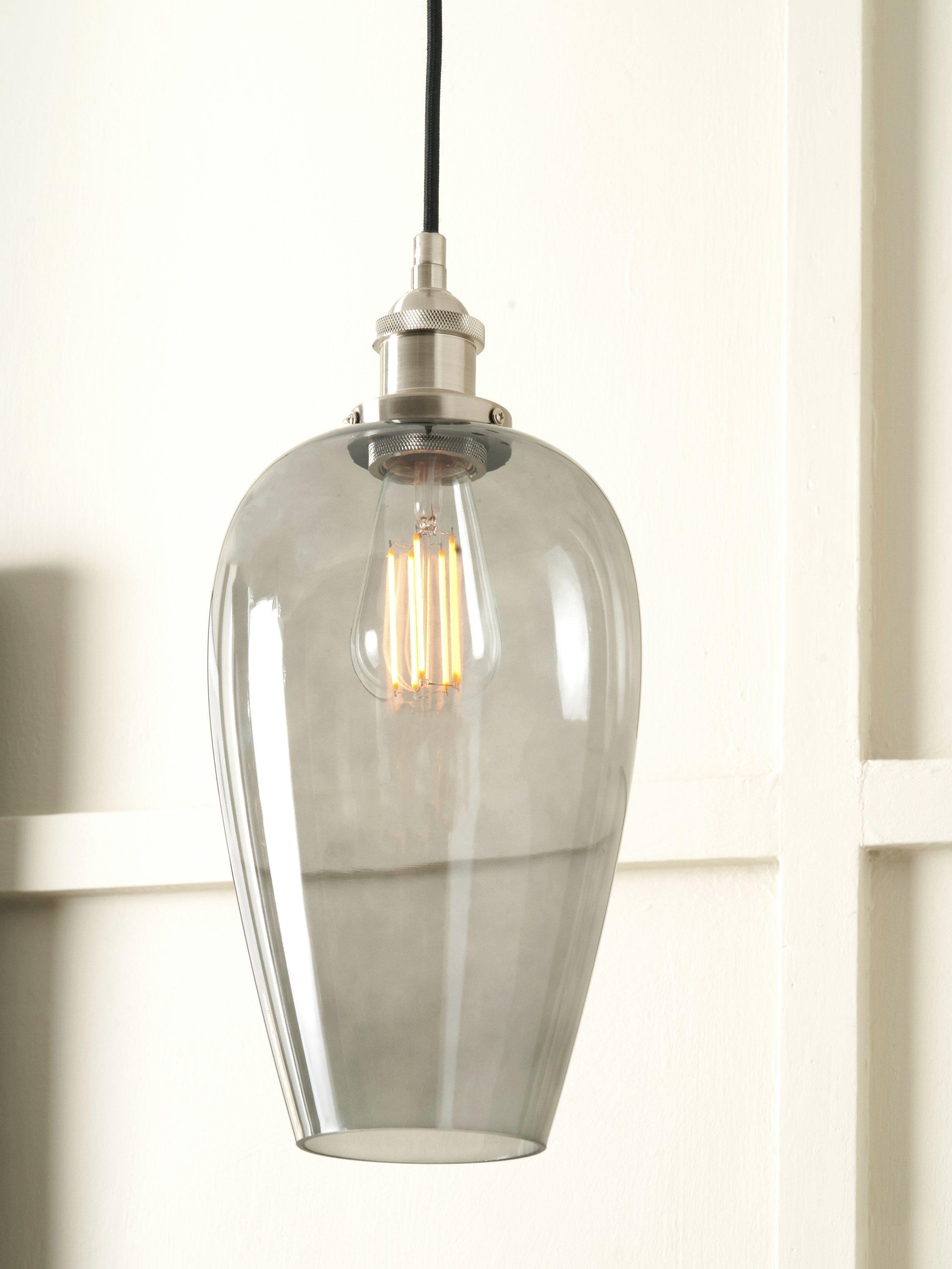 Sophisticated and elegant, the Clio pendant is crafted with a long glass shade, antiqued silver-toned metal and black fabric cable. A timeless design that exudes luxury and elevates any room.