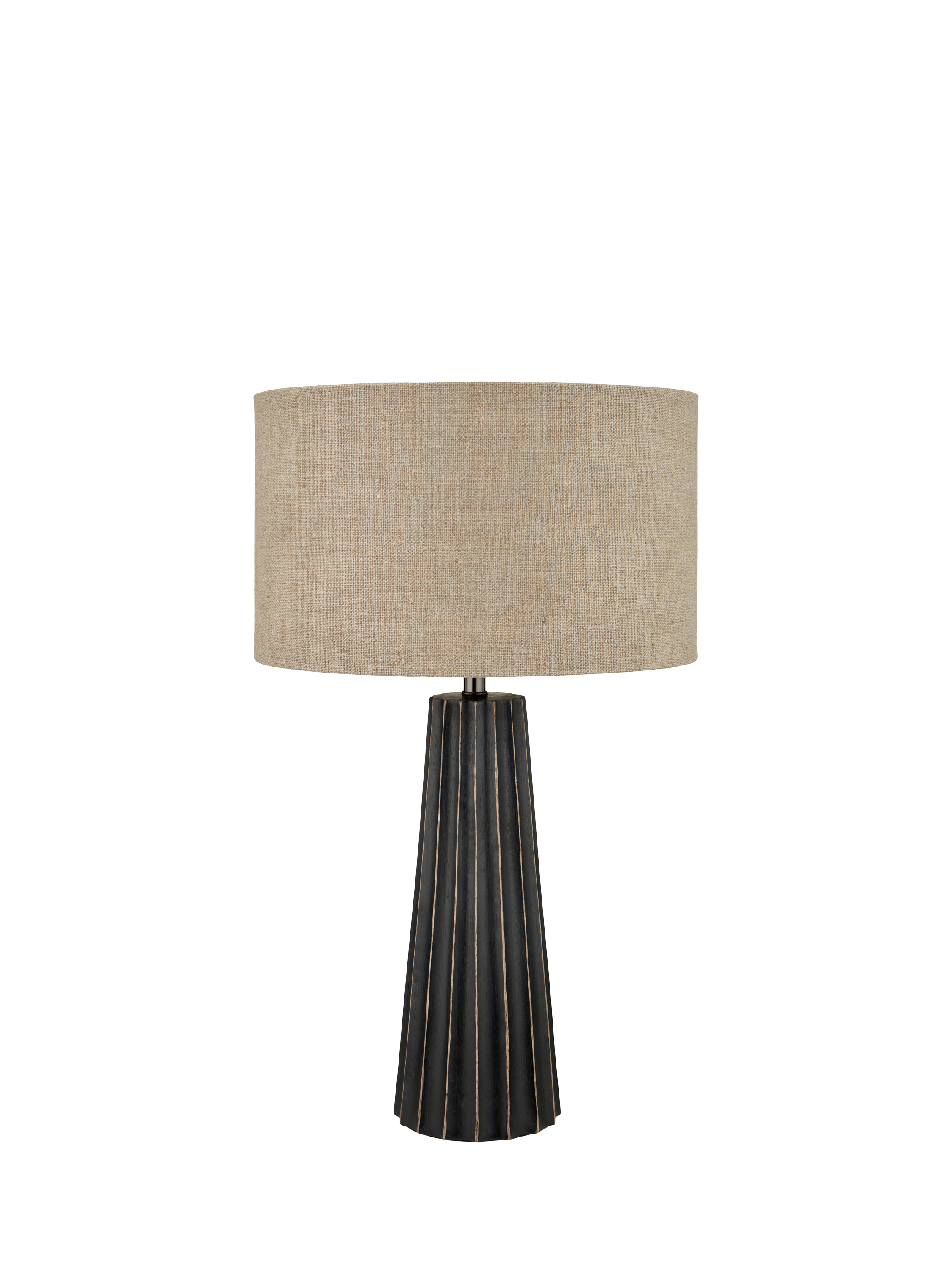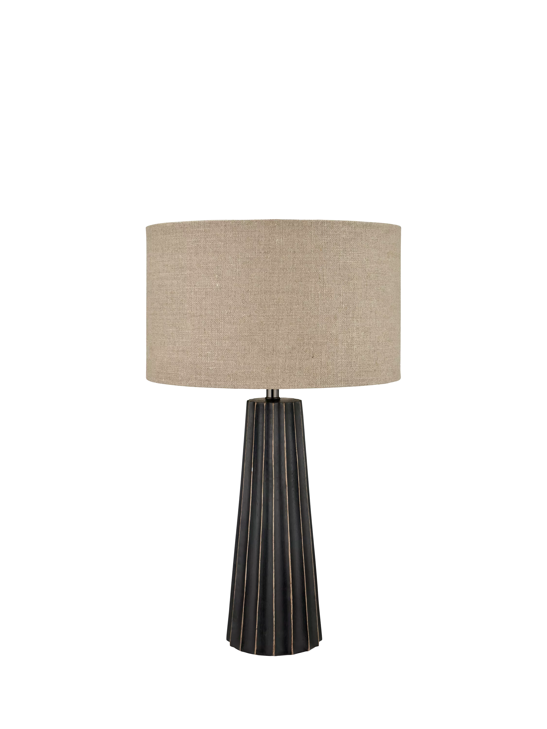 This modern mango wood table lamp features a textured conical design and is paired with a simple yet elegant linen lampshade, which creates contrast. The Draydon table lamp makes use of natural wood grain and has a ridged carving design to add texture. Made in India, this bold contemporary piece will suit a range of interior styles from Luxe Industrial to Boutique Hotel designs.