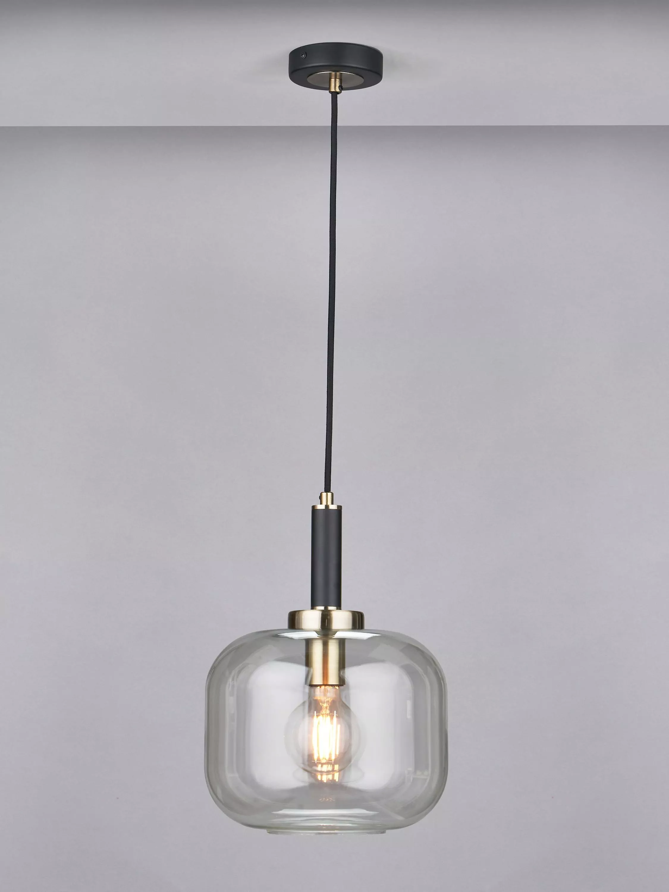 The Florence pendant is contemporary in style with classic undertones. Incorporating clean lines with contrasting brass detailing and black metalware. The square oval-shaped clear glass allows the light to shine, a welcome addition to a modern interior.