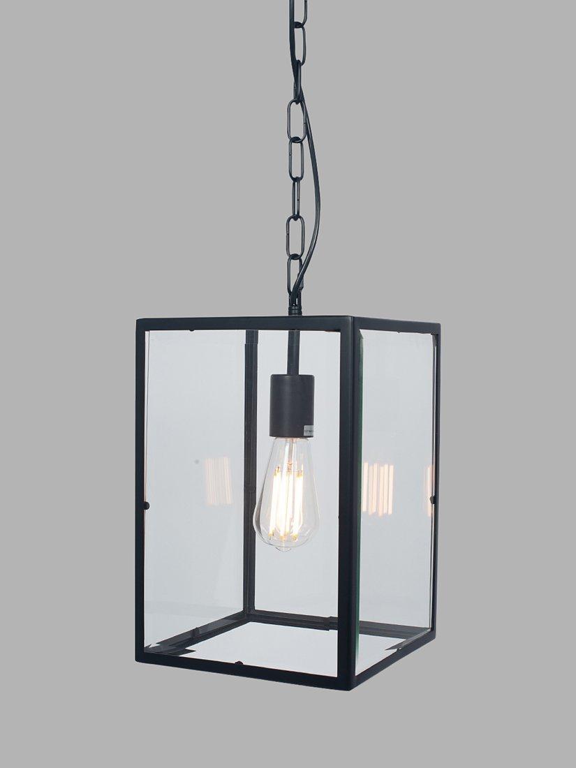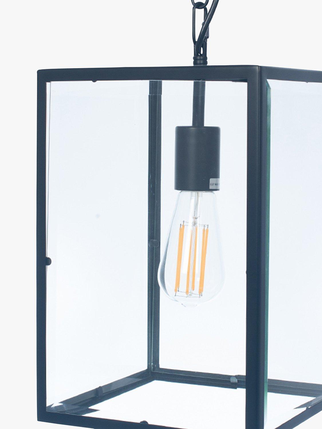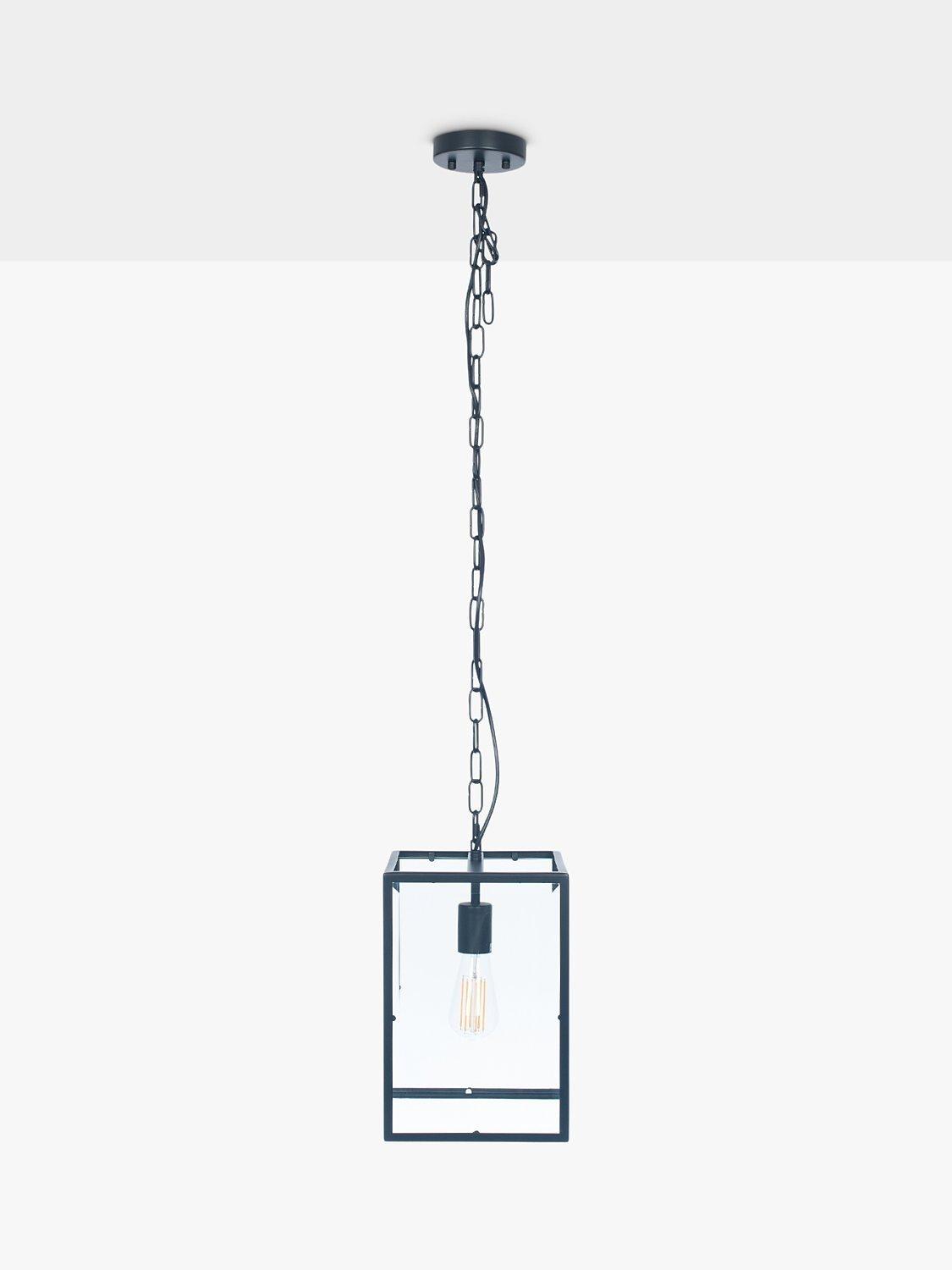 This pendant is made with clear, bevelled glass panels and a metal frame in either a matt or polished finish. Simple, stylish and height-adjustable, it accommodates a single bulbholder. Try an LED bulb that has a decorative filament for an eye-catching and modern-industrial look.