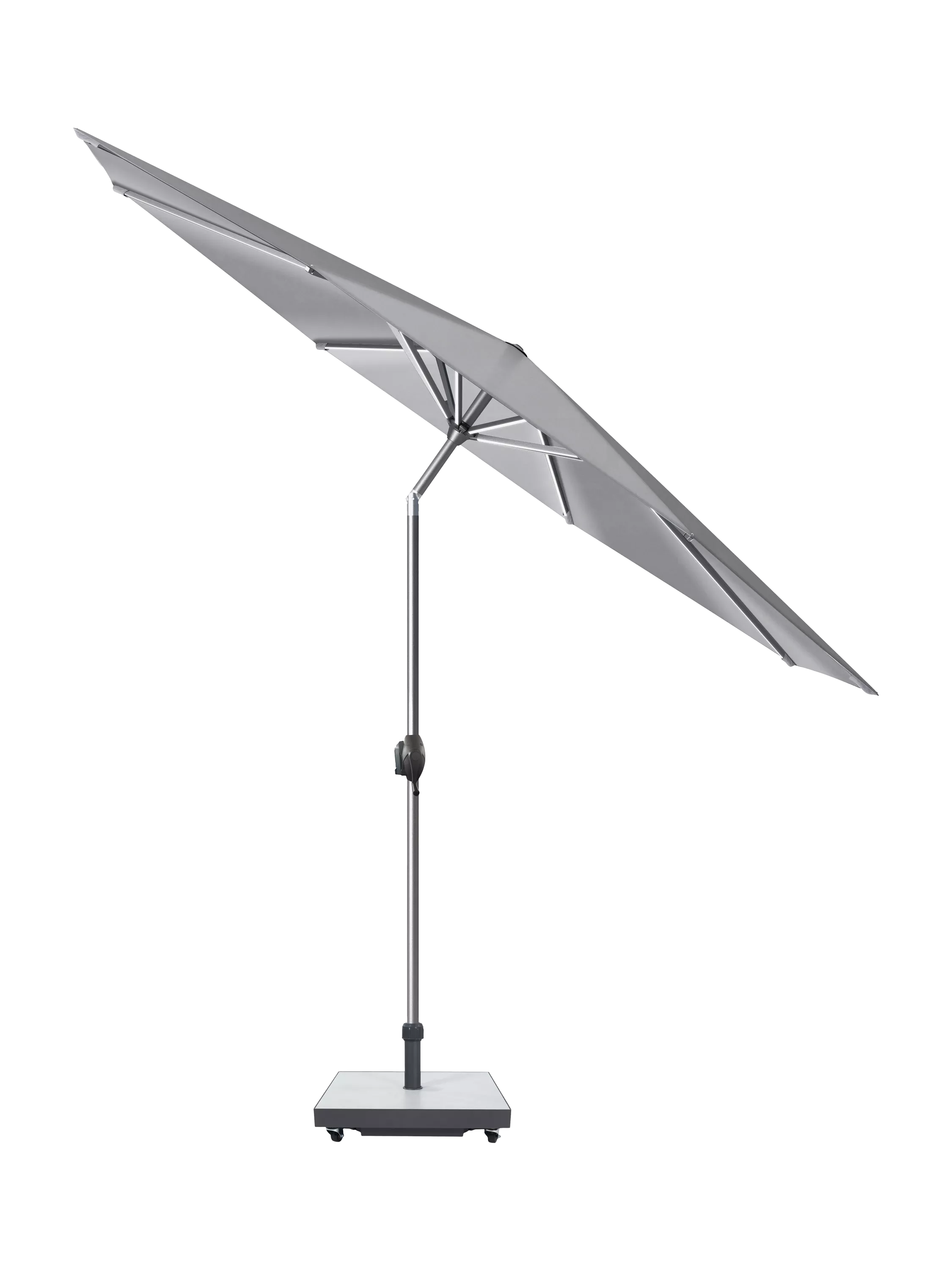 PacificGlow Defender Round Centre Pole LED Light Parasol & Base with Cover, 3m, Light Grey