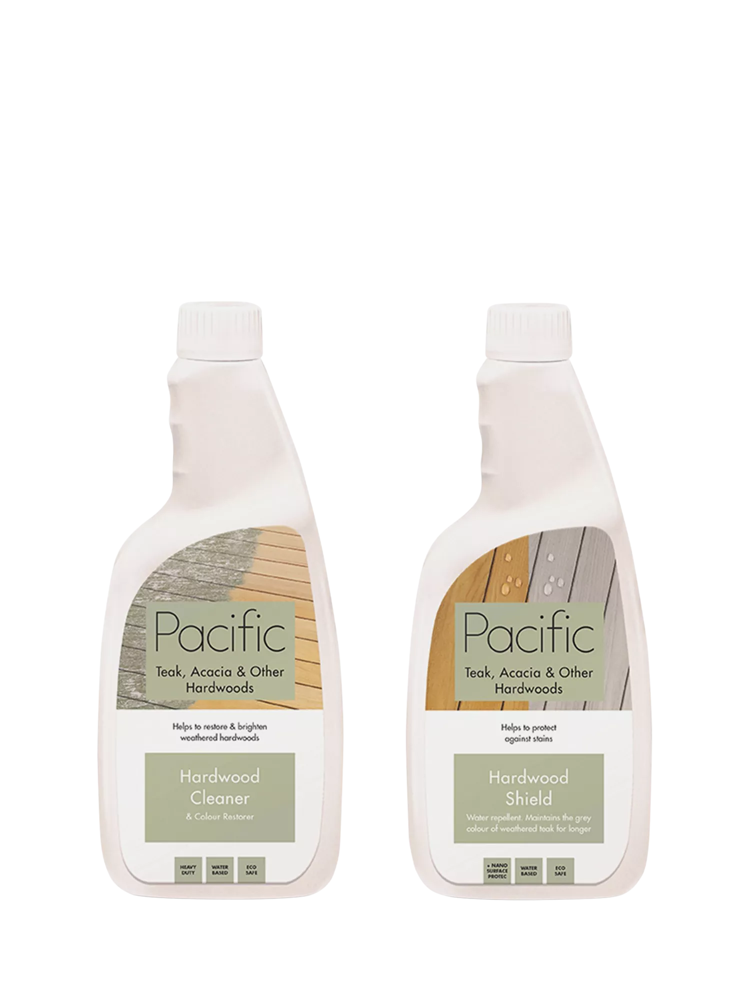 Use Pacific's Hardwood Cleaner to clean and restore discoloured hardwood in need of some TLC. This water-based formula is not only a high-concentration Hardwood Cleaner, but also contains brightening ingredients to bring back the original wood colour to your garden furniture.