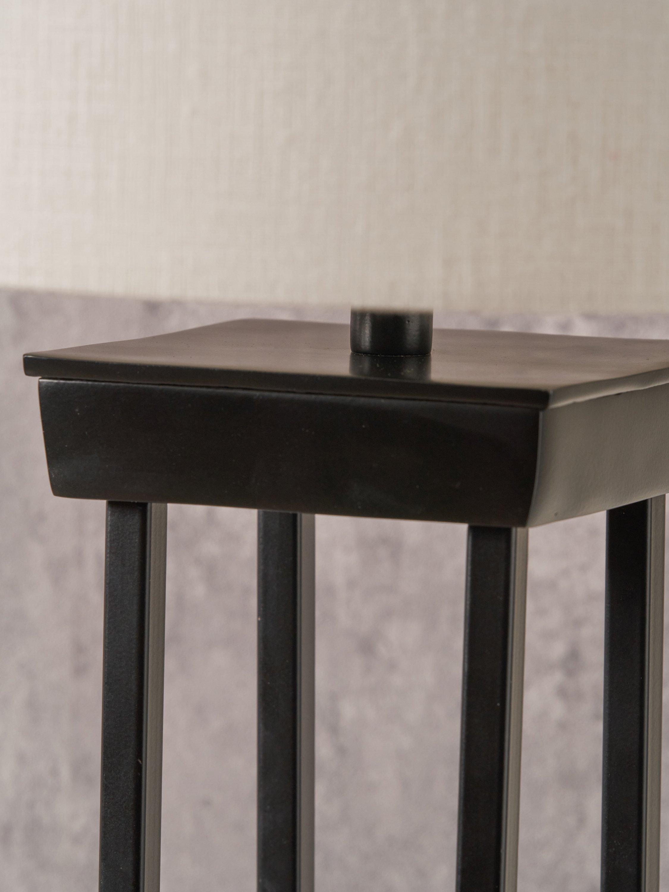 Channel the glamorous hotel vibe with this gorgeous metal column floor lamp finished with a square, compact foot. Grand in stature, this floor lamp is ideal for placing in a reading corner and creating ambience in your home. The lamp base has a footswitch for easy access. It's paired with a modern, self-lined 45cm cylinder linen shade with a tactile textured design.