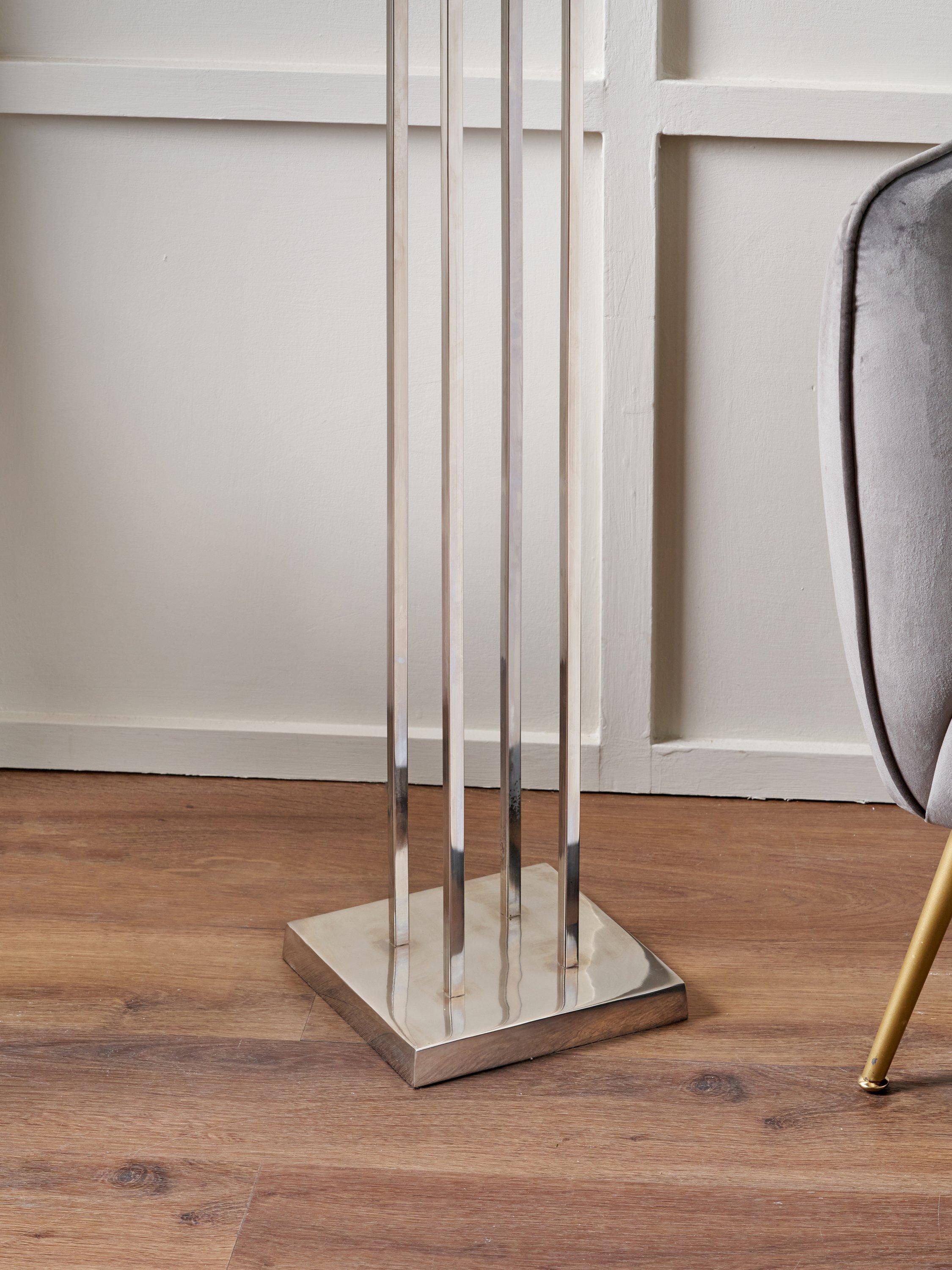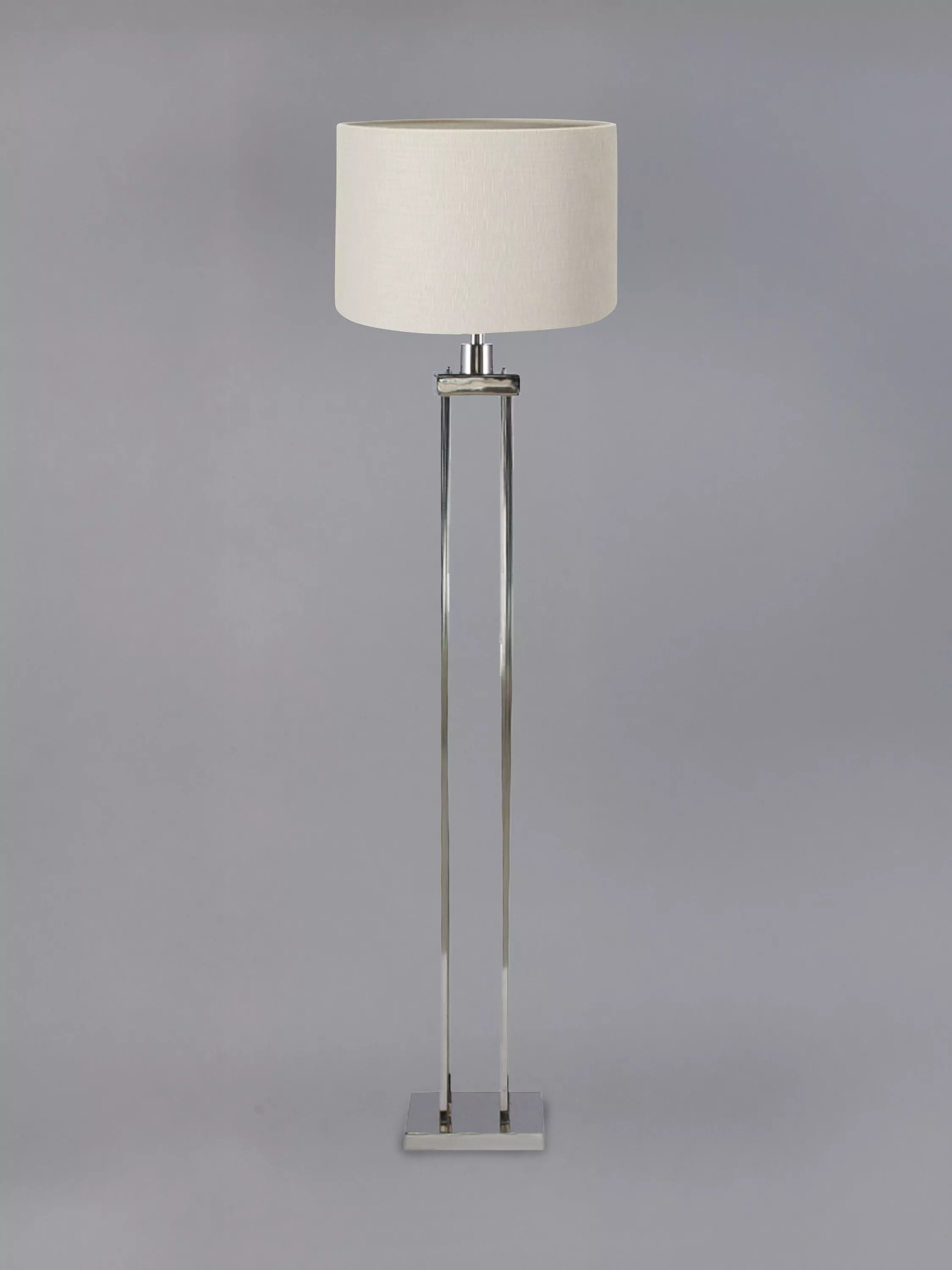 Channel the glamorous hotel vibe with this gorgeous metal column floor lamp finished with a square, compact foot. Grand in stature, this floor lamp is ideal for placing in a reading corner and creating ambience in your home. The lamp base has a footswitch for easy access. It's paired with a modern, self-lined 45cm cylinder linen shade with a tactile textured design.