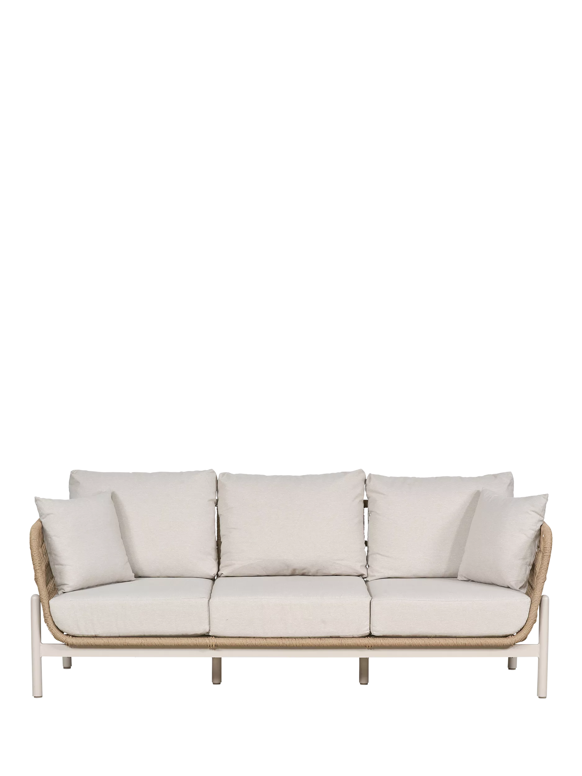 The Martic is a contemporary design to give your garden a modern update with its synthetic rope-like weave. This three-seater garden sofa has a lightweight yet robust powder-coated aluminium frame in a latte colour.