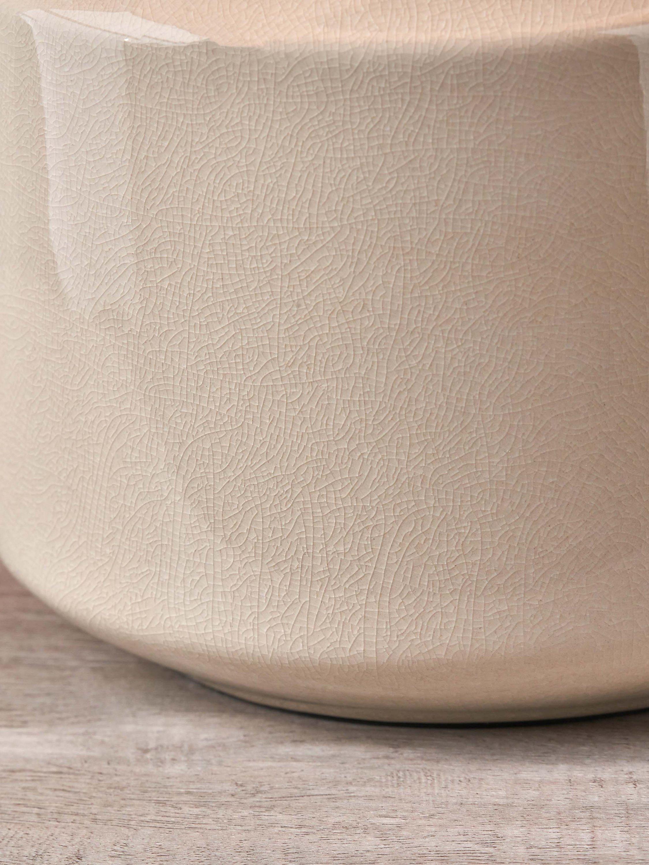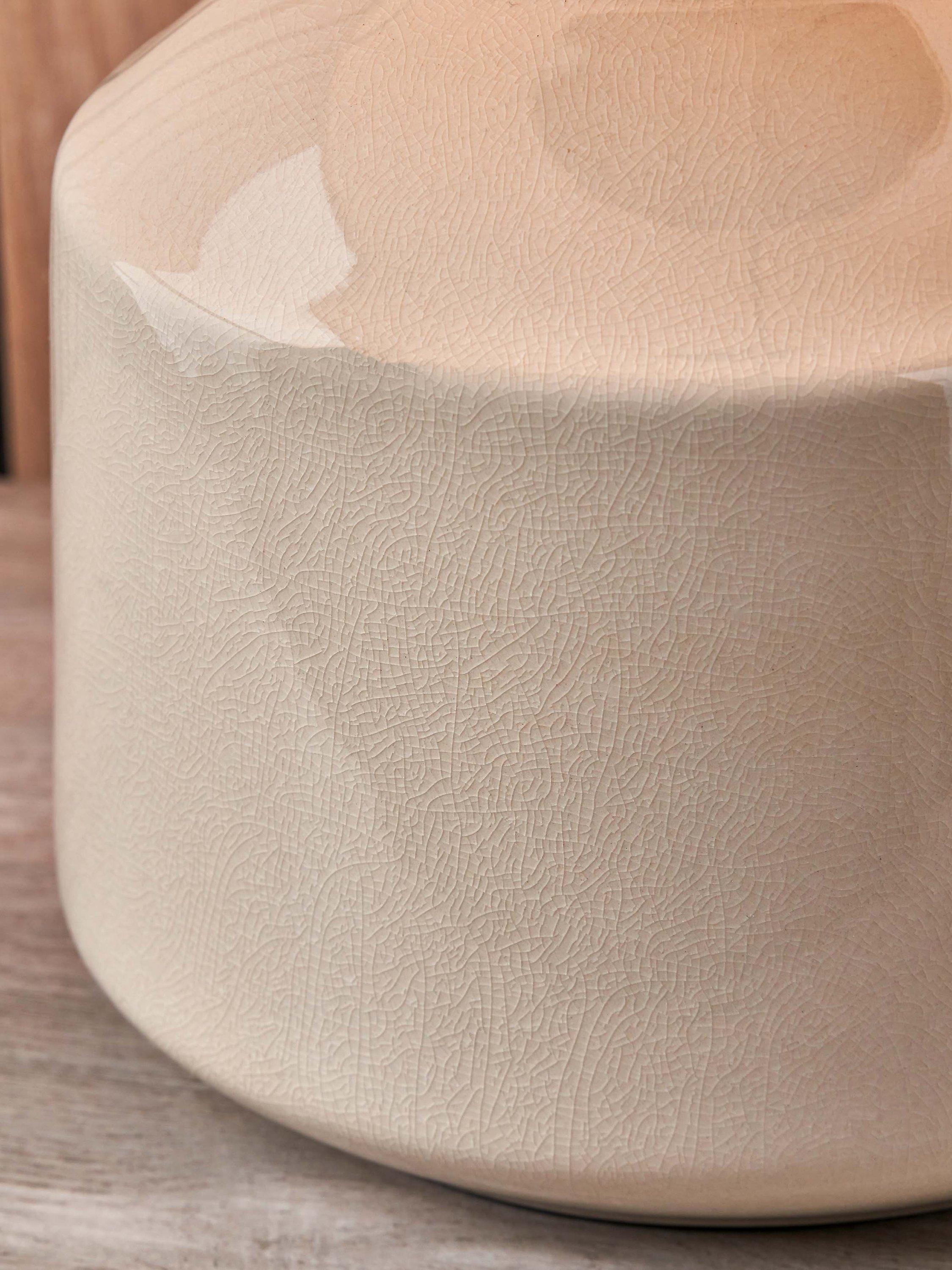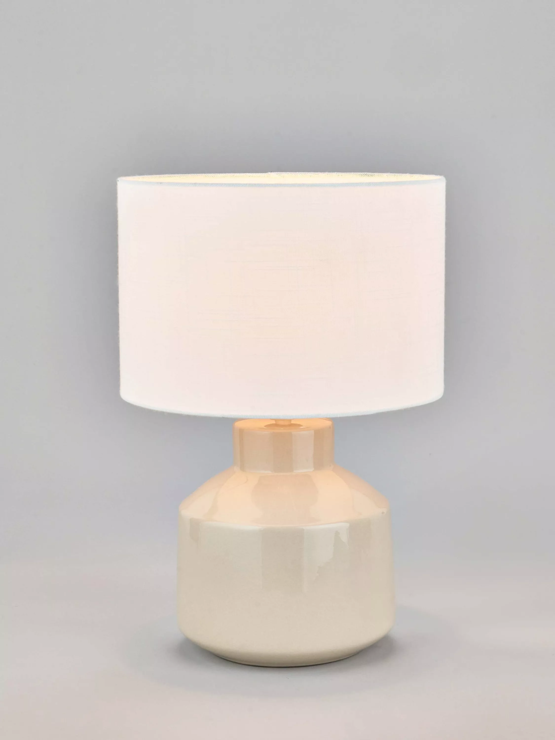Scandi styling at its best, the Nora ceramic table lamp has a beautiful, gloss base with a subtle kiln effect crackle glaze. Topped with a lined, open weave lampshade that allows light to filter through.