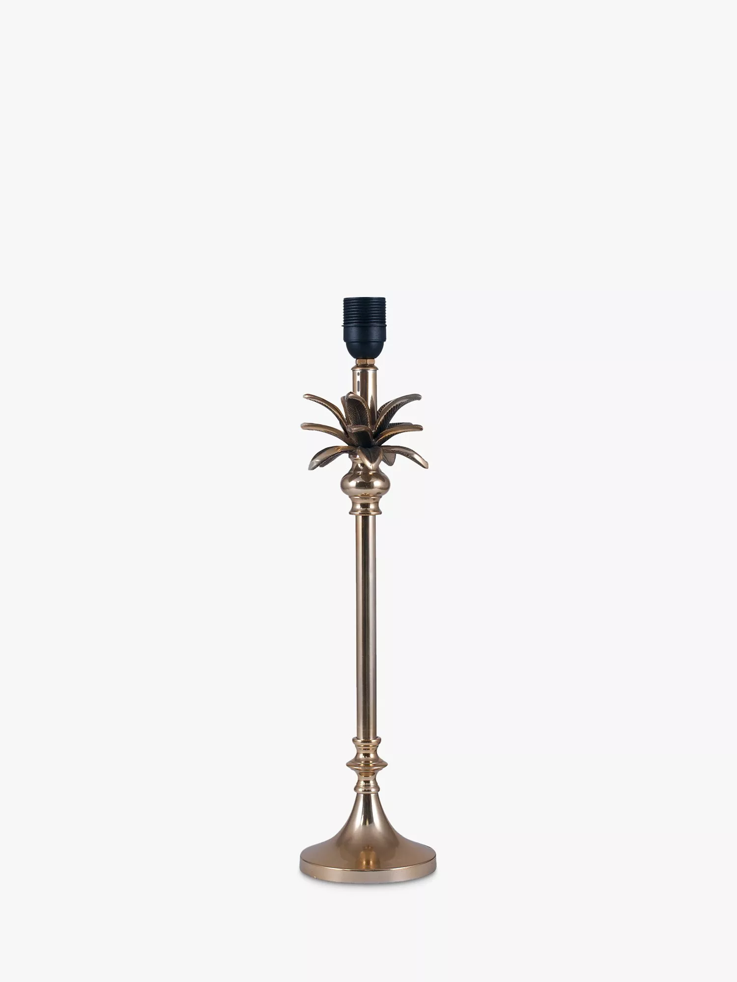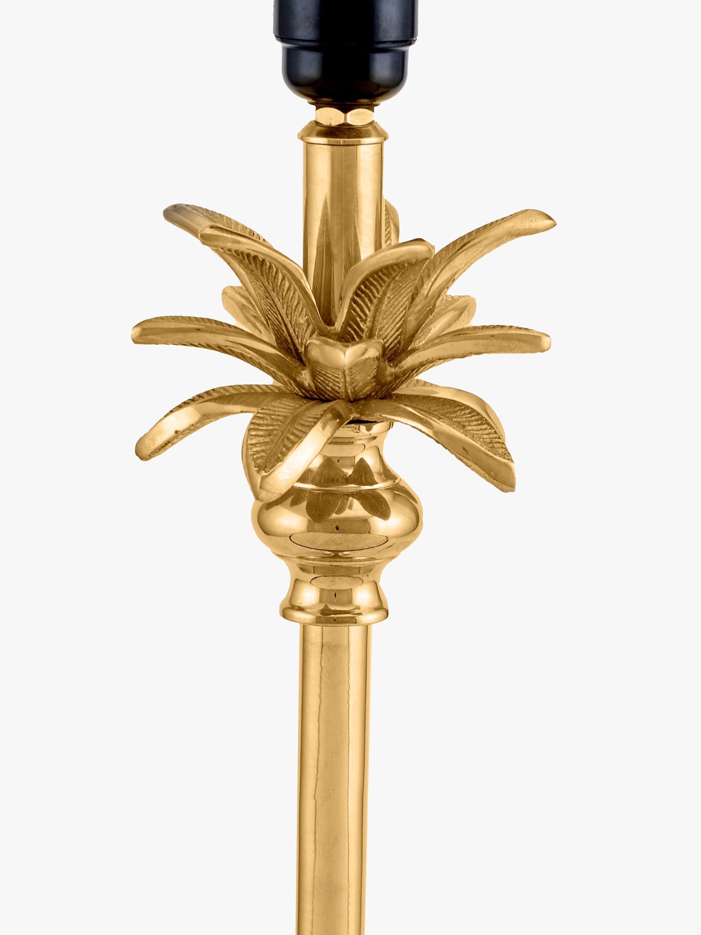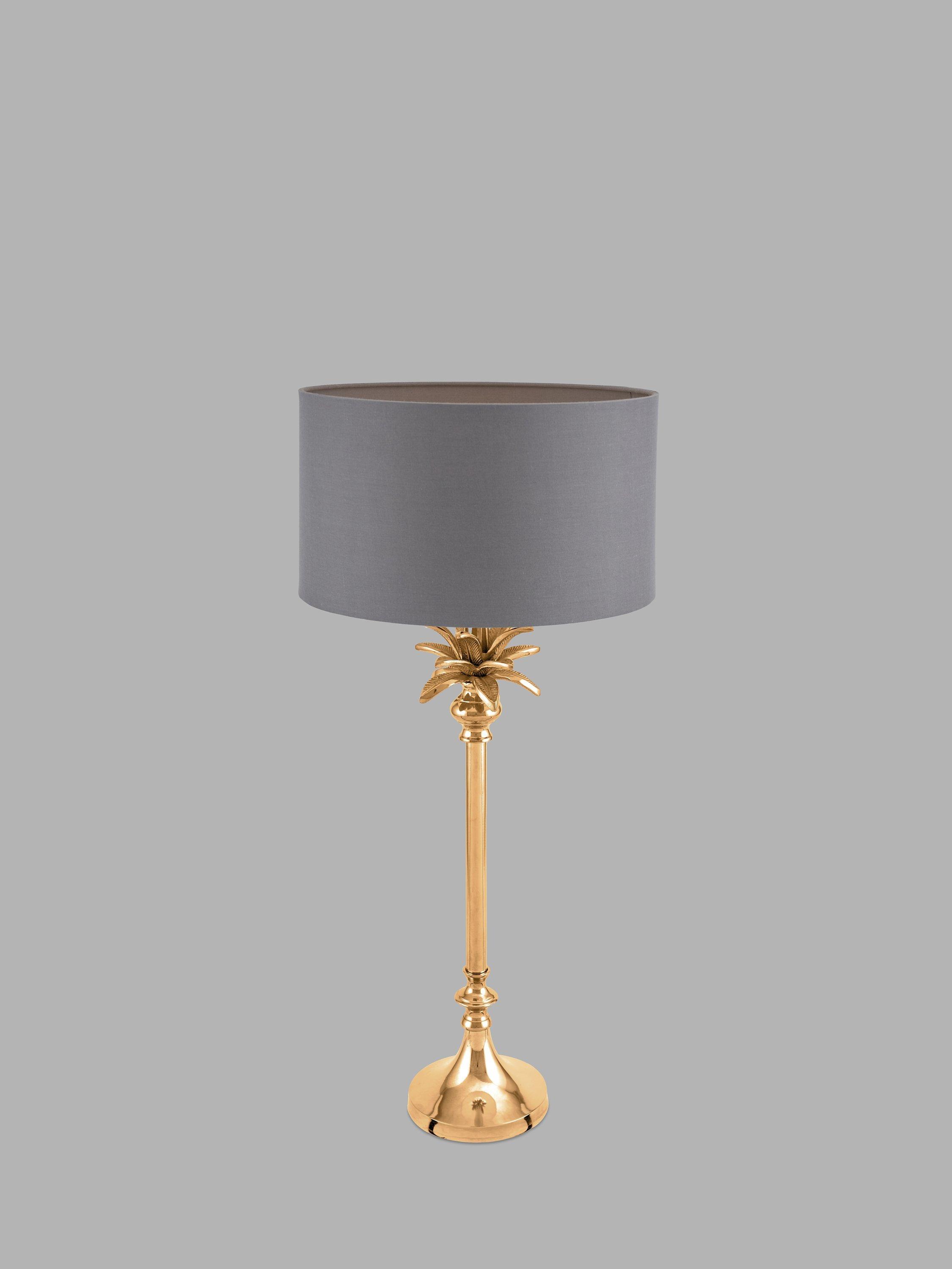 This tall lamp base has a playful edge as it incorporates a palm tree design at the top. It's made from robust metal in a polished finish. Style it to your taste with a lampshade size of 30cm diameter.