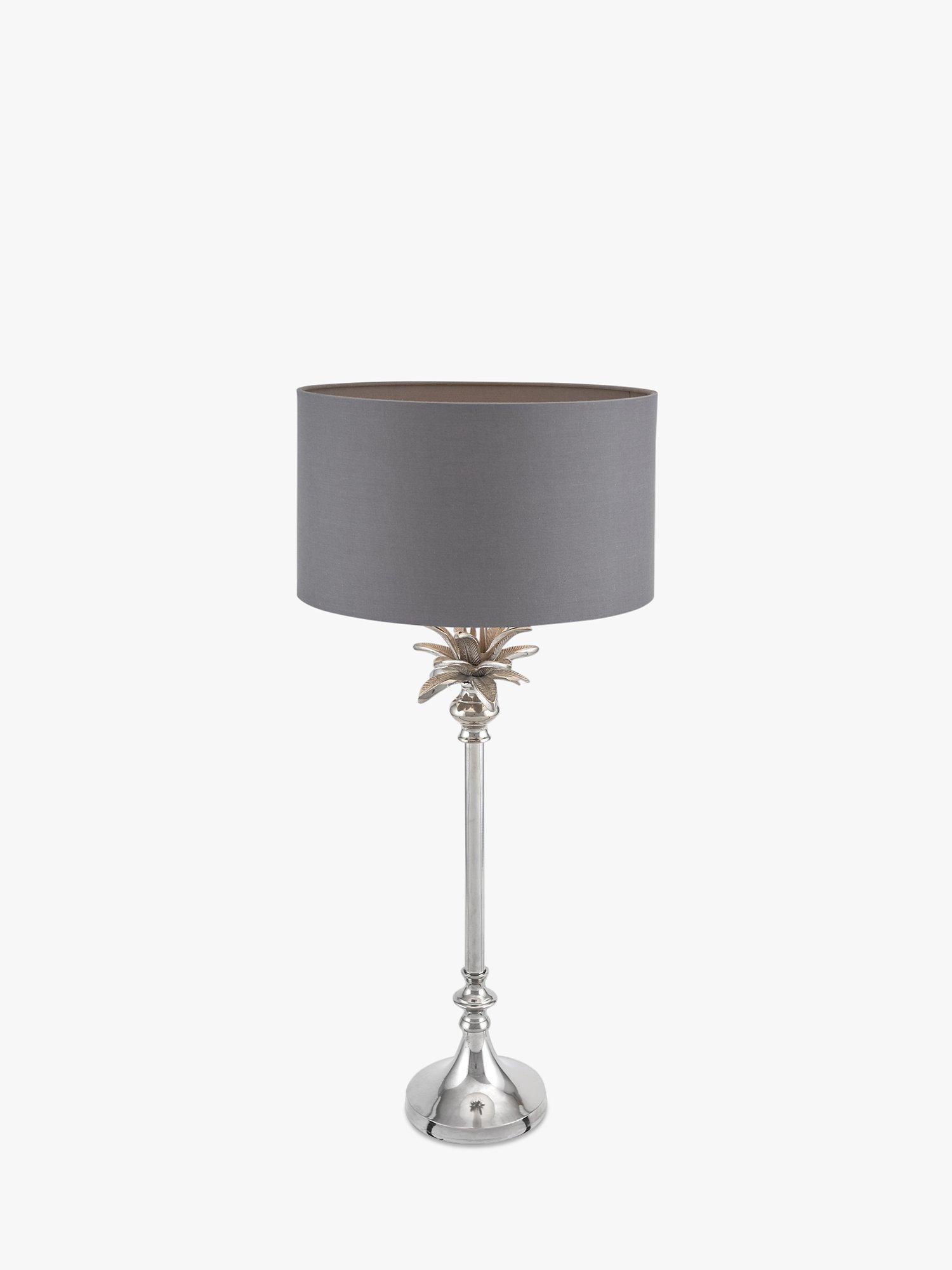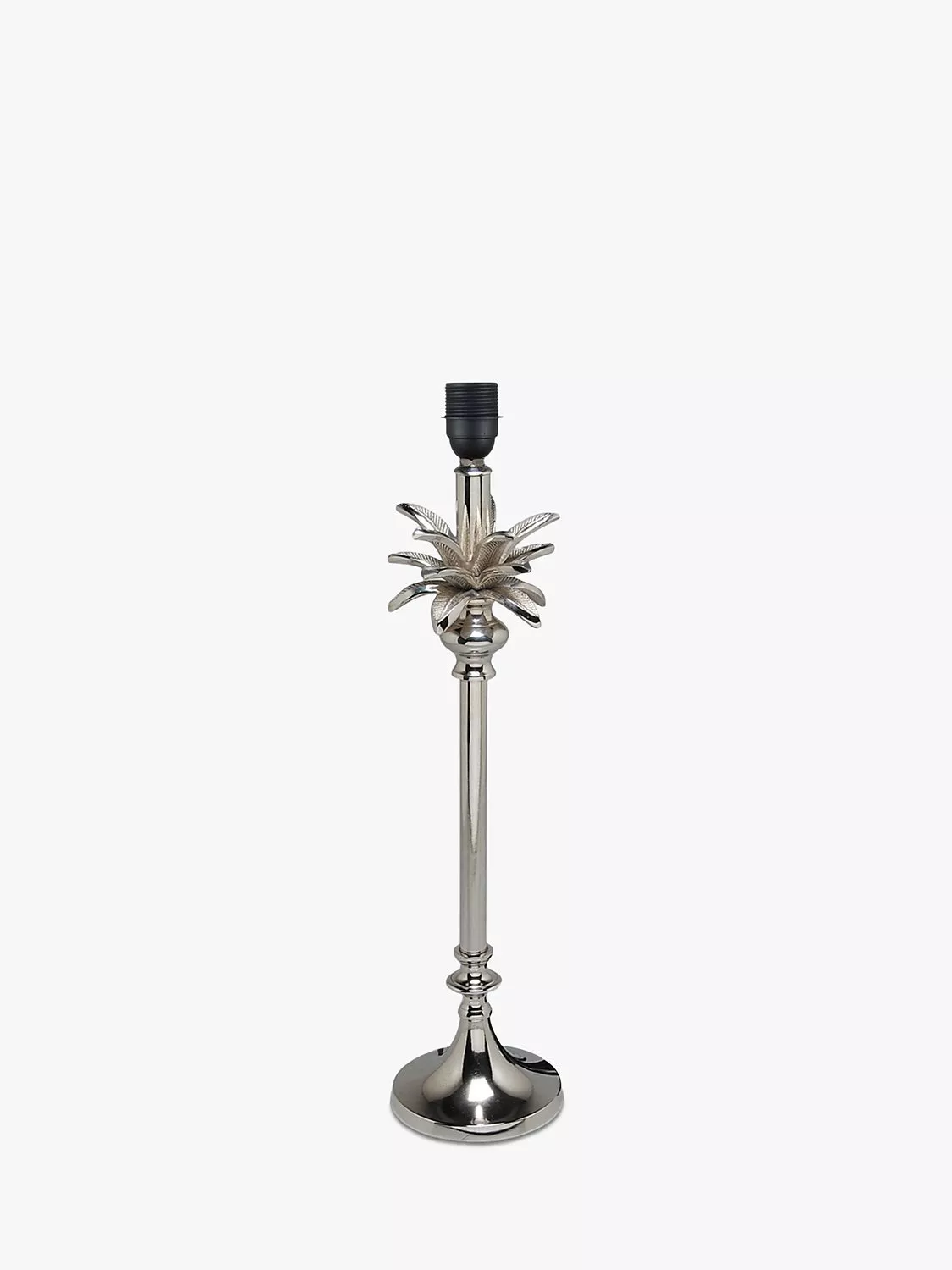 This tall lamp base has a playful edge as it incorporates a palm tree design at the top. It's made from robust metal in a polished finish. Style it to your taste with a lampshade size of 30cm diameter.