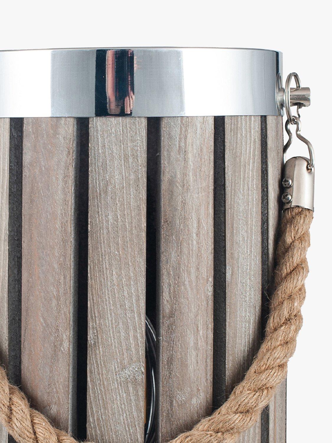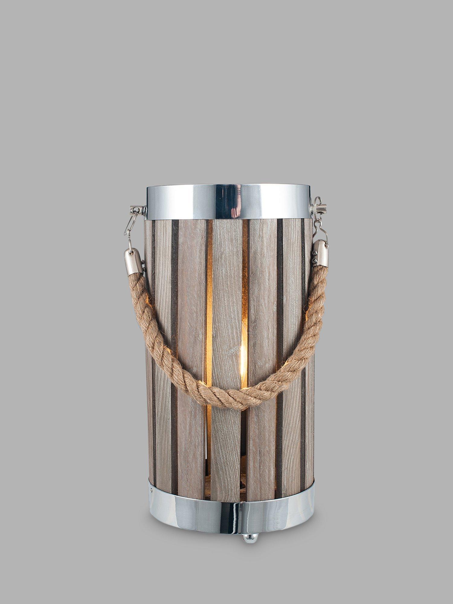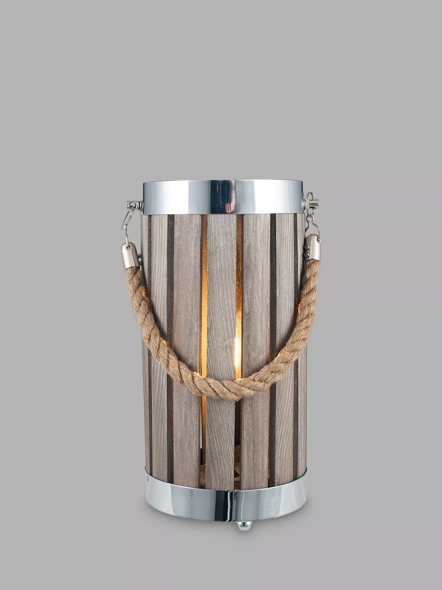 This table lamp will introduce a soft, coastal accent to your space. It's made from wood with a slatted design that diffuses the light and enhances an ambient glow. Easy to style in both living spaces and bedrooms. Complete with a rope handle that enhances its rustic lantern aesthetic.