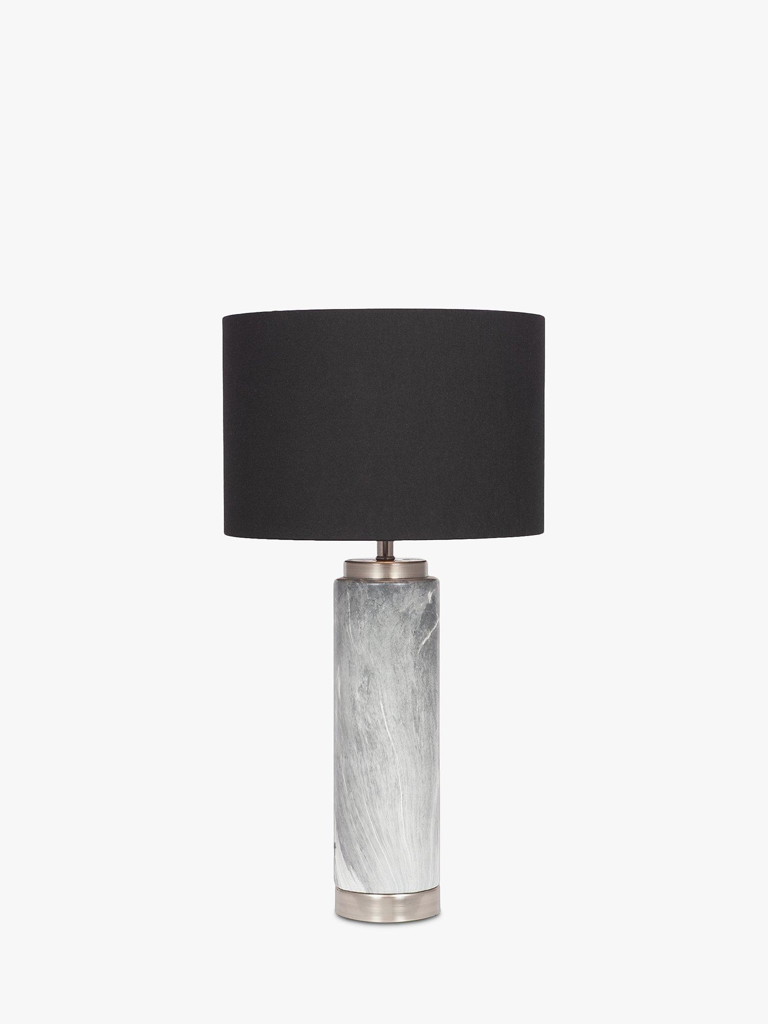 The base of this table lamp is made from sturdy ceramic but finished with a marble-effect design. With added brushed metal details and a fabric lampshade, it's modern, smart and easy-to-style around your home. This table lamp is taller in height, so it's great for styling on console tables.