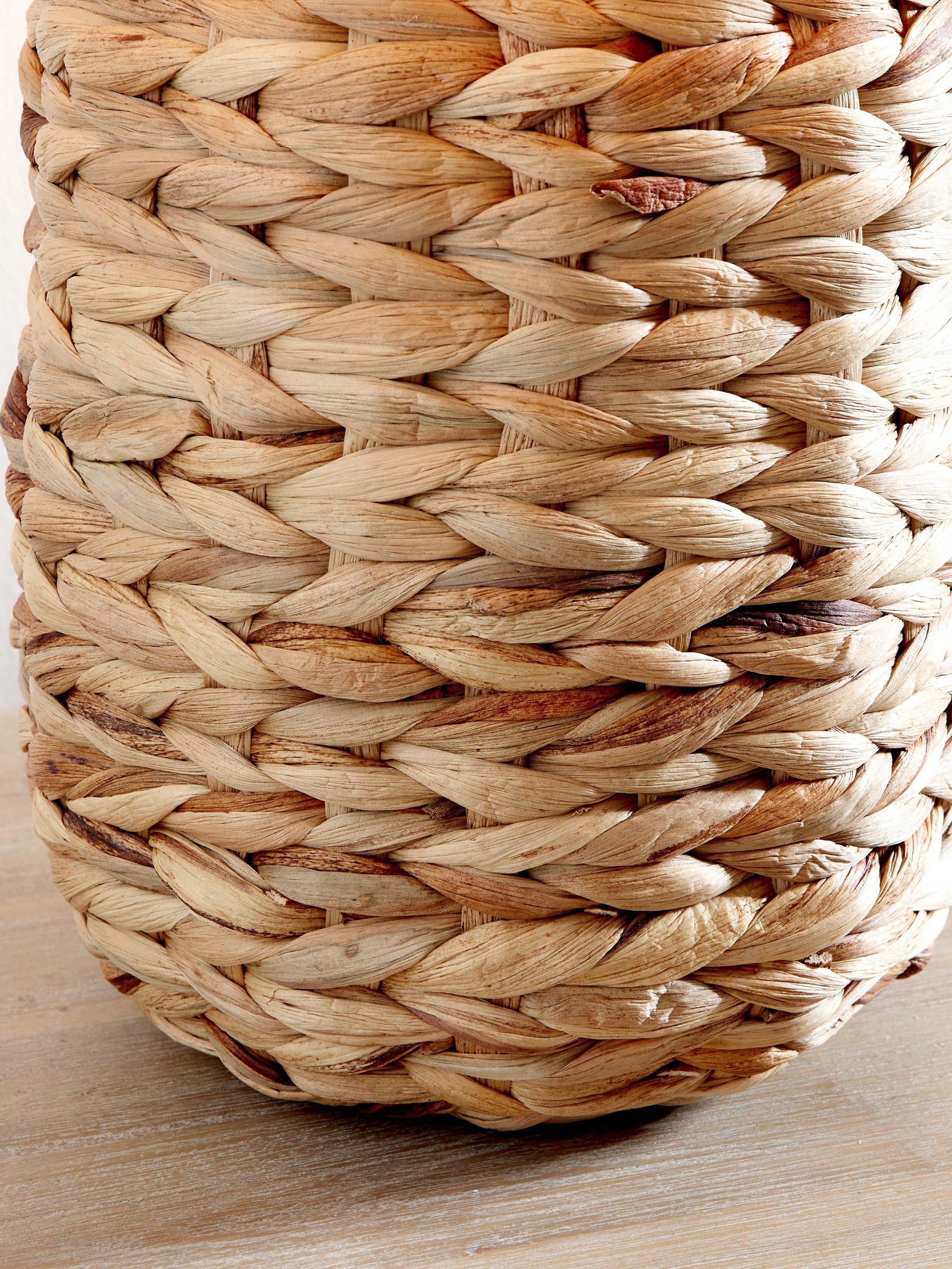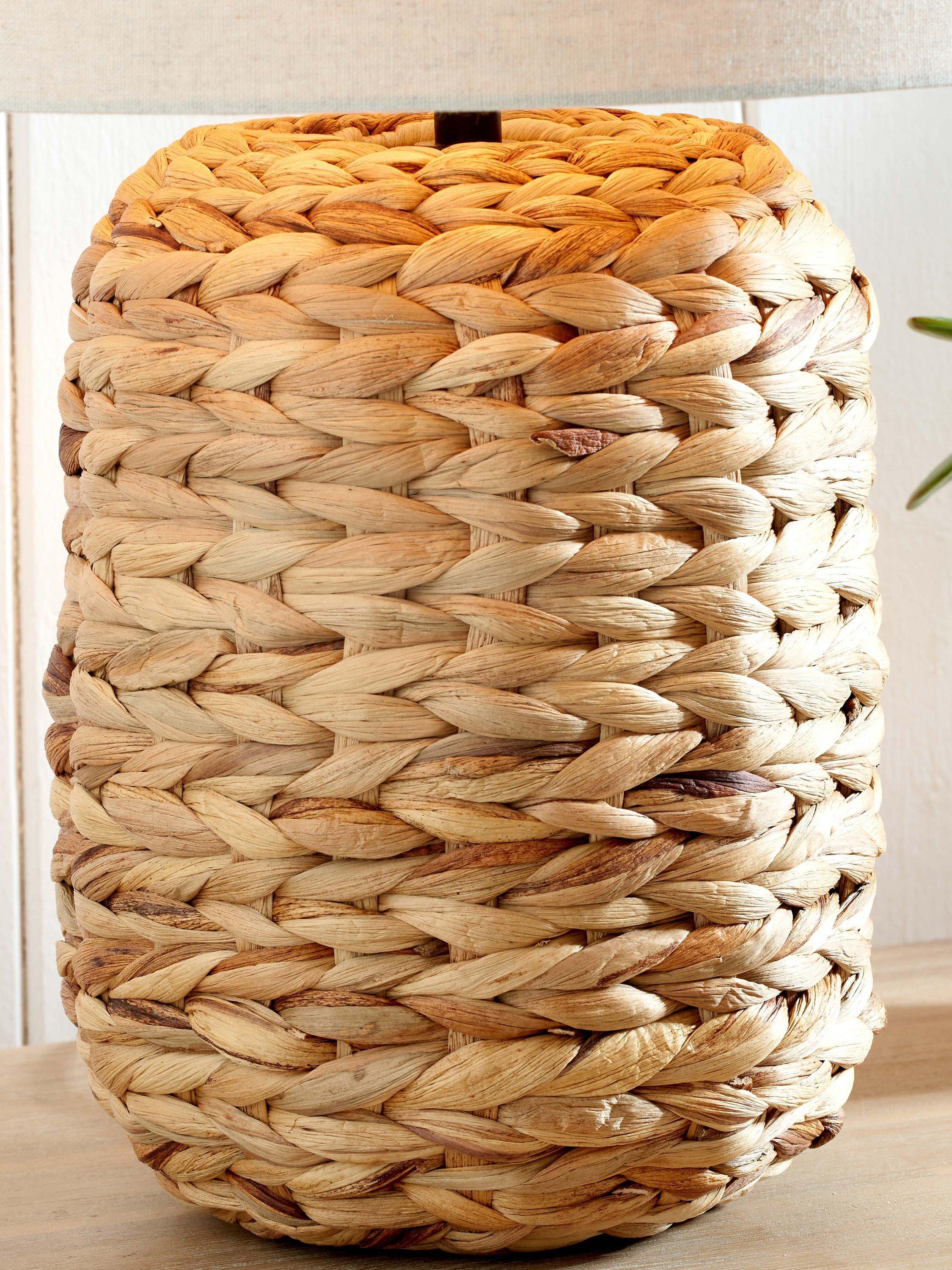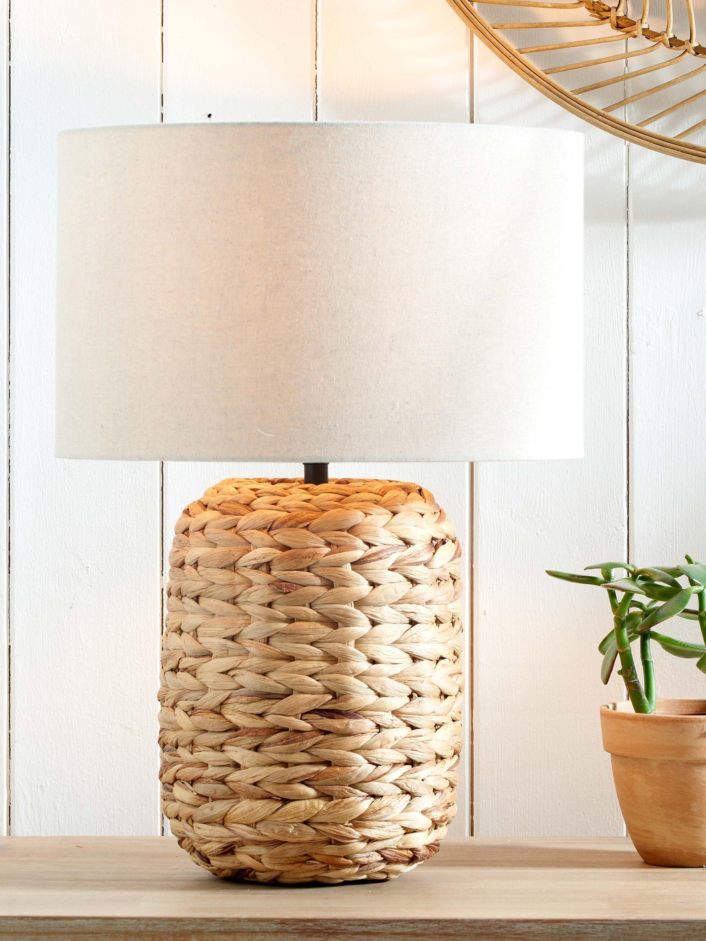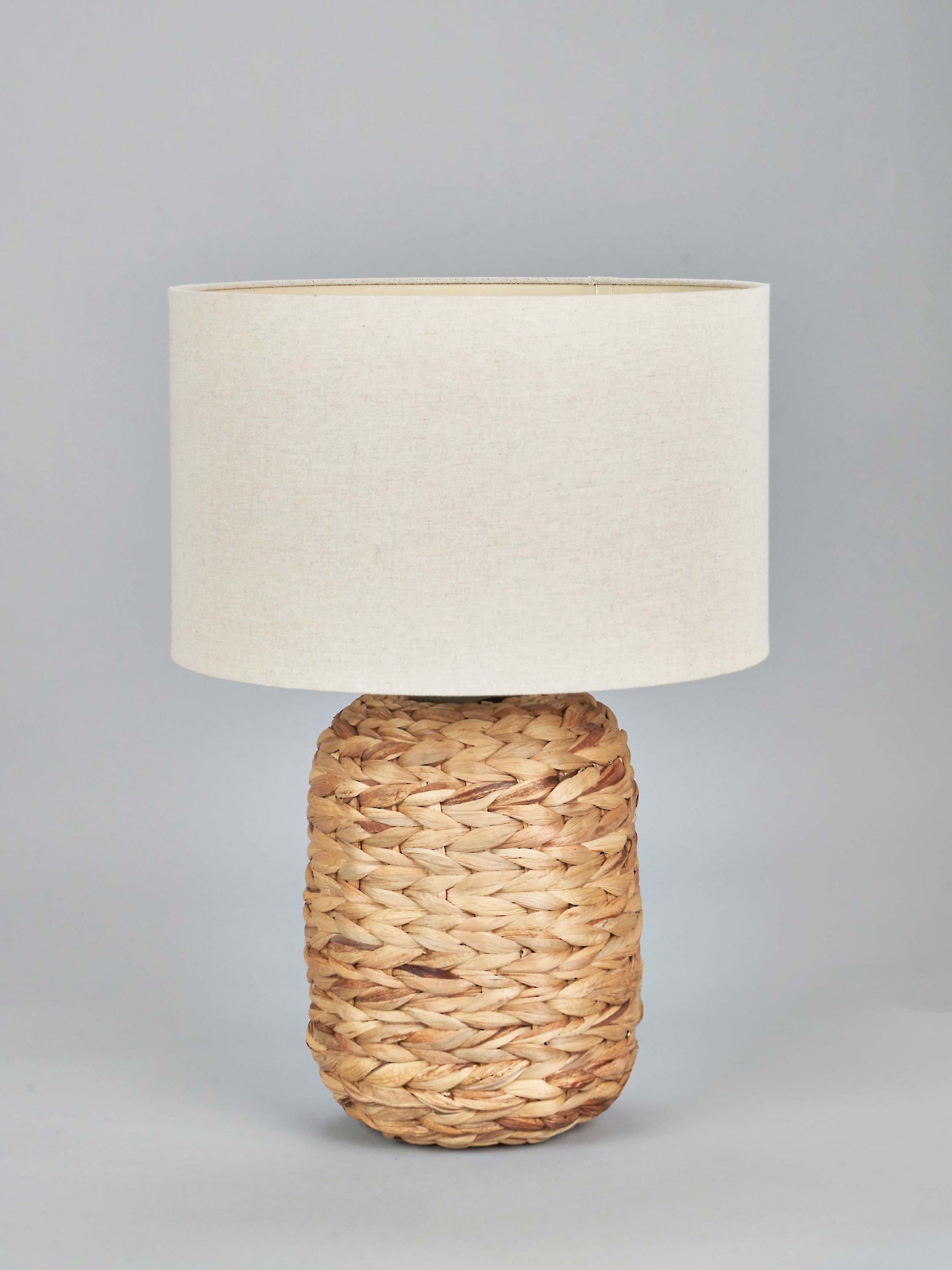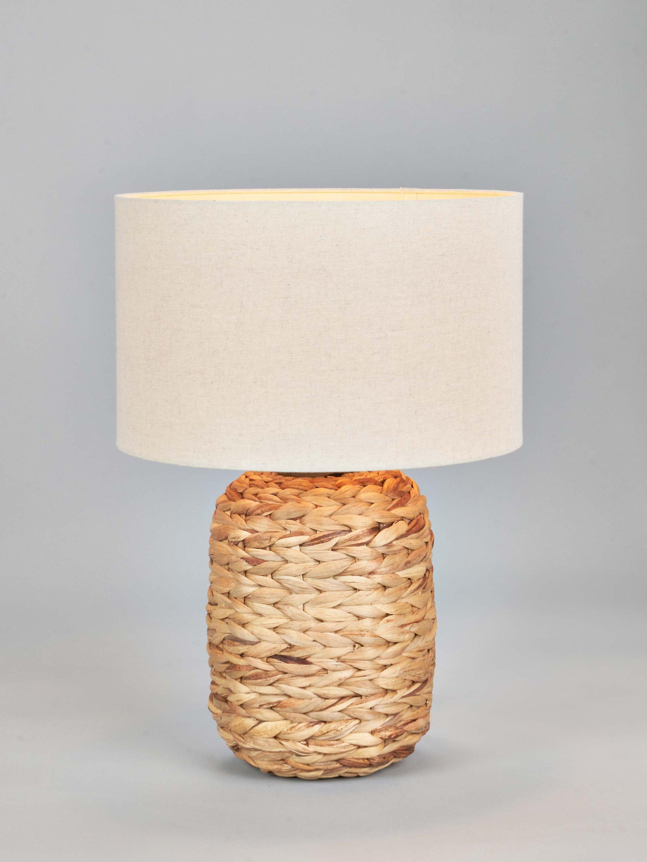 This effortlessly stylish Zadi table lamp is crafted from hand woven water hyacinth around a wire frame, in a beautiful plaited design. This well-proportioned table lamp is finished with a a cylinder lampshade that allows light to filter through.