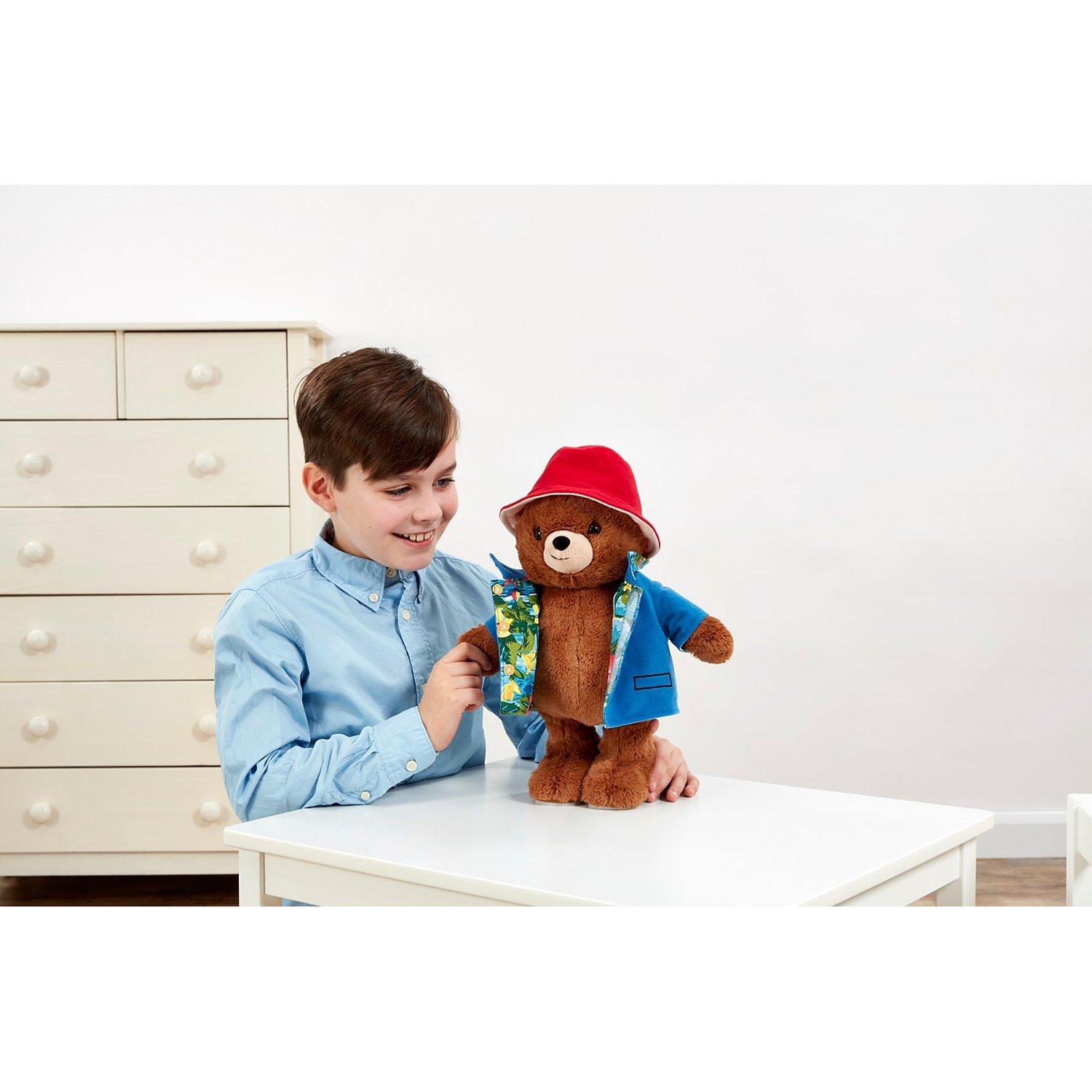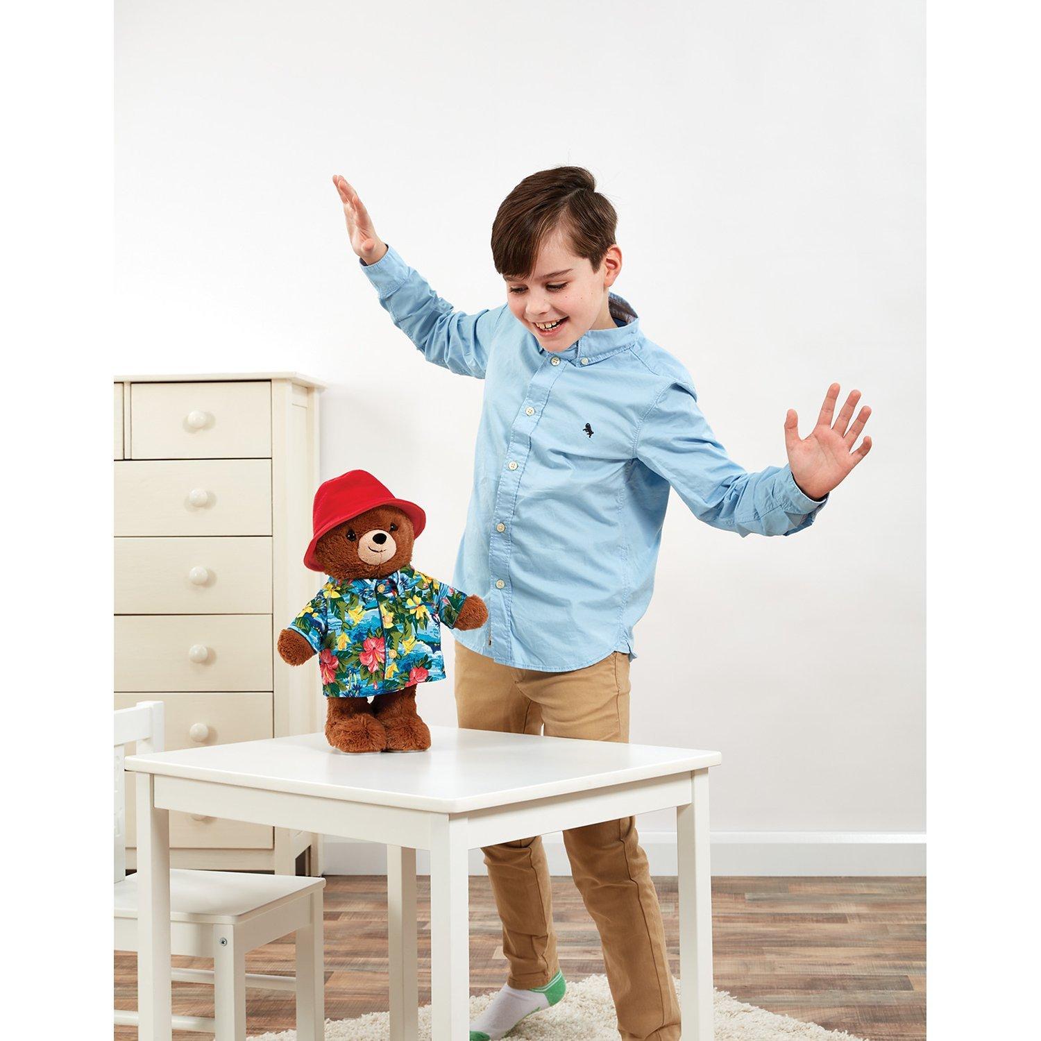 Standing 35cm tall and boasting his trademark red hat, Paddington is wearing a brightly coloured reversible calypso-style shirt. Turn the shirt around and now he's wearing his traditional blue coat! As well as loving to dance, Paddington says five different phrases that include 'Hello my name is Paddington' and 'Marmalade sandwiches are my favourite!'