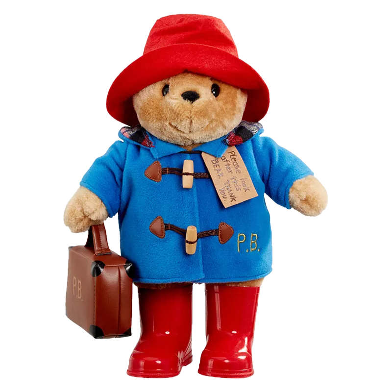 All the way from deepest, darkest Peru, this plush Paddington Bear needs a loving home. Dressed in his trademark blue duffle coat, with real toggles, a battered red felt bush hat and shiny red wellington boots.