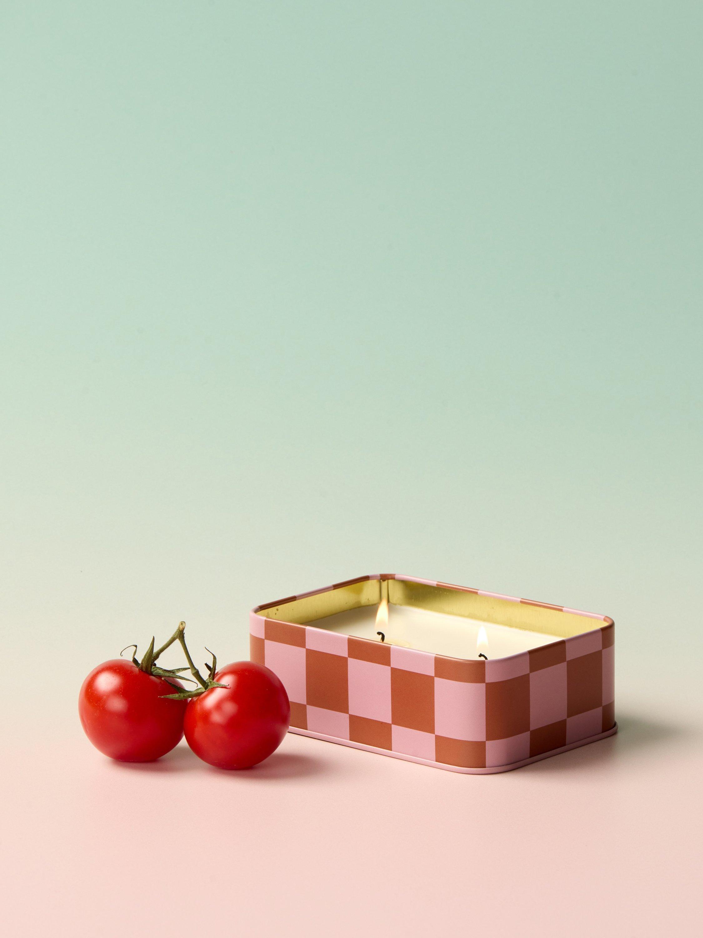 A dopo! Translates to See ya Later! This friendly, on-the-go attitude inspired this whimsical collection that alludes to summertime travels across the Mediterranean and beyond. Adding to our collection, these glossy patterned tin candles with whimsical labels have been filled with bold fragrances to match the imaginative design and ignite your senses. Remove the label and you have a mini tray and trinket dish after the candle has burned!