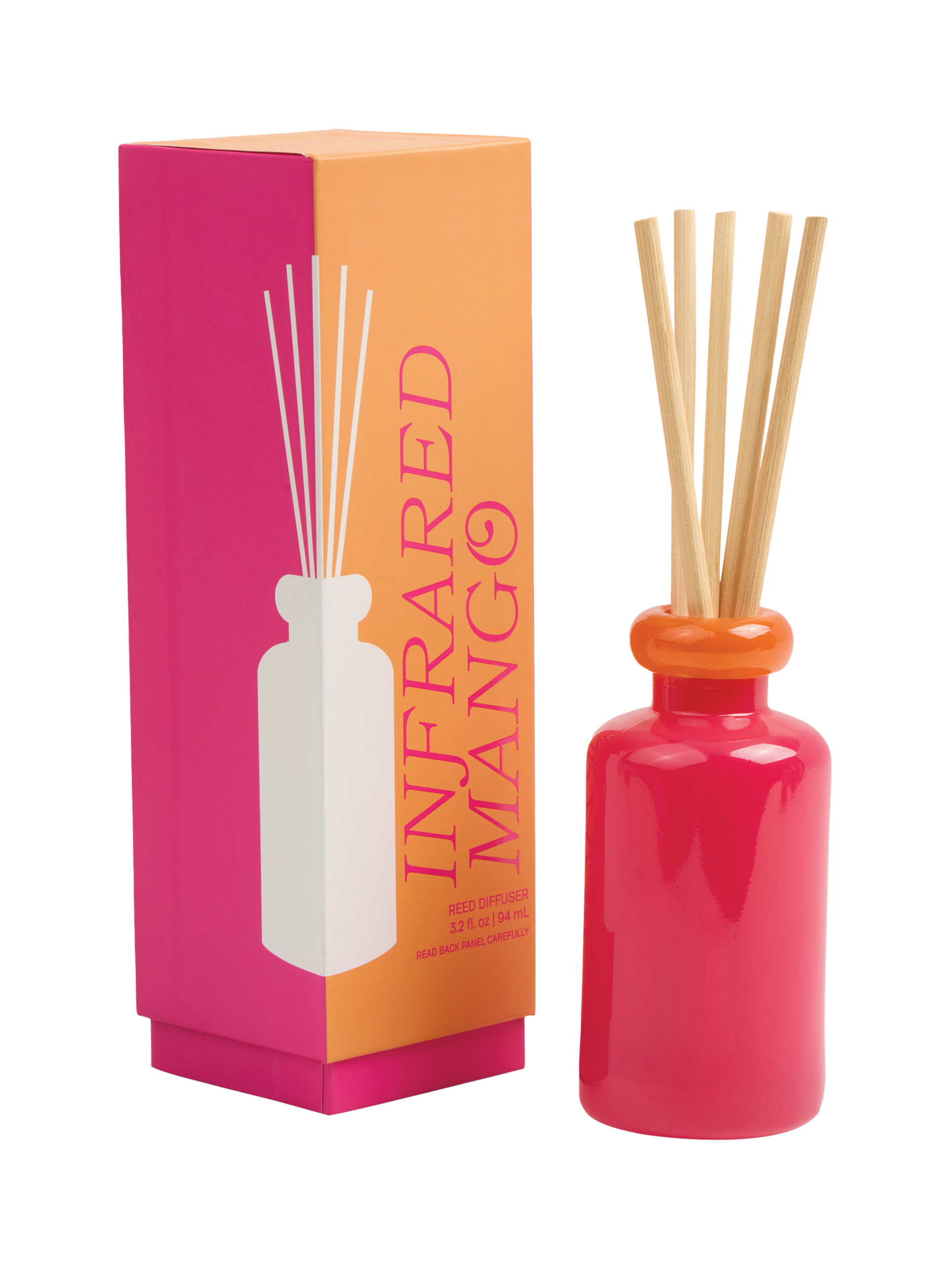 These striking glass diffusers feature two juicy colours to add a pop of colour to your home. Each glossy glass is filled with an irresistible fragrance to suit the colour. Diffusers come packaged with natural reeds in a bold sliding box.