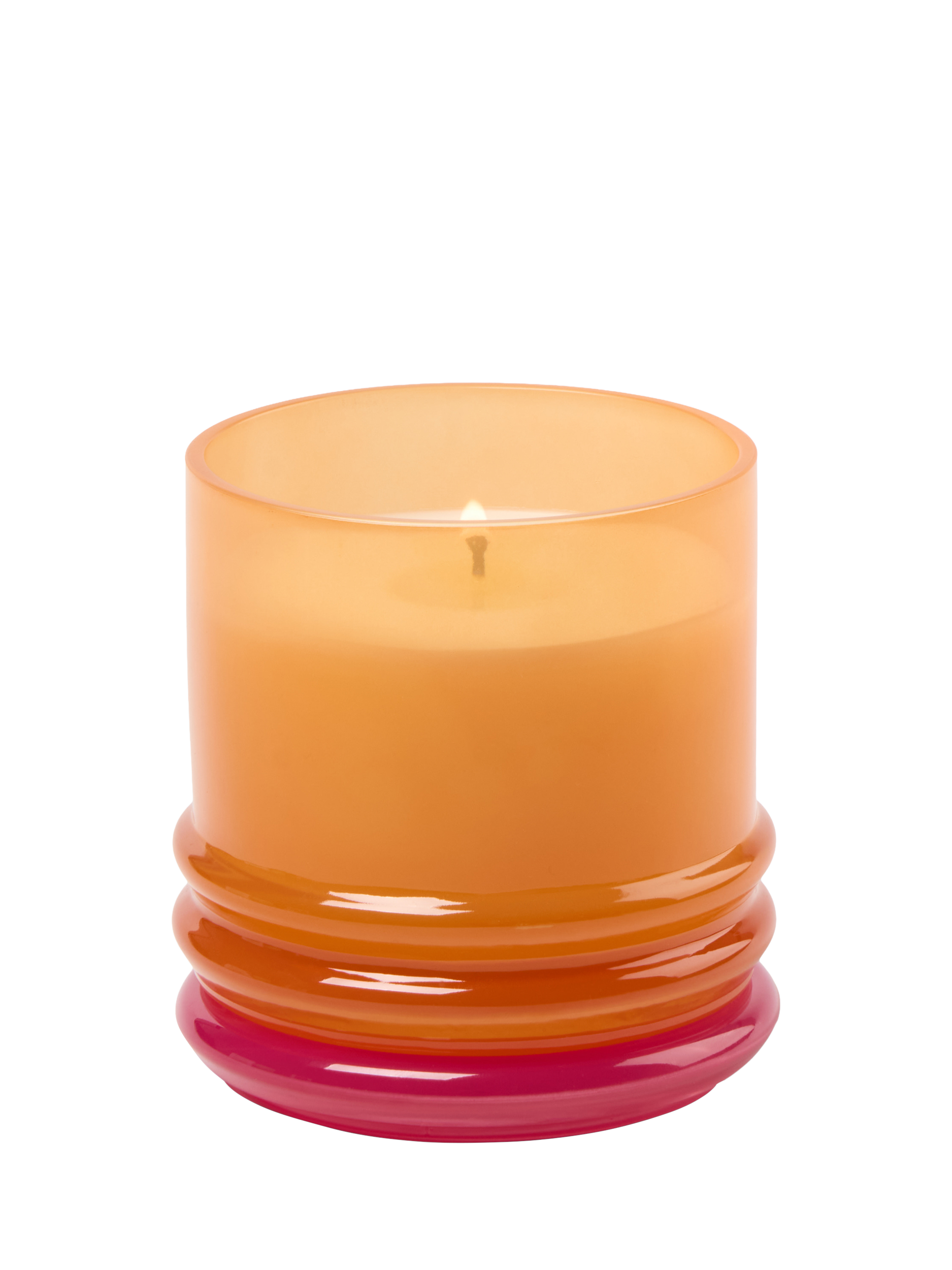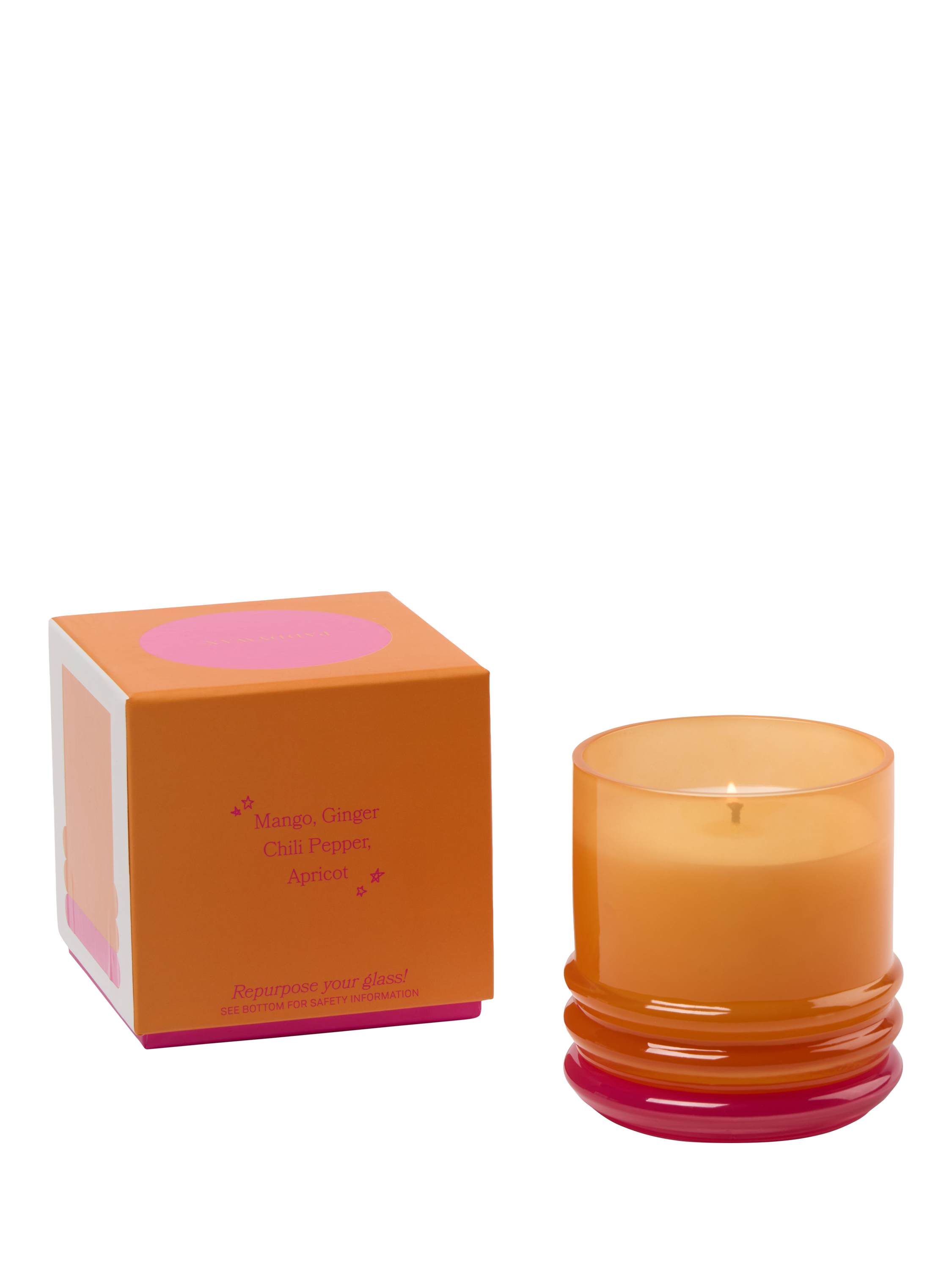 These striking glass candles feature two juicy colours to add a pop of colour to your home. As a sweet surprise, the candle lid can be placed under the vessel while lit, creating a whole new arrangement. Each glossy glass is filled with an irresistible fragrance to suit the colour. Packaged in bold sliding boxes with glossy accents.
