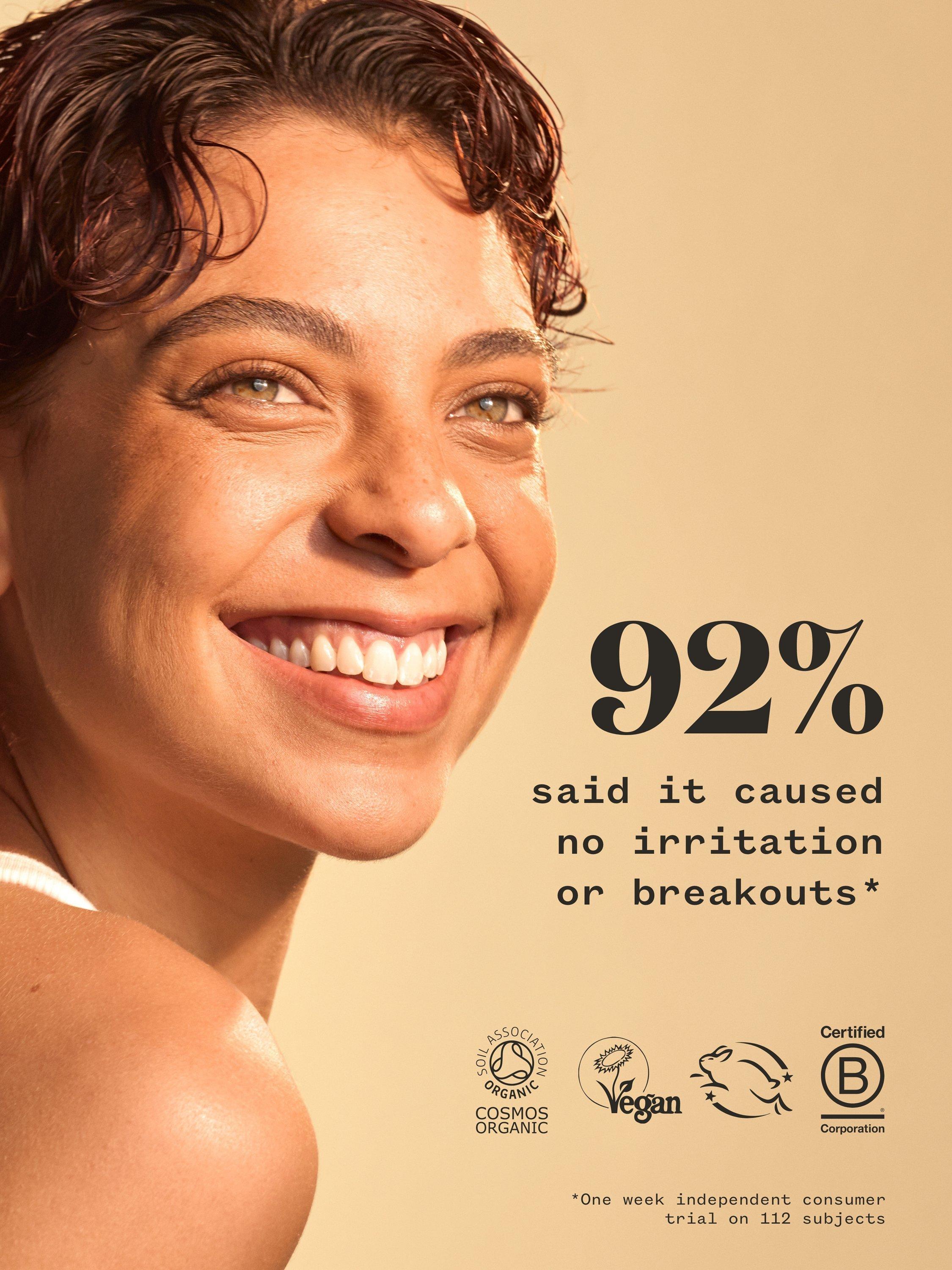 - 92% said it caused no irritation or breakouts