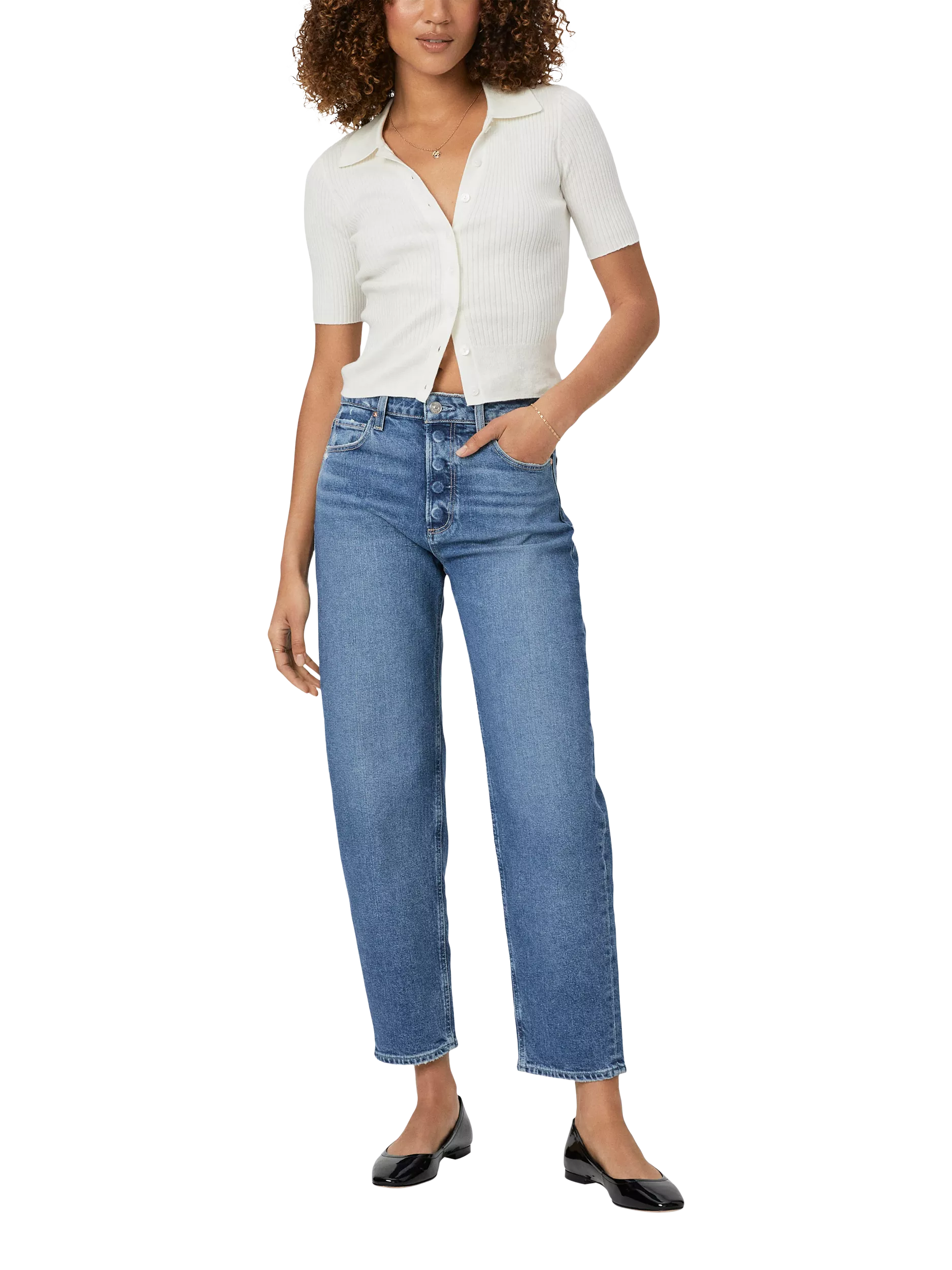 Meet Alexis, a feminine take on the barrel leg while still creating a flattering fit. This high-rise silhouette is crafted from PAIGE VINTAGE denim with true vintage character and a covered button fly. PAIGE VINTAGE takes all of the work out of breaking in your favourite pair of vintage denim jeans. We've combined the comfort of stretch with everything you love about rigid vintage denim to create super soft jeans that feel perfectly lived-in from the very first wear.