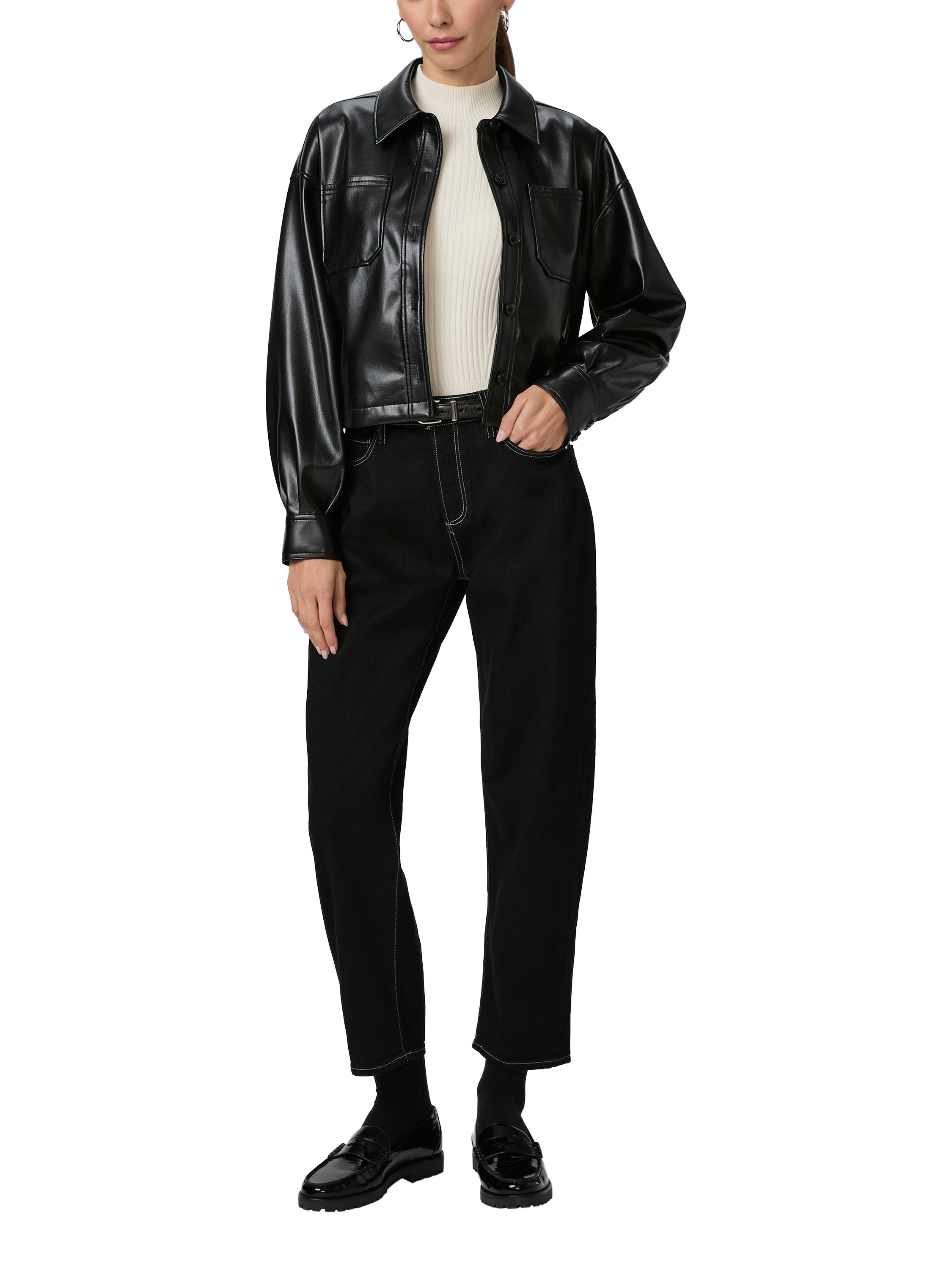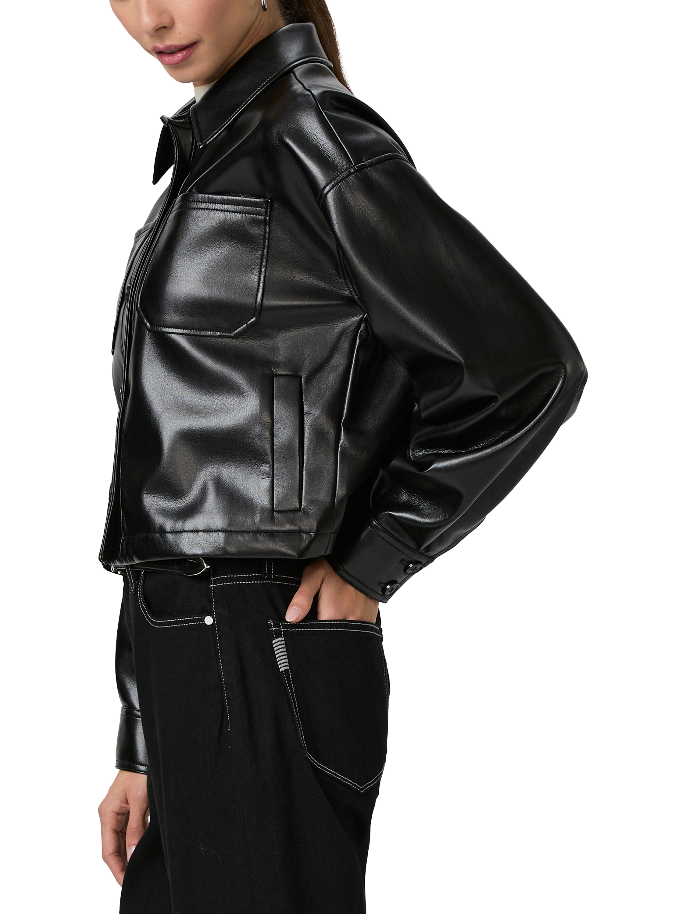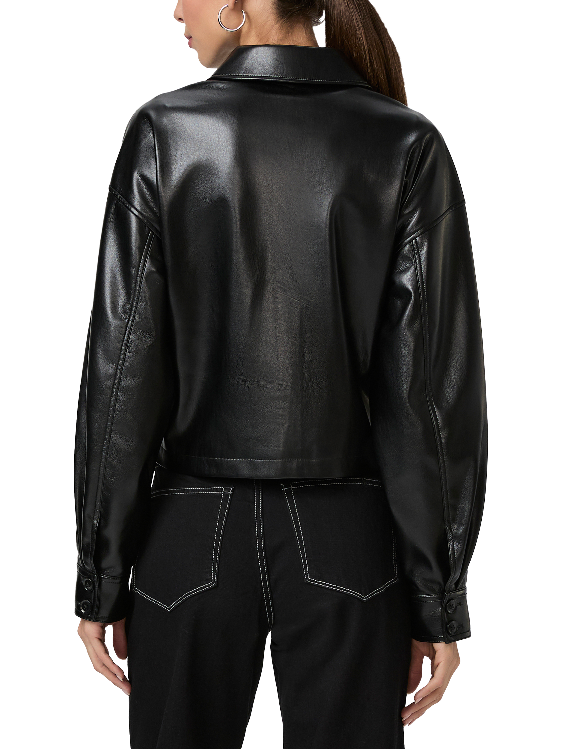 The Connor Shacket gets an elevated update in soft stretch faux leather. This medium weight layering piece has a slightly cropped fit and features double patch pockets at the front and a drop shoulder for a more relaxed vibe.