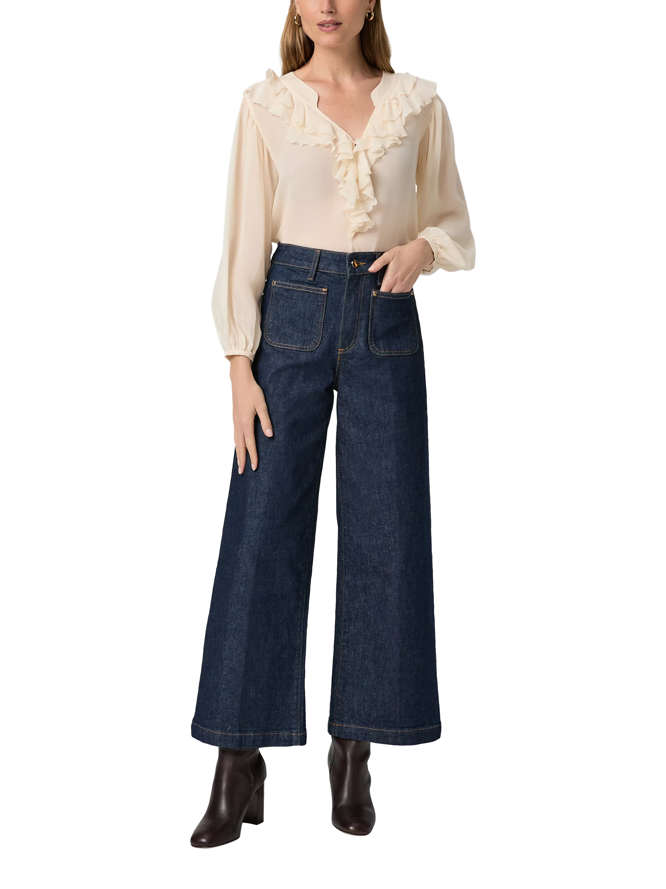 This high rise, extra wide leg has a cropped, ankle length silhouette. This pair is crafted in PAIGE VINTAGE denim with a portion of cotton in a dressy rinse with patch pockets and a tiger’s eye button. PAIGE VINTAGE takes all the work out of breaking in your favourite pair of vintage jeans. We've combined the comfort of stretch with everything you love about authentic vintage denim to create super soft jeans that feel perfectly lived-in from the very first wear.